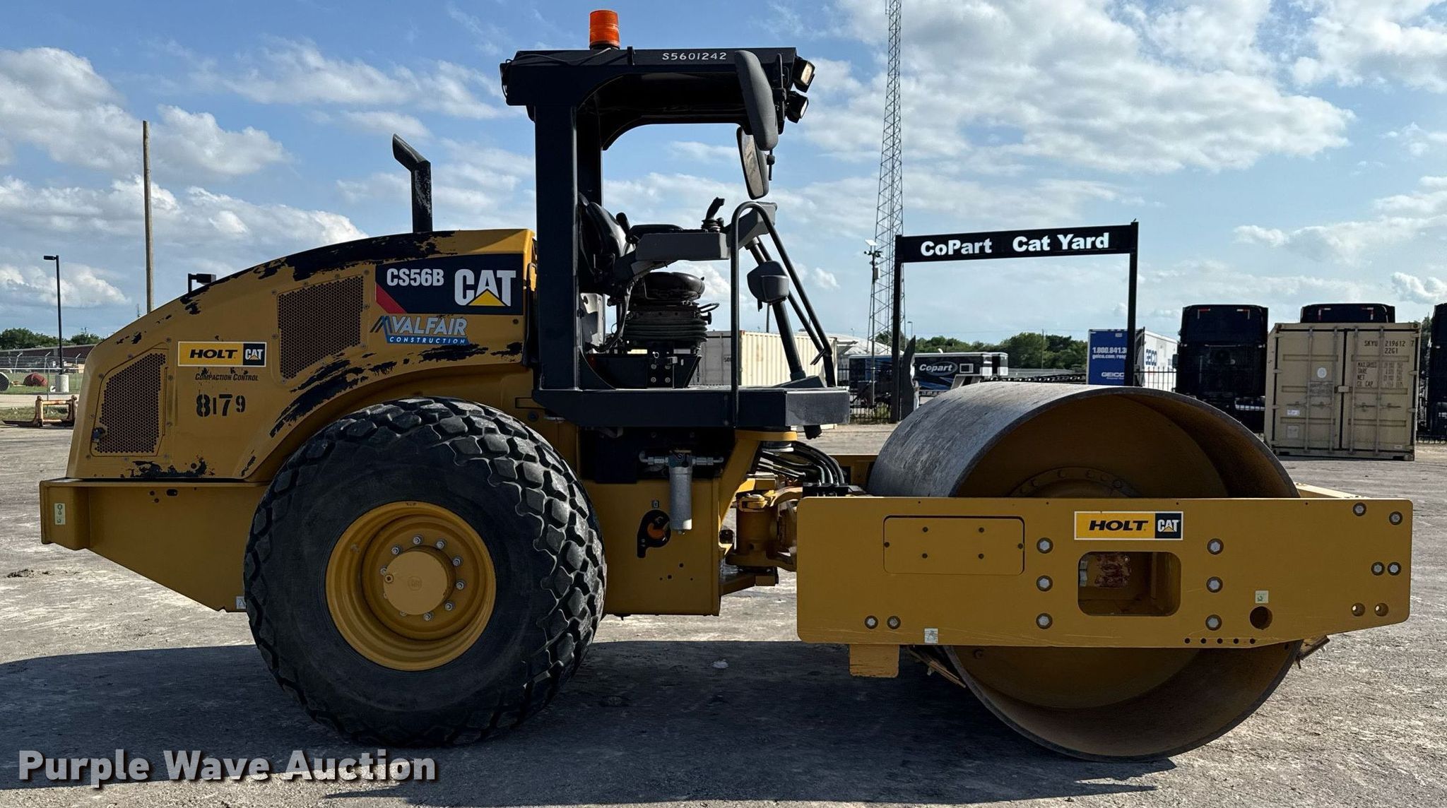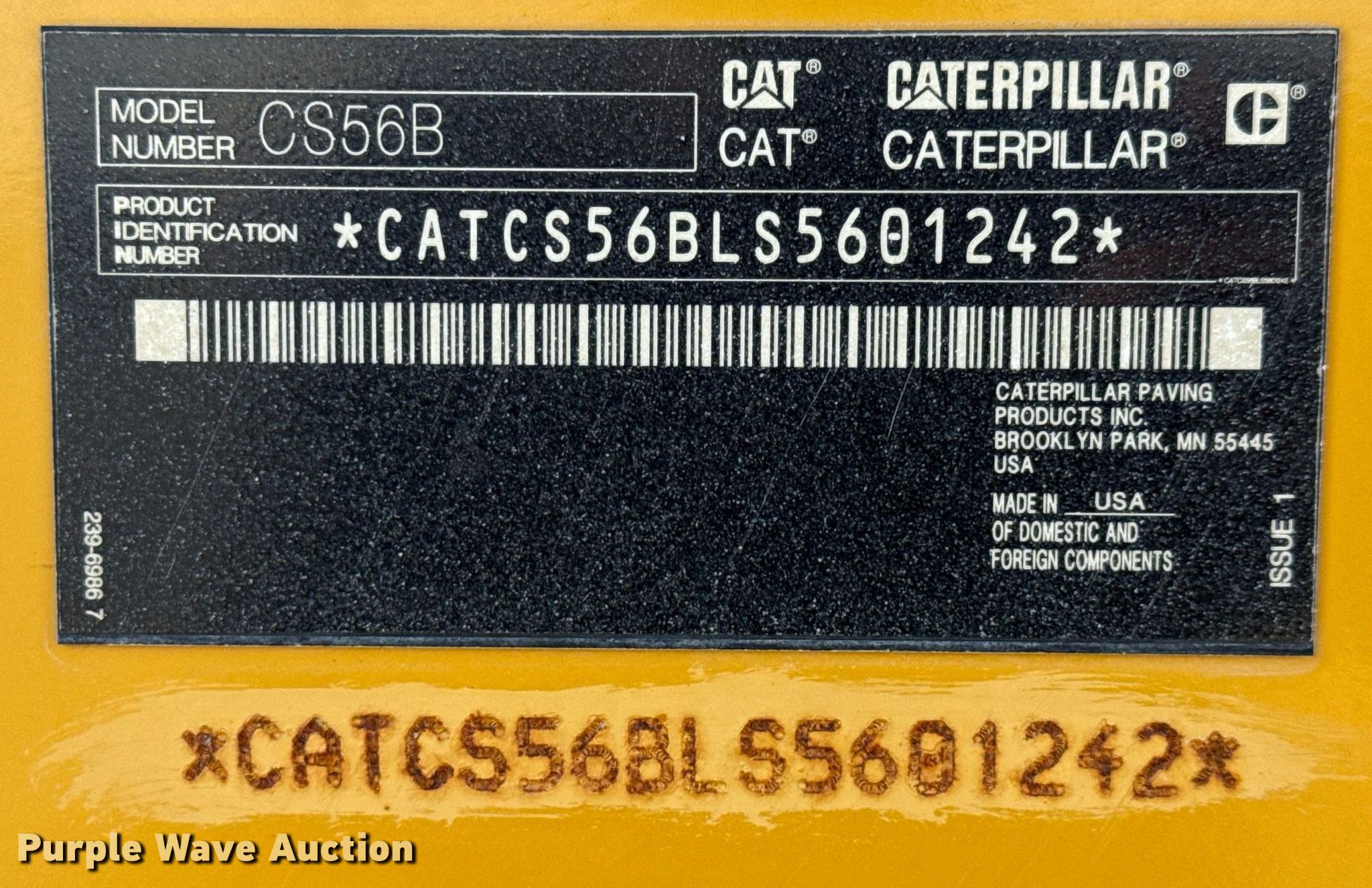 Purple Wave is selling a used Single Drum Roller Compactor in Texas. This item is a 2020 Caterpillar CS56B single drum vibratory roller with the following: Hours: 1,756 on meter, Serial: S5601242, Unit #: 8179
