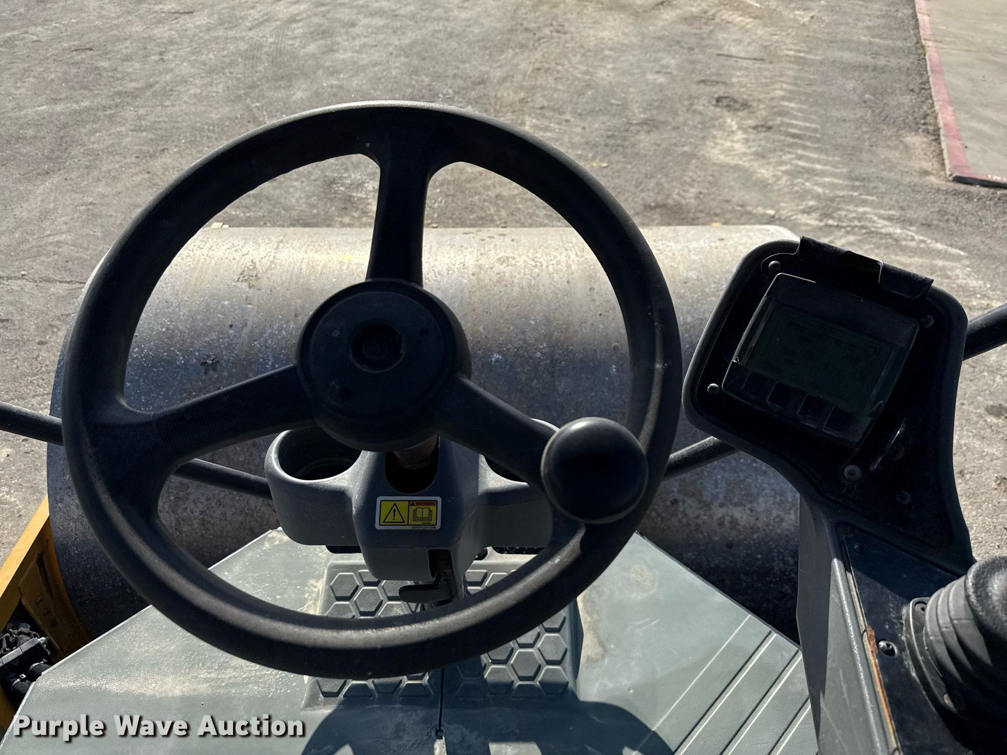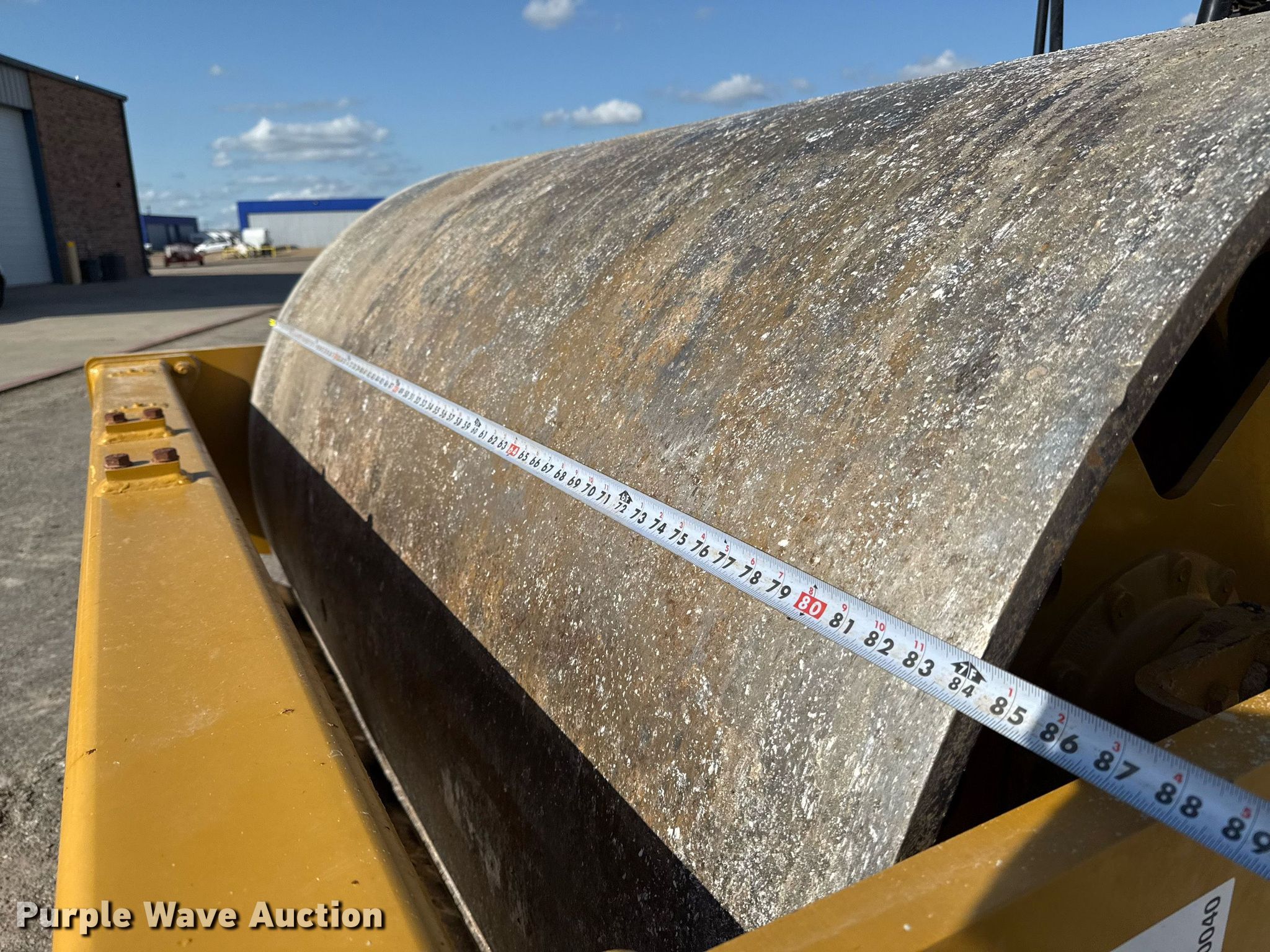 2020 Caterpillar CS56B single drum vibratory roller. Hours: 1,756 on meter, Serial: S5601242, Unit #: 8179. Engine Caterpillar C4.4 Acert, Displacement: 4.4L, Cylinders: 4, Fuel type: Diesel. Transmission Hydrostatic, Two speed travel. Operators station OROPS. Features Drum: Smooth, Vibratory system: Single, Two speed, Front drum Width: 84", Diameter: 60", Drum scrapers: Front, Rear. Tires Size: 23.1-26. Valfair Construction - Open Inspection June 9, 10 and 11. 501 East US Highway 80. Forney, TX 75126