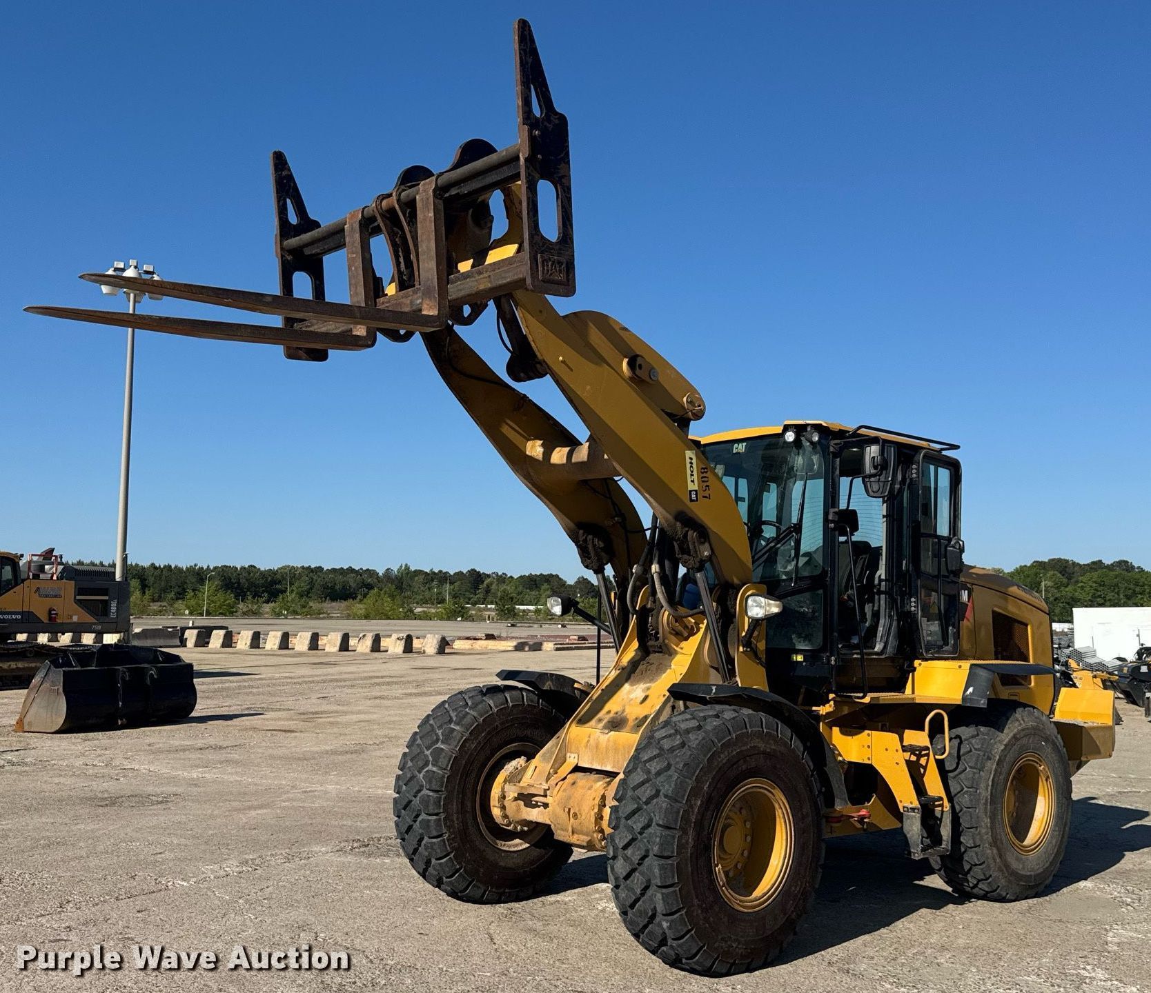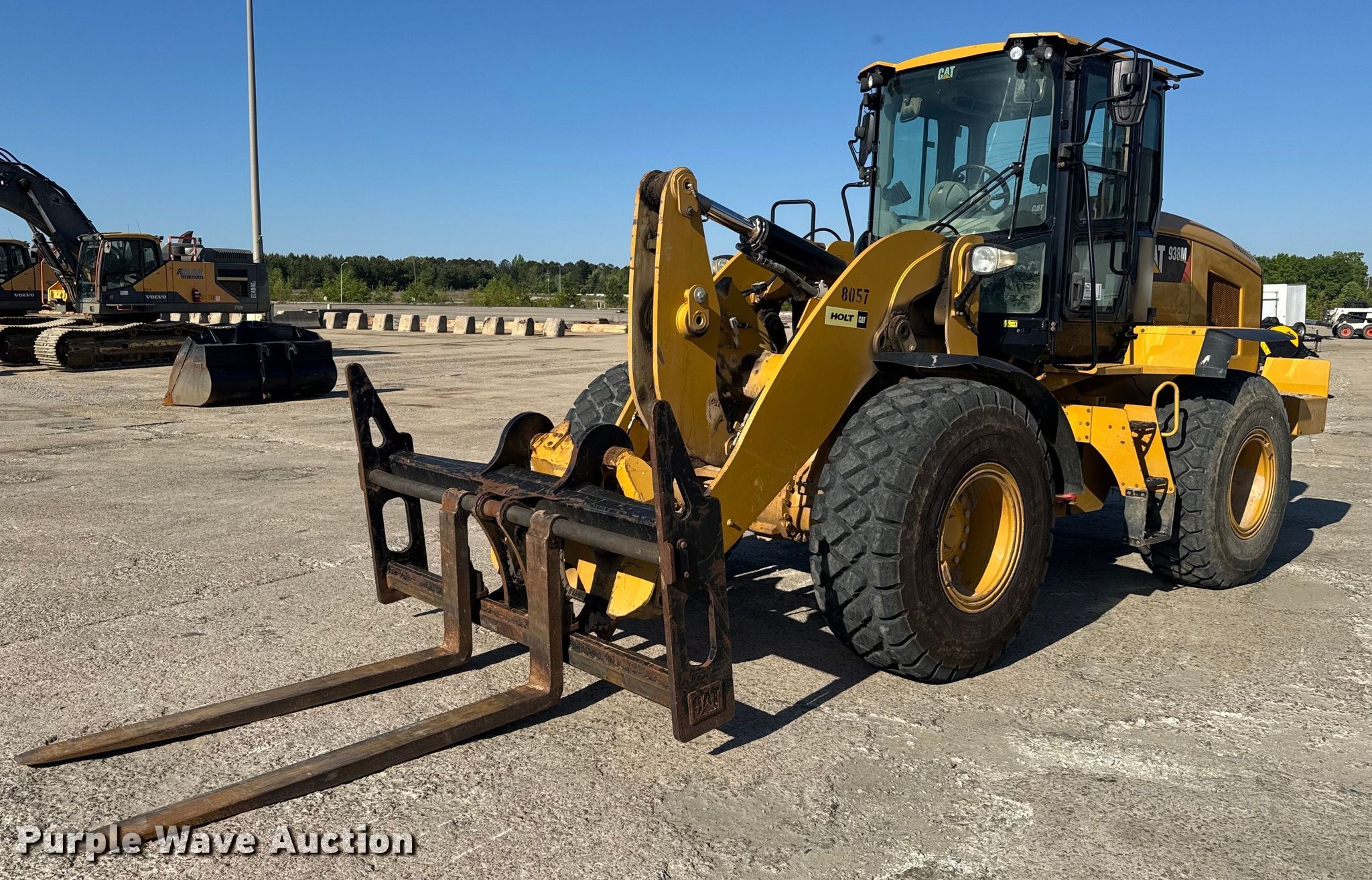 2019 Caterpillar 938M wheel loader. Hours: 5,655 on meter, Serial: CAT0938MLJ3R08311, Unit #: 8057. Engine Caterpillar C7.1, Displacement: 7.01L, Cylinders: 6, Fuel type: Diesel. Transmission Hydrostatic. Chassis Differential lock. Operators station Enclosed cab, AC, Heat, Bucket controls: Joystick. Features Auxiliary hydraulics: Front, Quick coupler: Hydraulic, Forks Caterpillar, Length: 72". Tires Size: 20.5R25. Valfair Construction - Open Inspection June 9, 10 and 11. 700 Southbound Road. Gaston, SC 29053