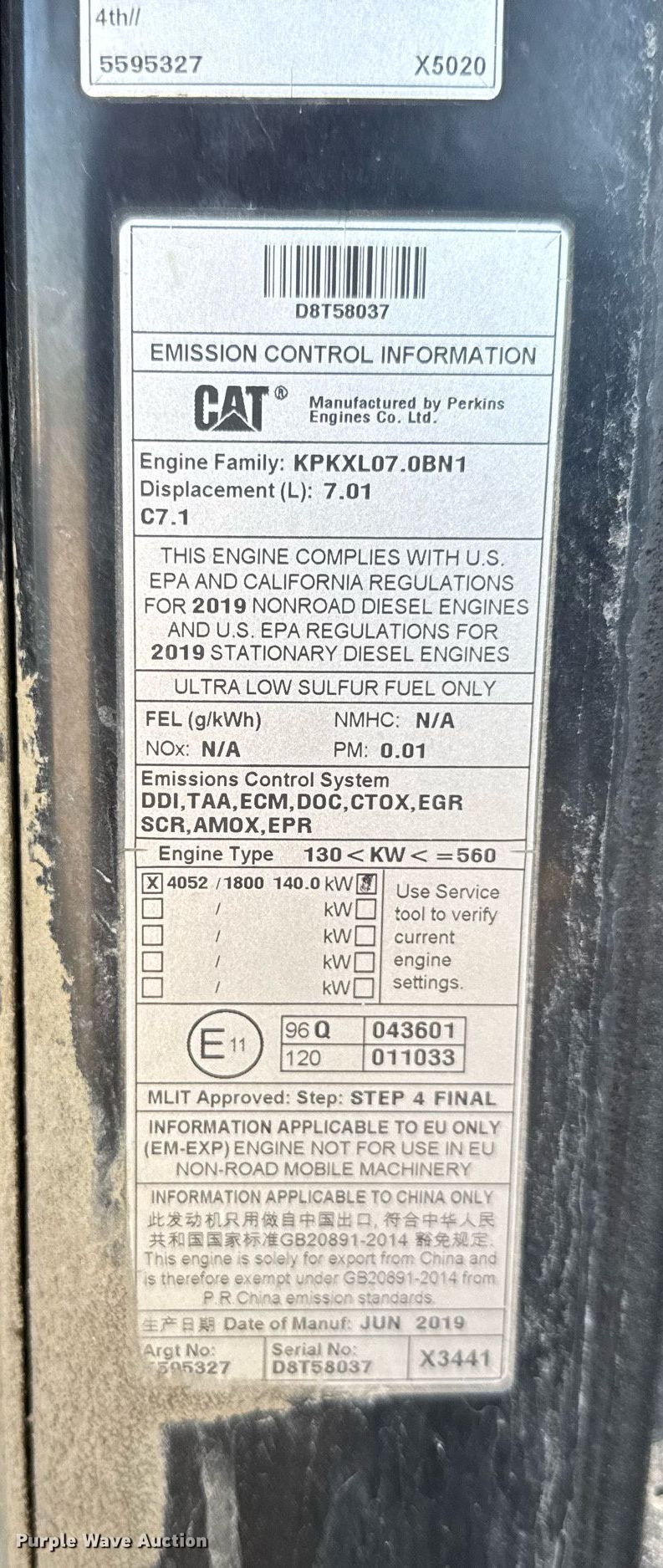 - Serial: CAT0938MLJ3R08311