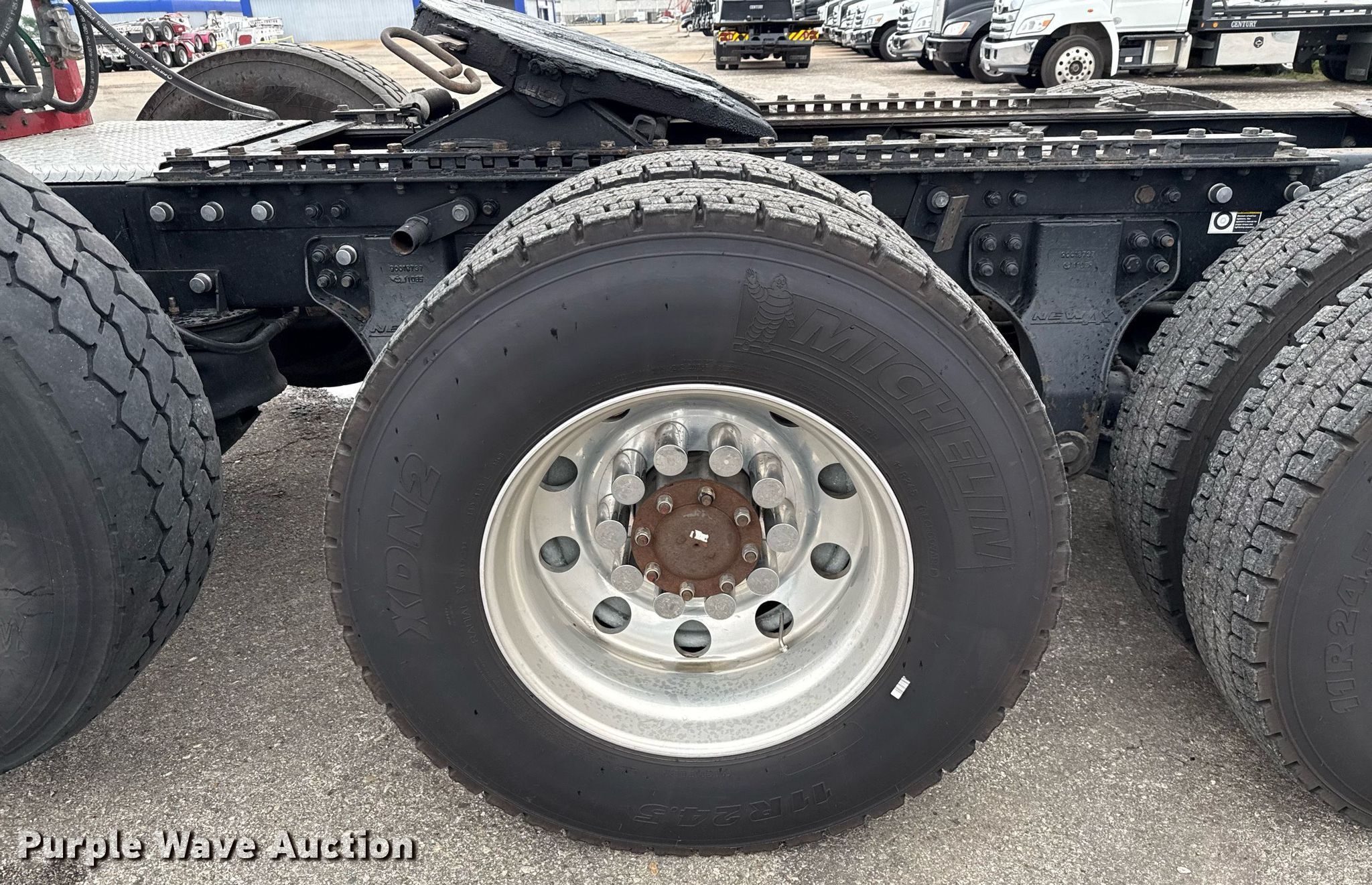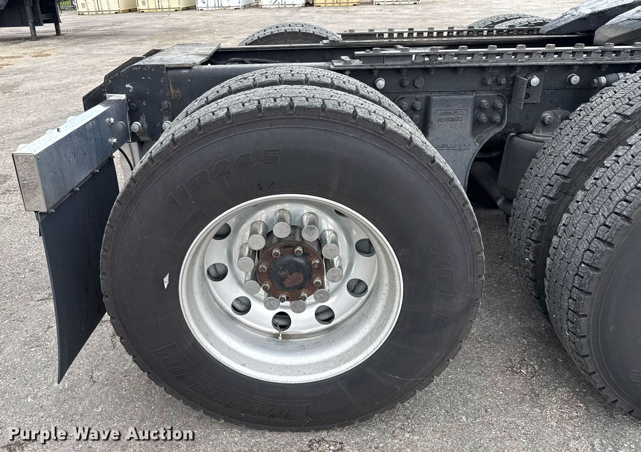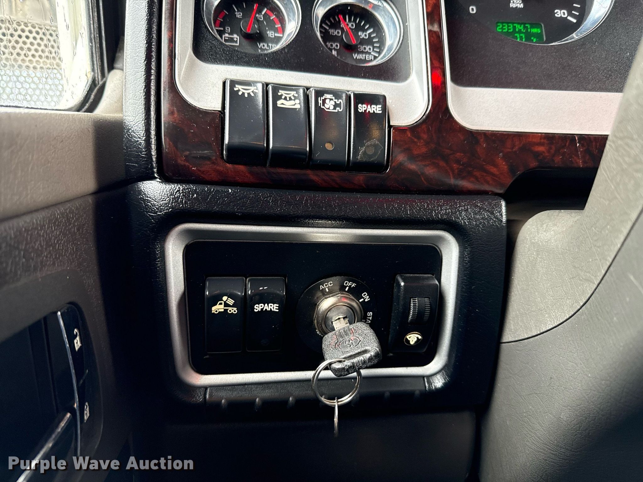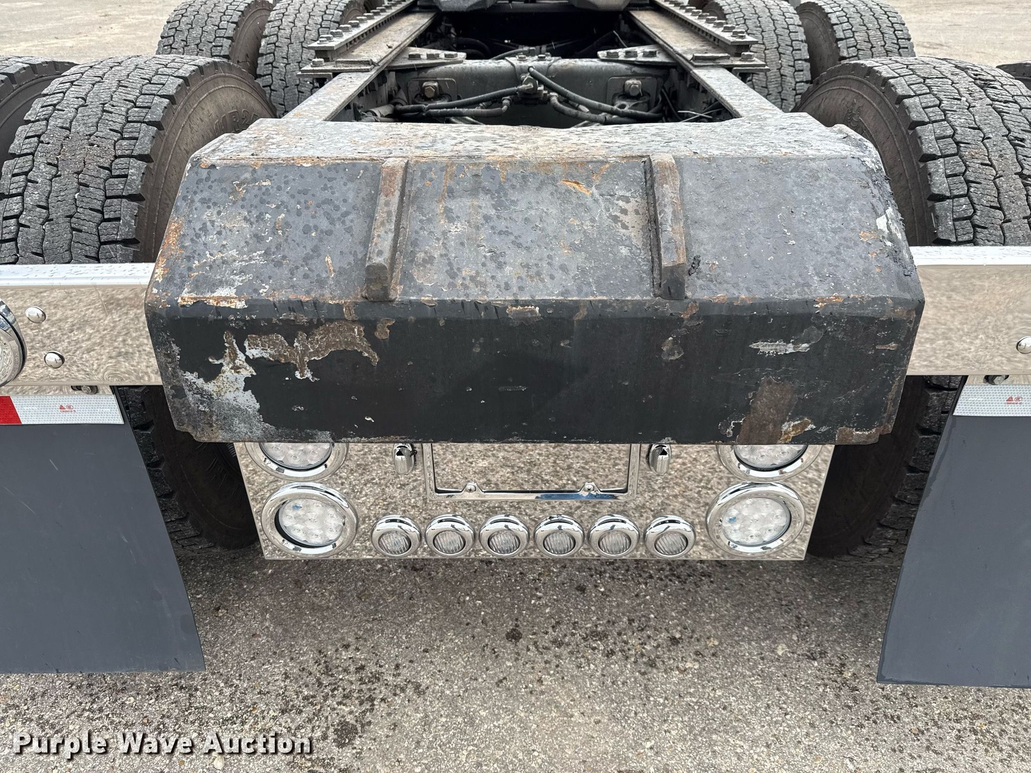 2013 Kenworth T800 semi truck. Miles: 631,801 on odometer, Hours: 23,375 on meter, VIN: 1XKDP4TX7DJ339291, Unit #: 6979. Engine Cummins ISX15, Serial: 79544317, Displacement: 15.0L, Cylinders: 6, Fuel type: Diesel, HP: 600, Engine brake. Transmission Eaton Fuller, Manual, Speed: 18. Chassis Axles: Triple, Pusher axle, Differential lock: Full, Suspension: Air Dump valves, Brakes: Air, PTO, Wet kit, GVWR: 86,000 lbs FAWR: 20,000 lbs, IAWR: 23,000 lbs, RAWR: 23,000 lbs, Lift axle GAWR: 20,000 lbs. Interior AC, Heat, Heated mirrors, Power windows, Power locks, Cruise control, Air ride cab, Sleeper Sleeper length: 48", Beds: Single, Refrigerator, Rear climate control. Features Deck plate: Aluminum, Fifth wheel type: Air operated, Sliding, Fuel tank: Dual, Powerdrive power inverter. Tires Front: 425/65R22.5, Rear: 11R24.5, Lift axle: 425/65R22.5. Notes Windshield chipped or cracked, Emissions modified. Texas title. Title distribution may be delayed up to 30 days from verification of funds. Valfair Construction - Open Inspection June 9, 10 and 11. 501 East US Highway 80. Forney, TX 75126