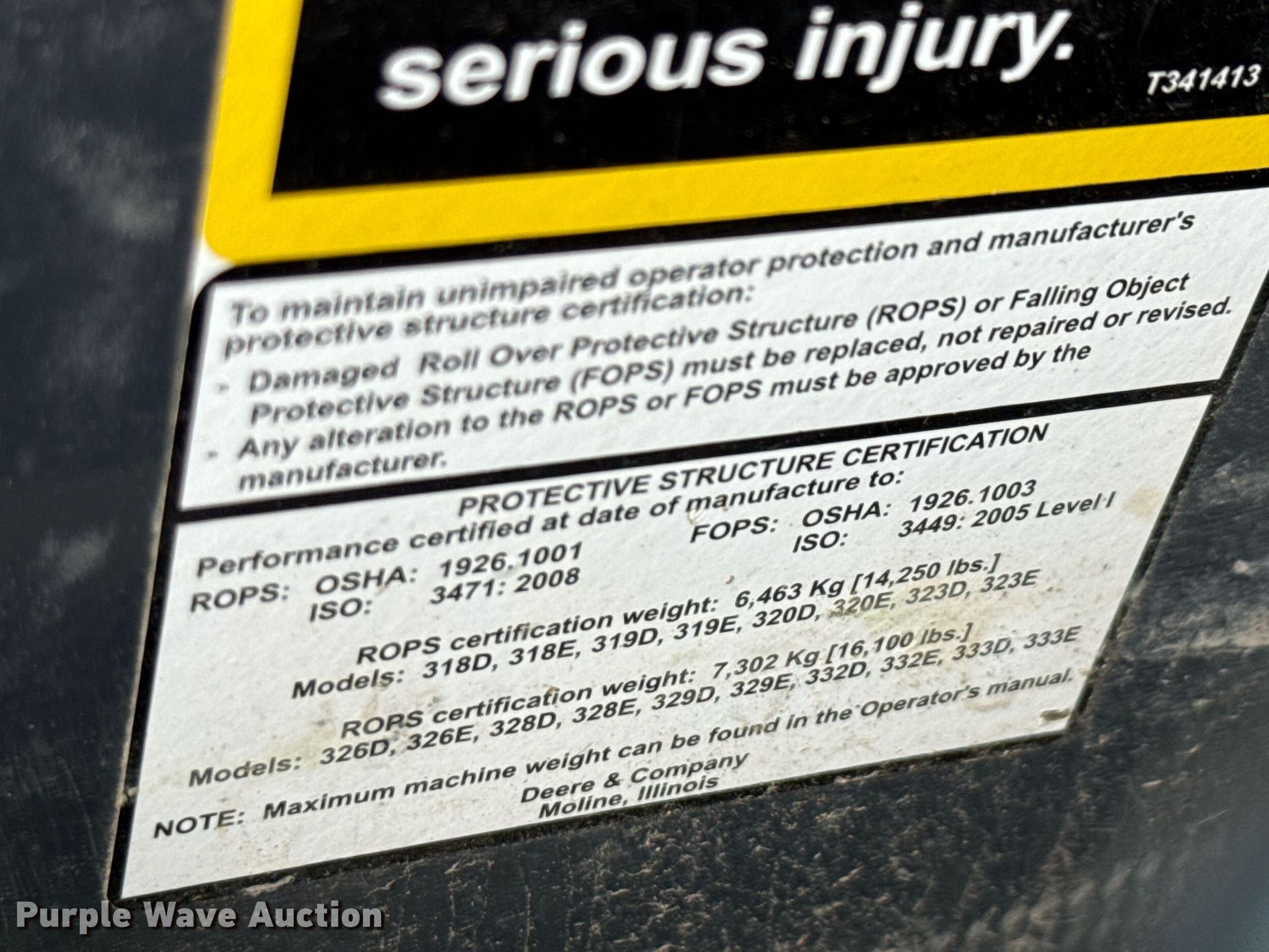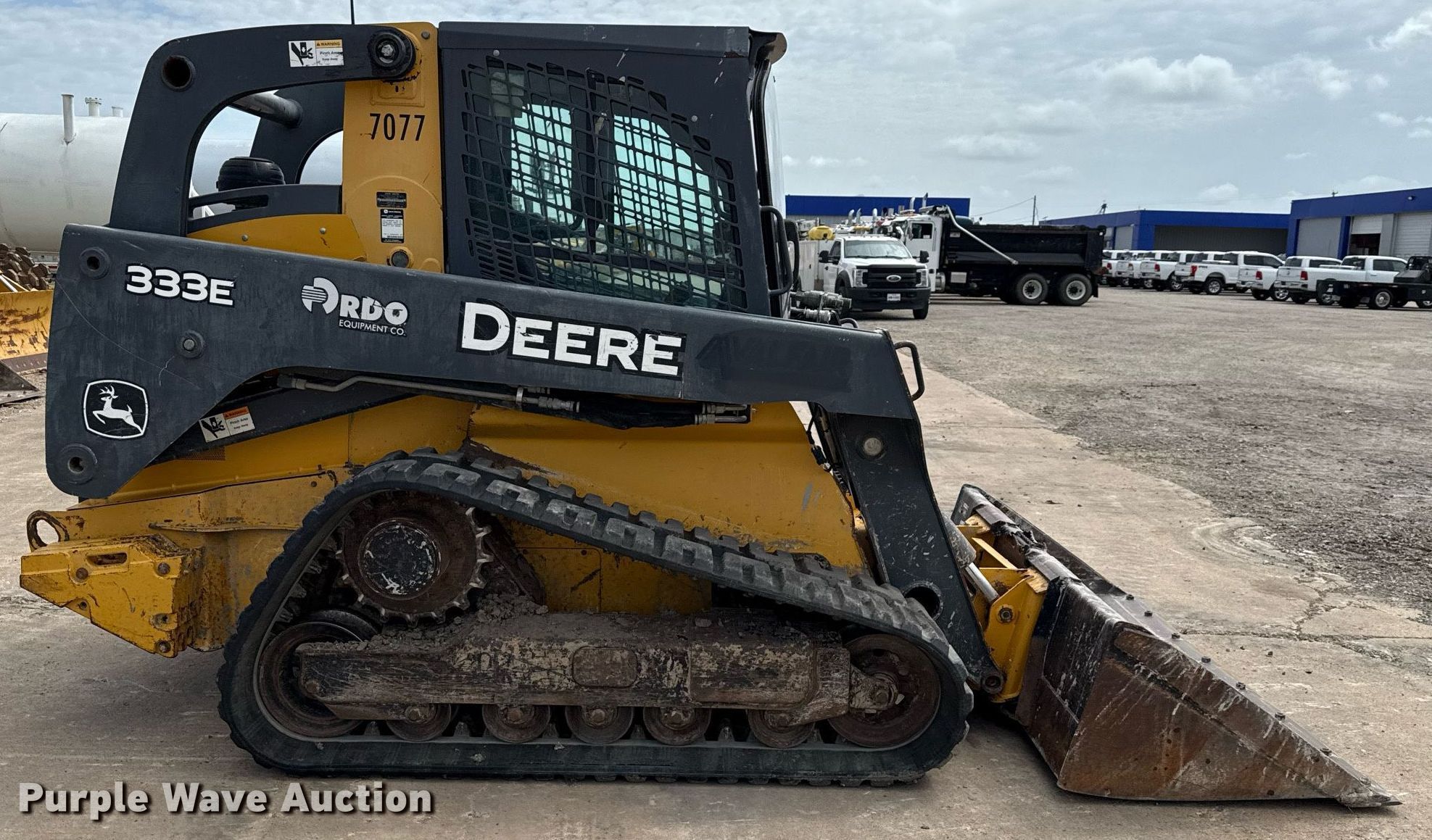 Purple Wave is selling a used Tracked Skid Steer Loader in Texas. This item is a 2016 John Deere 333E tracked skid steer loader with the following: Hours: 4,450 on meter, Serial: 1T0333EKAGE293285, Unit #: 7077