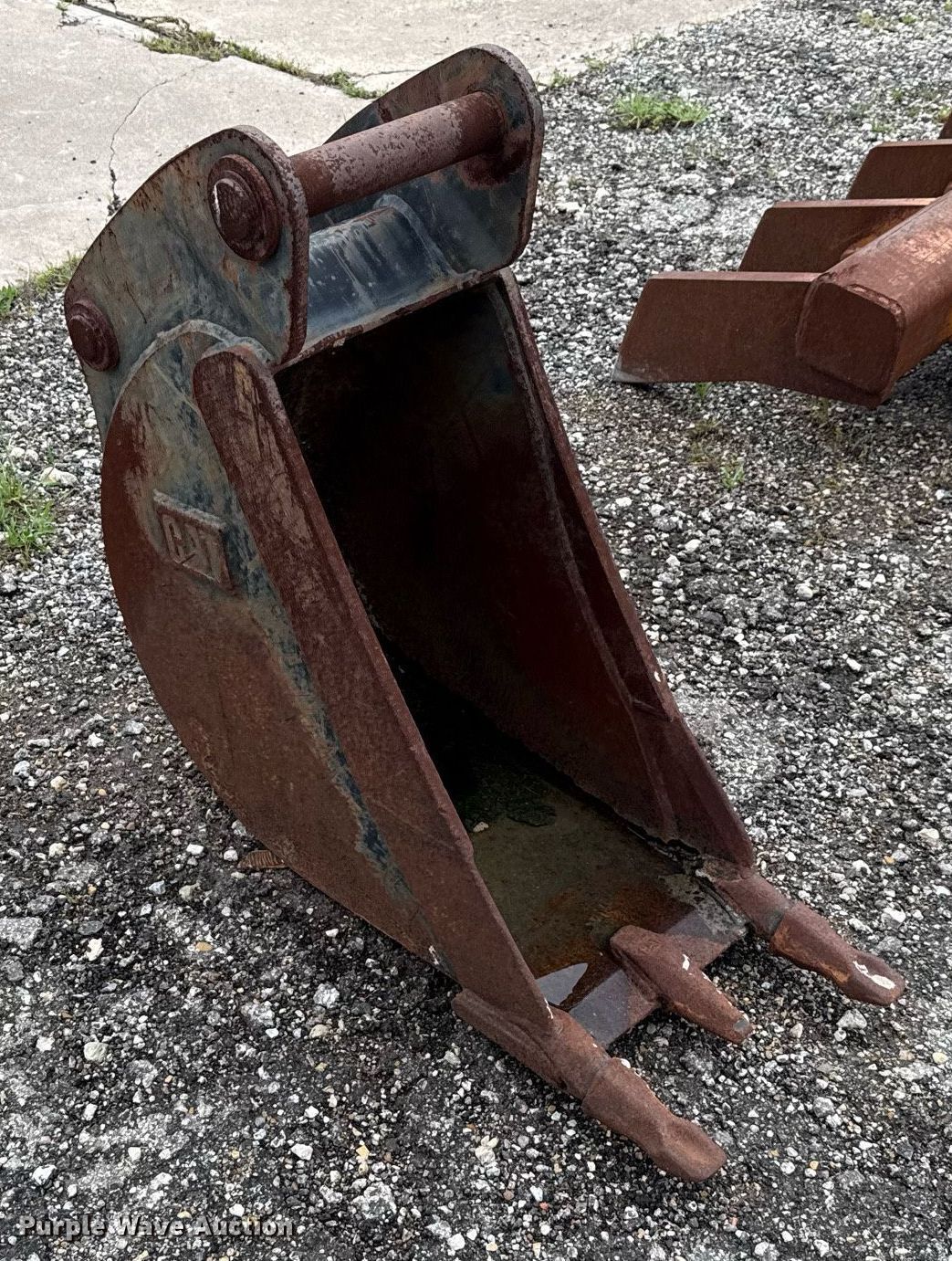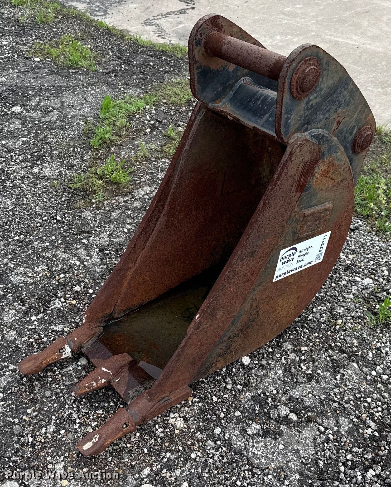 Purple Wave is selling a used Backhoe Attach. in Texas. This item is a Caterpillar backhoe bucket with the following: Width: 13", Teeth: 3