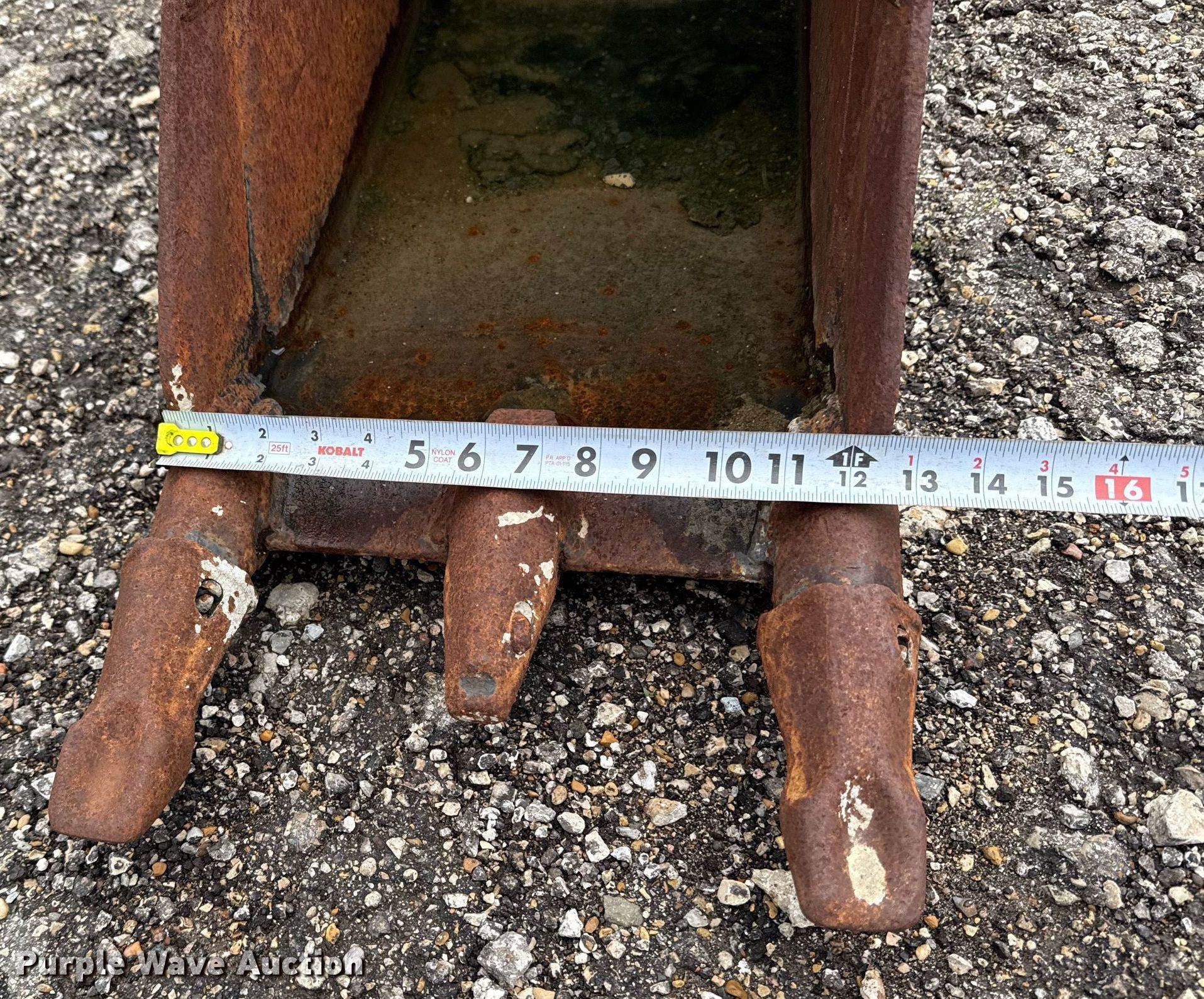 Caterpillar backhoe bucket. Width: 13", Teeth: 3. Valfair Construction - Open Inspection June 9, 10 and 11. 501 East US Highway 80. Forney, TX 75126