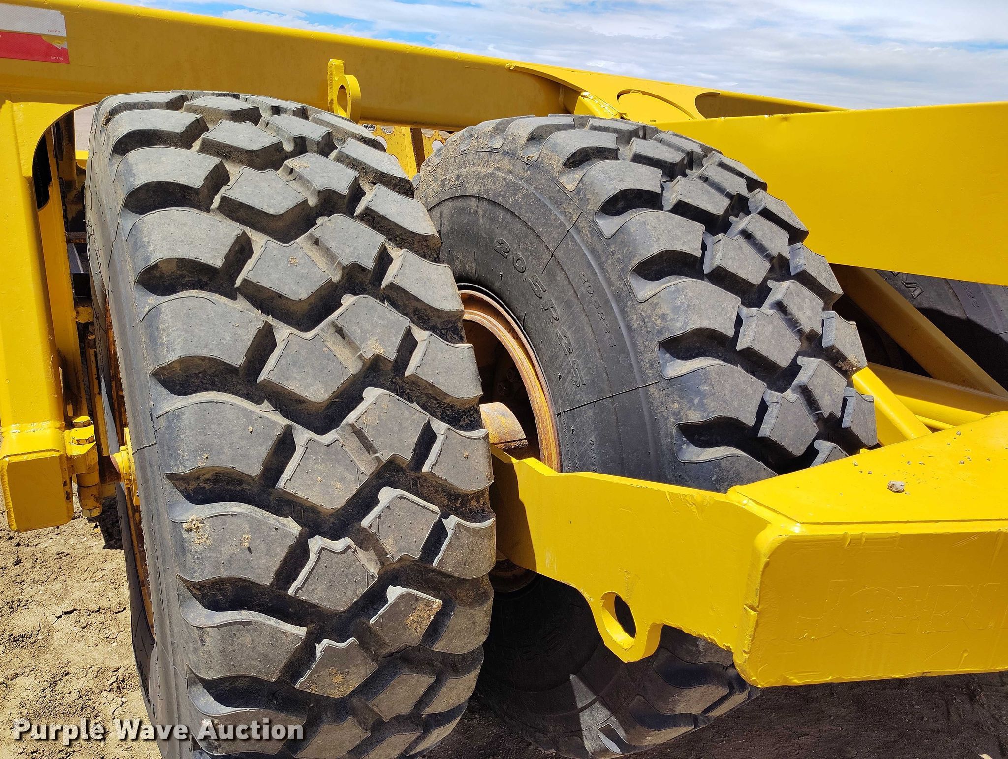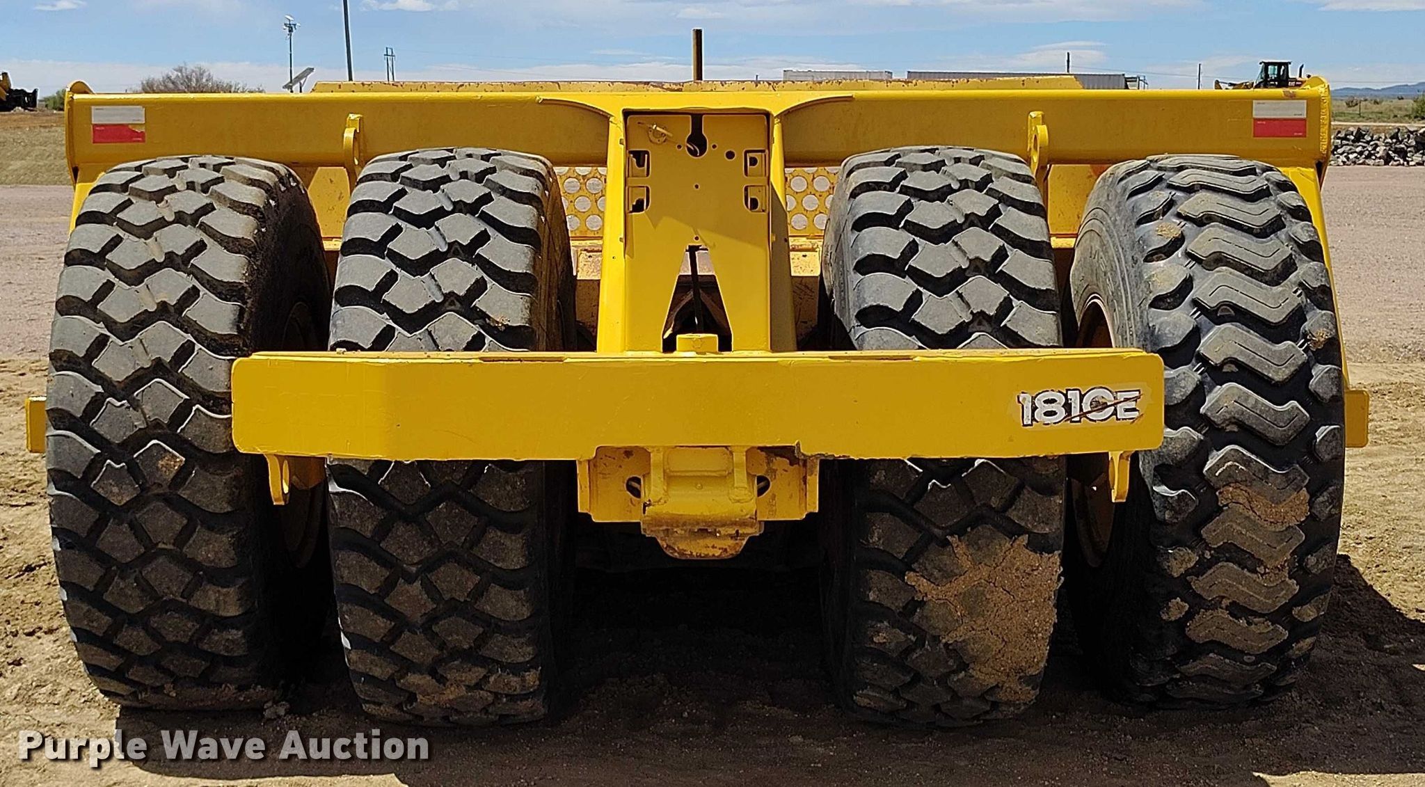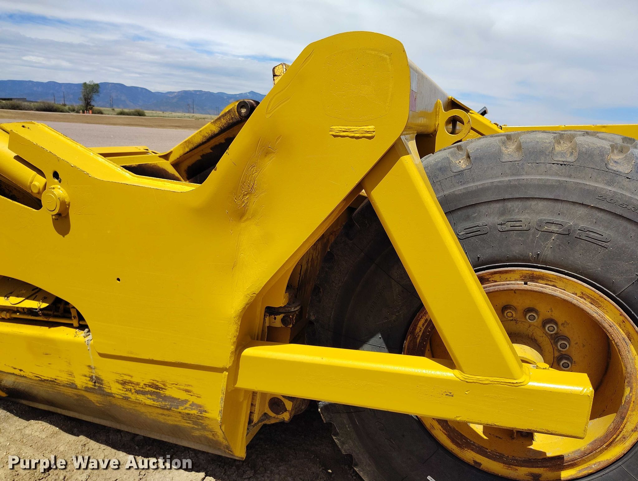 2008 John Deere 1810E scraper. Serial: 1T81810E060395, Unit #: 7036. Features Reversible cutting edge, Hydraulic lift, Rear push block, Hitch: Scraper, Rear. Tires Size: 20.5R25. Valfair Construction - Open Inspection June 9, 10 and 11. 700 Charter Oak Ranch Road. Fountain, CO 80817