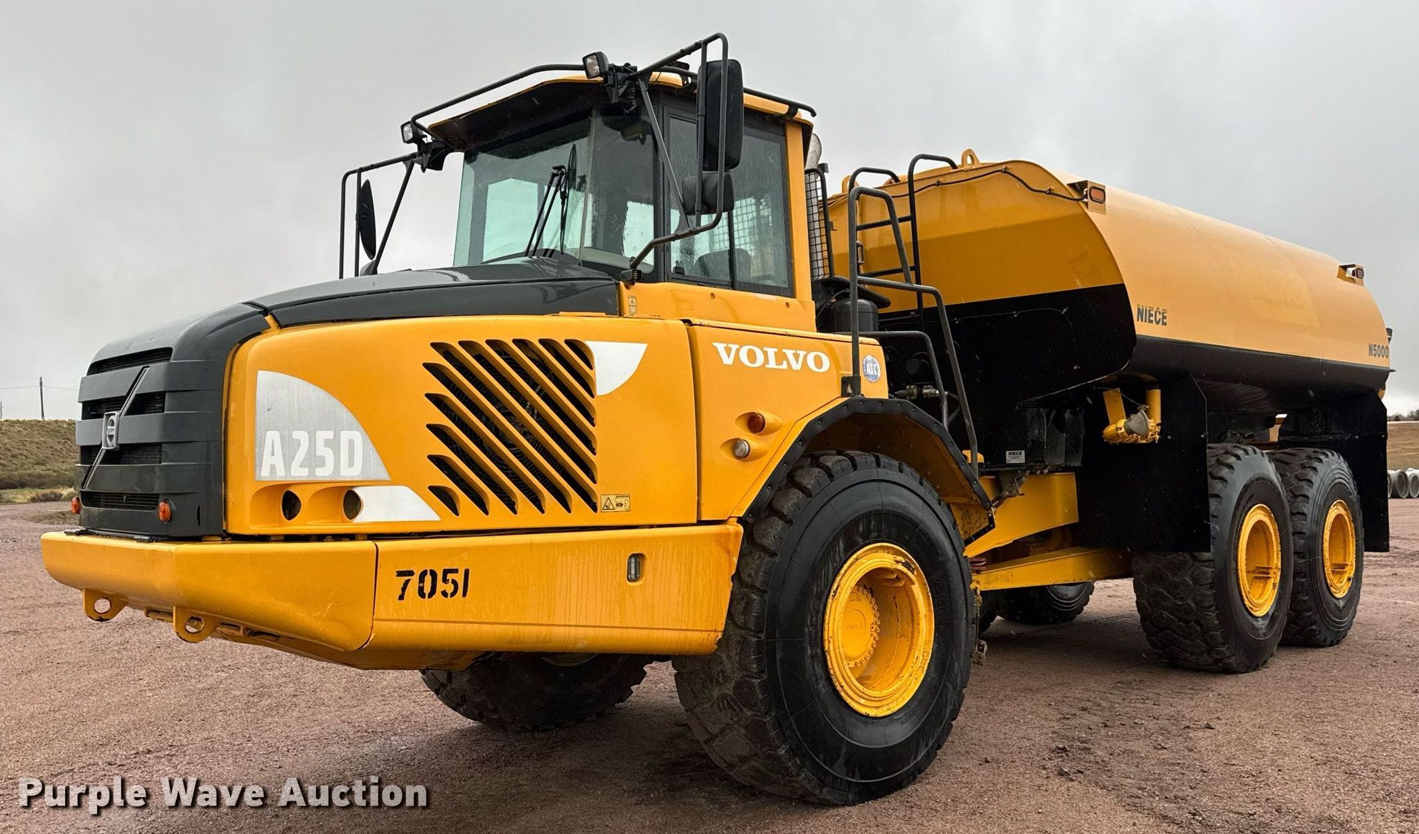 Purple Wave is selling a used Water Wagon in Colorado. This item is a 2008 Volvo A25E water wagon with the following: Miles: 1,973 on odometer, Hours: 2,319 on meter, Serial: A25ET73199, Unit #: 7051