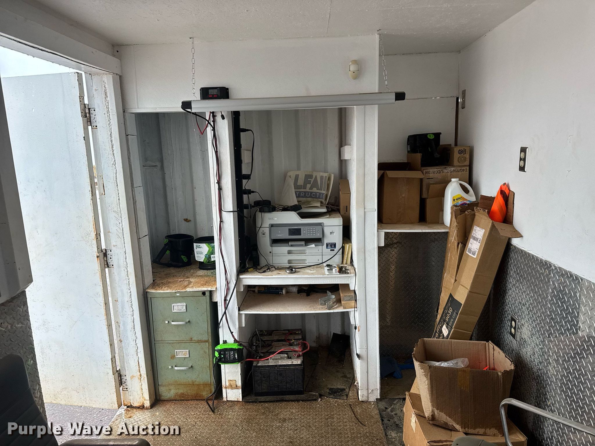 Office container. 20' L x 96" W x 102" H, Contents included, Unknown operating condition. Valfair Construction - Open Inspection June 9, 10 and 11. 700 Charter Oak Ranch Road. Fountain, CO 80817