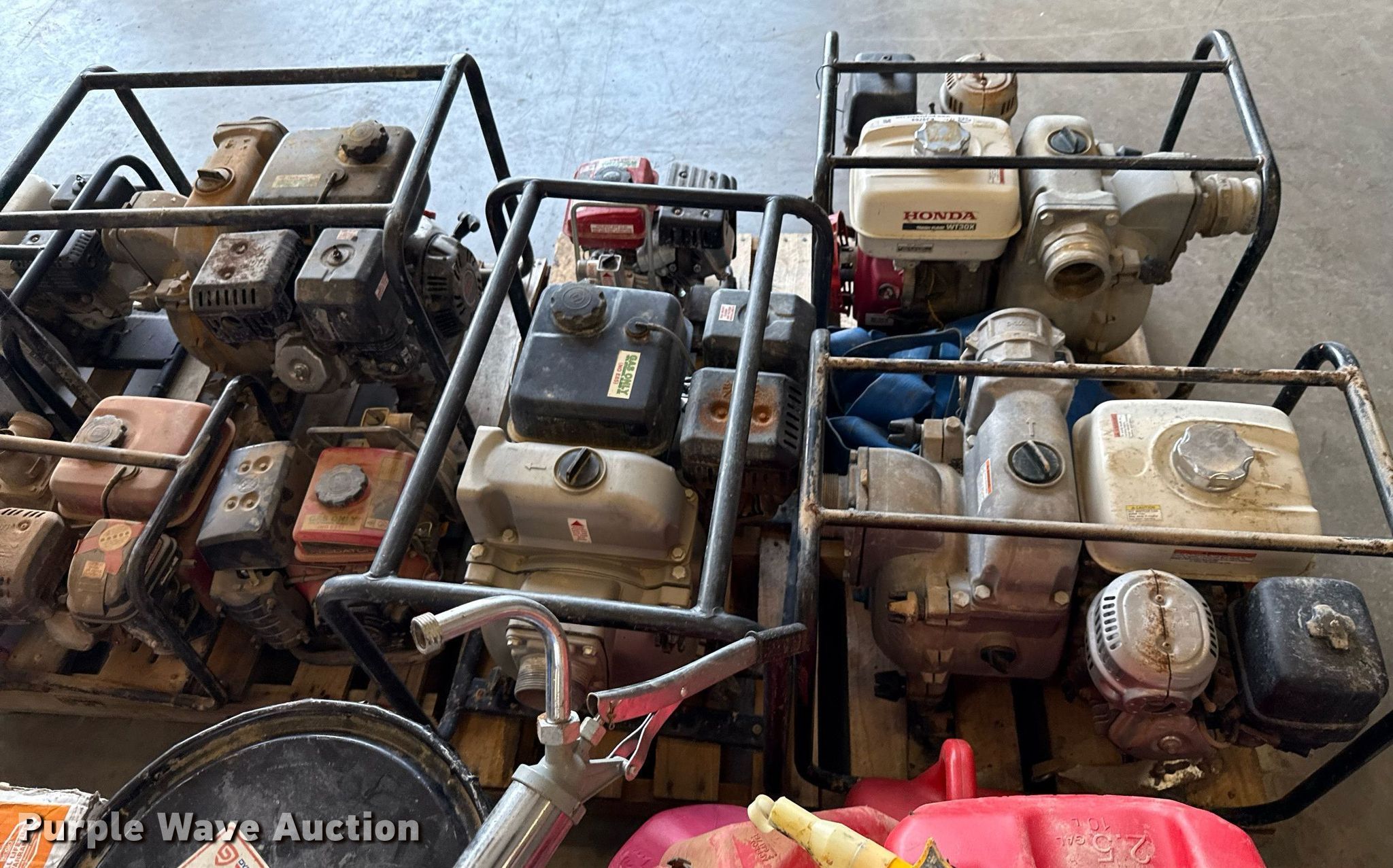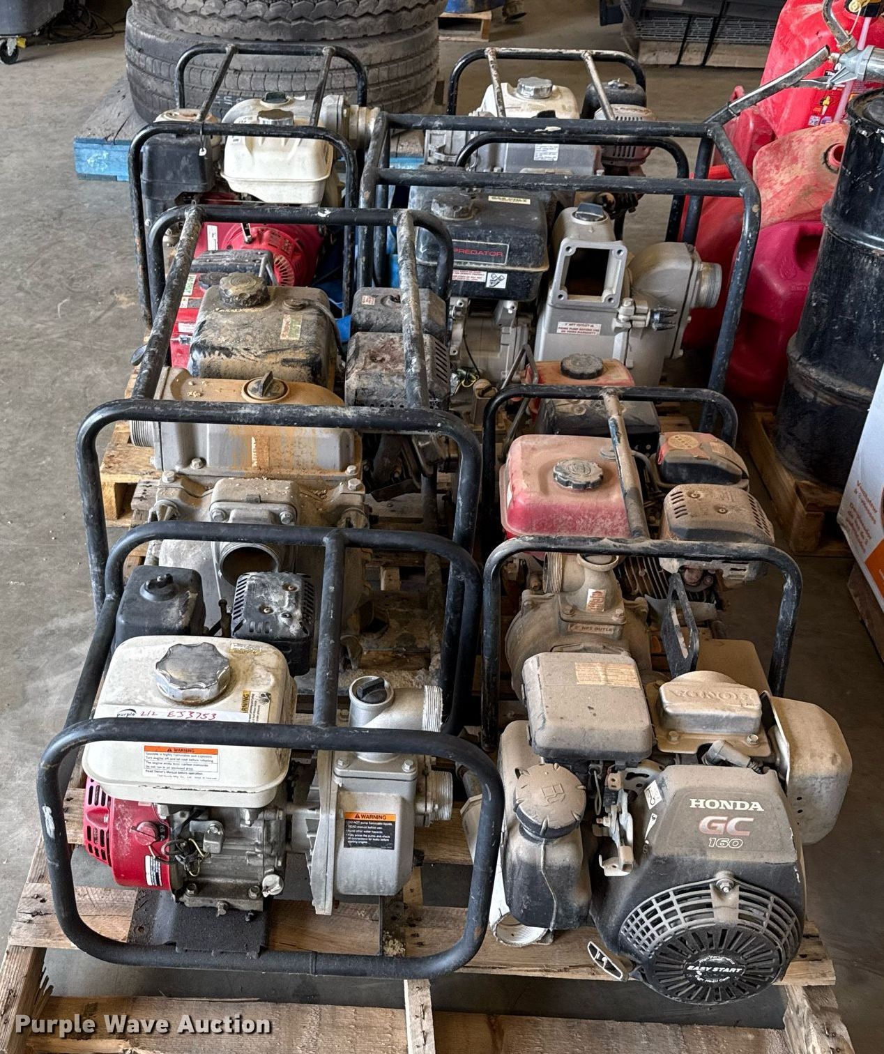 (9) pumps. Engines. (4) Hondas, (5) Predators. Notes Non-operational units. Valfair Construction - Open Inspection June 9, 10 and 11. 501 East US Highway 80. Forney, TX 75126