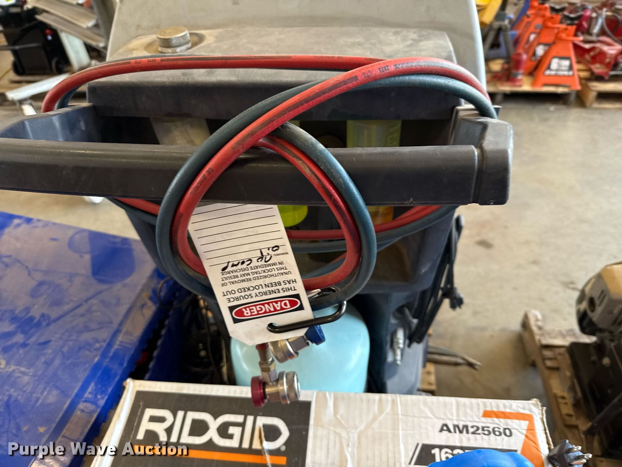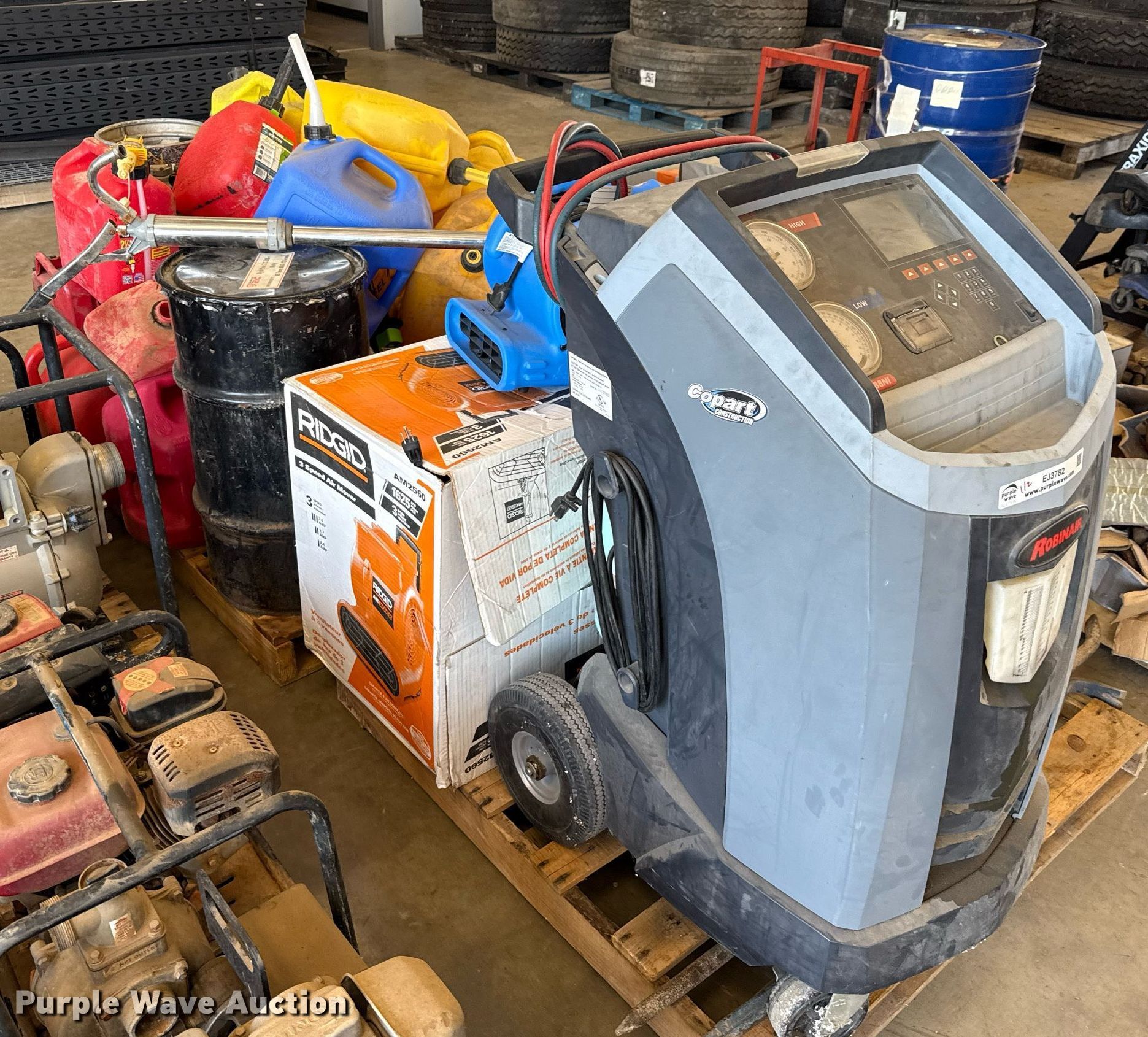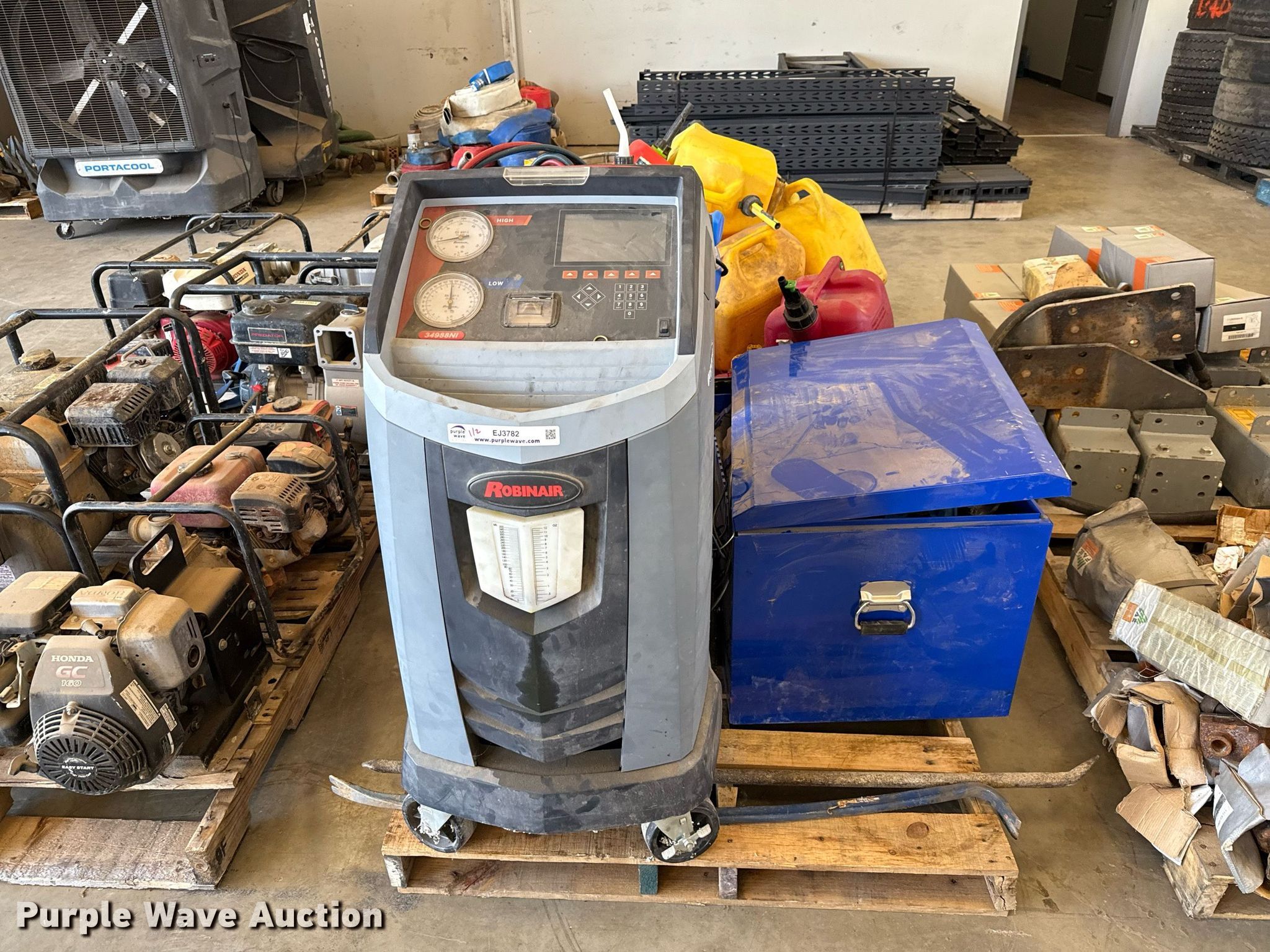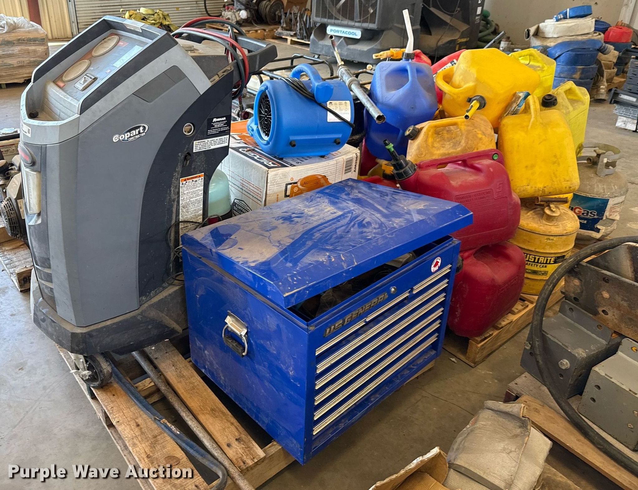 Purple Wave is selling a used Tools in Texas. This item is a Tools with the following: Robinair 34988NI refrigerant station, (2) air movers, Toolbox, (3) LP bottles, Grease barrel, Approx. 20 fuel cans
