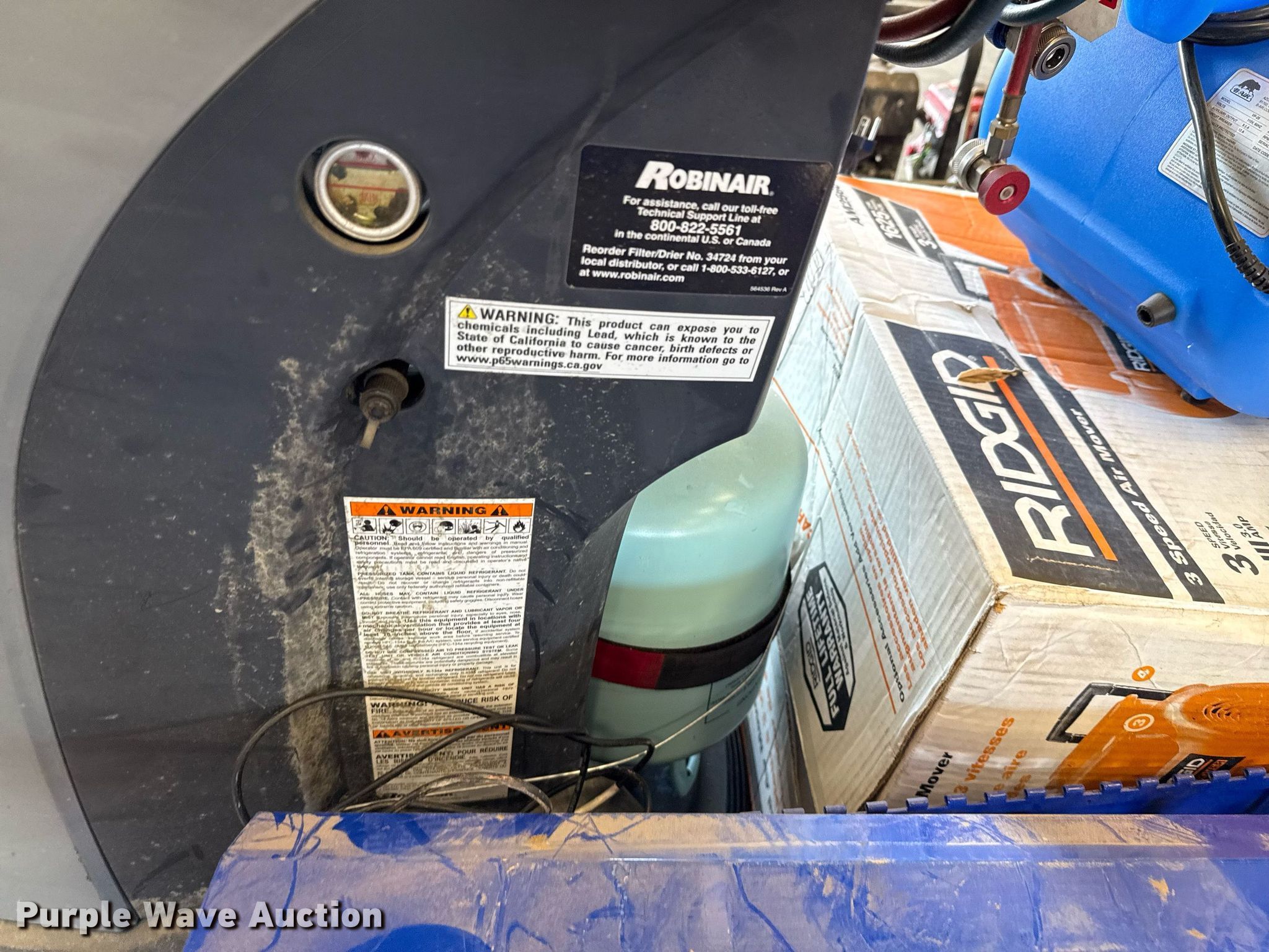 Tools. Robinair 34988NI refrigerant station, (2) air movers, Toolbox, (3) LP bottles, Grease barrel, Approx. 20 fuel cans. Valfair Construction - Open Inspection June 9, 10 and 11. 501 East US Highway 80. Forney, TX 75126