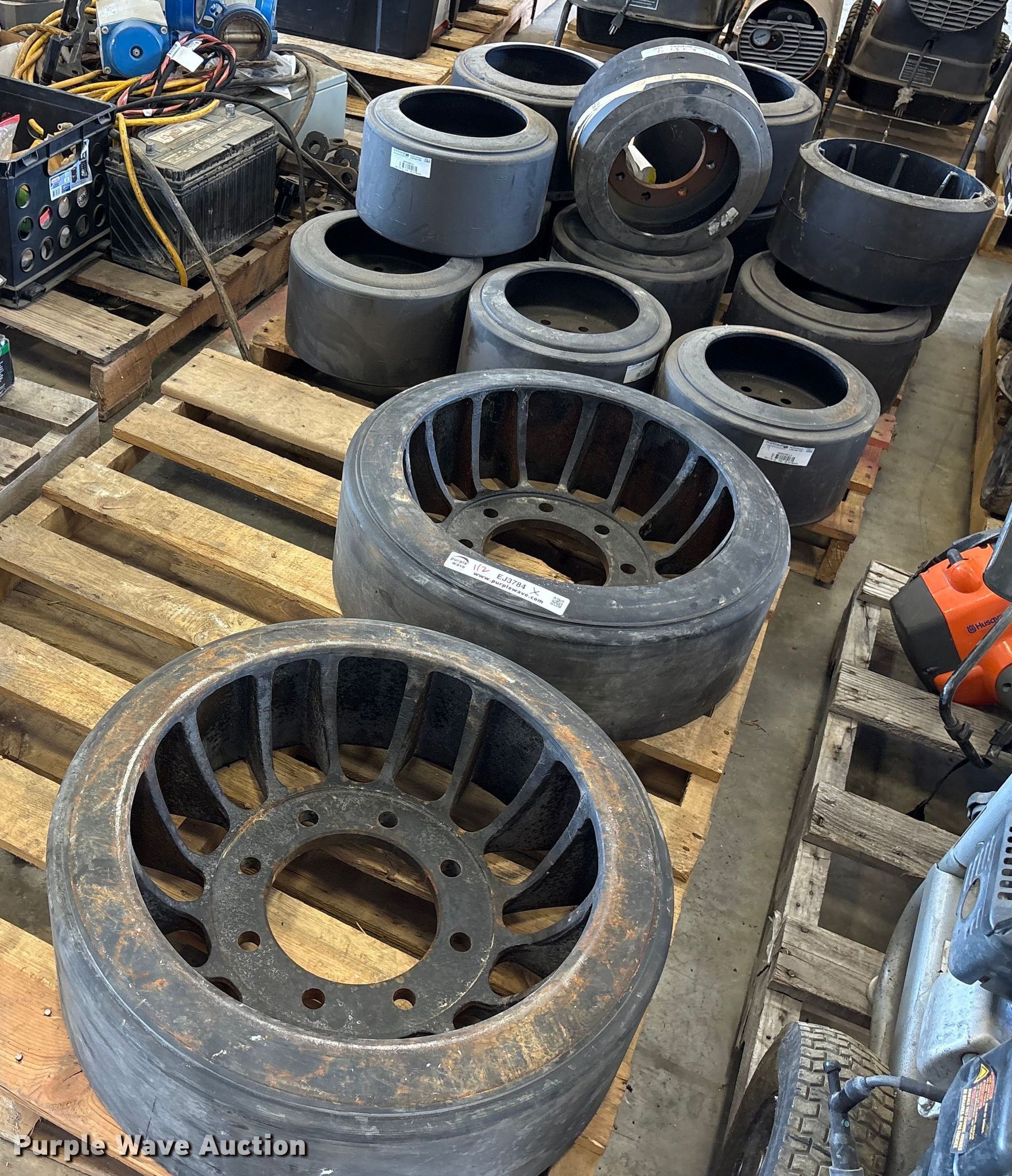 Purple Wave is selling a used Industrial Tires or Tracks in Texas. This item is a Superior rubber idlers with the following: Size: 23(24)x8, Size: 13x7.5