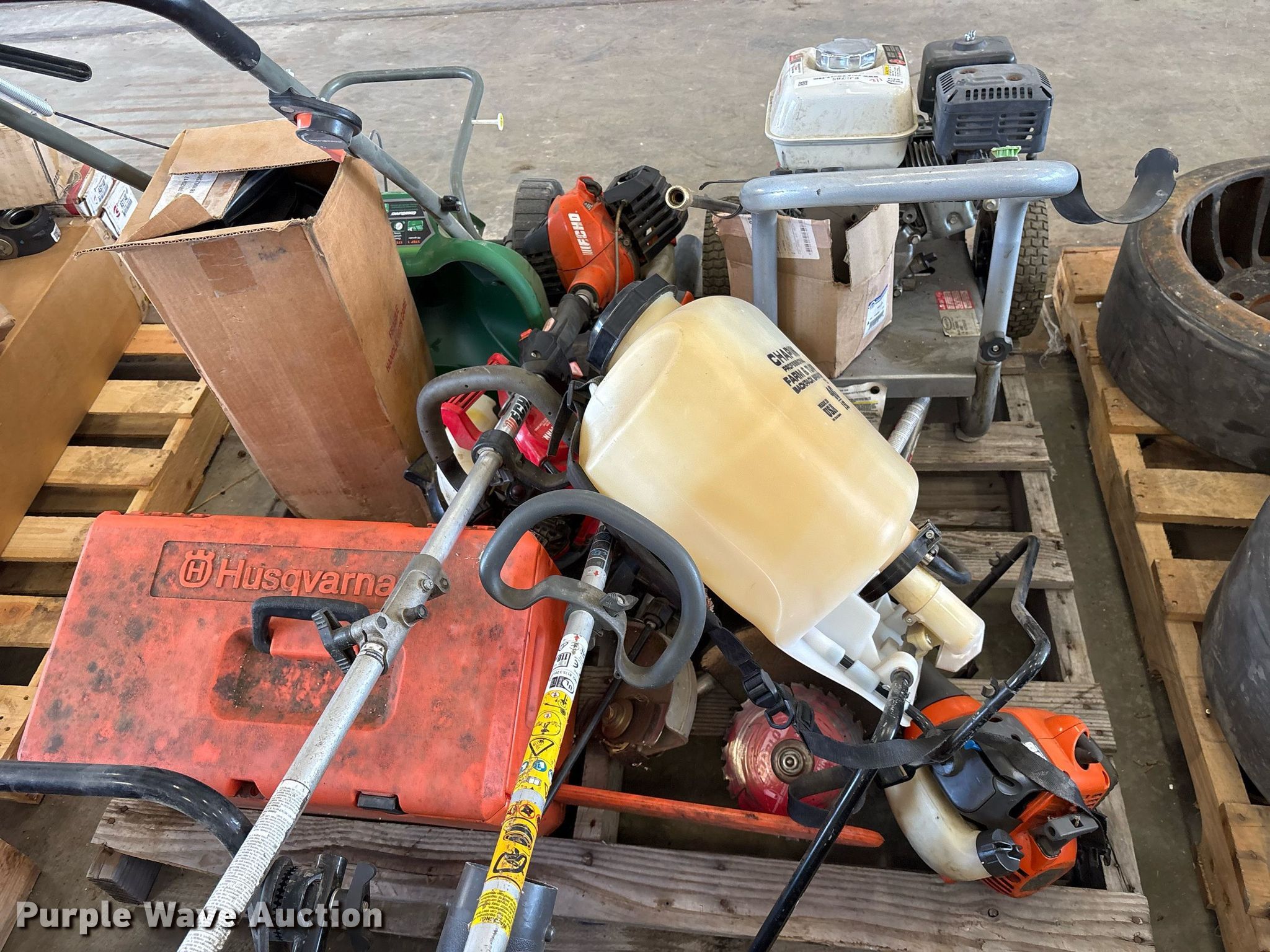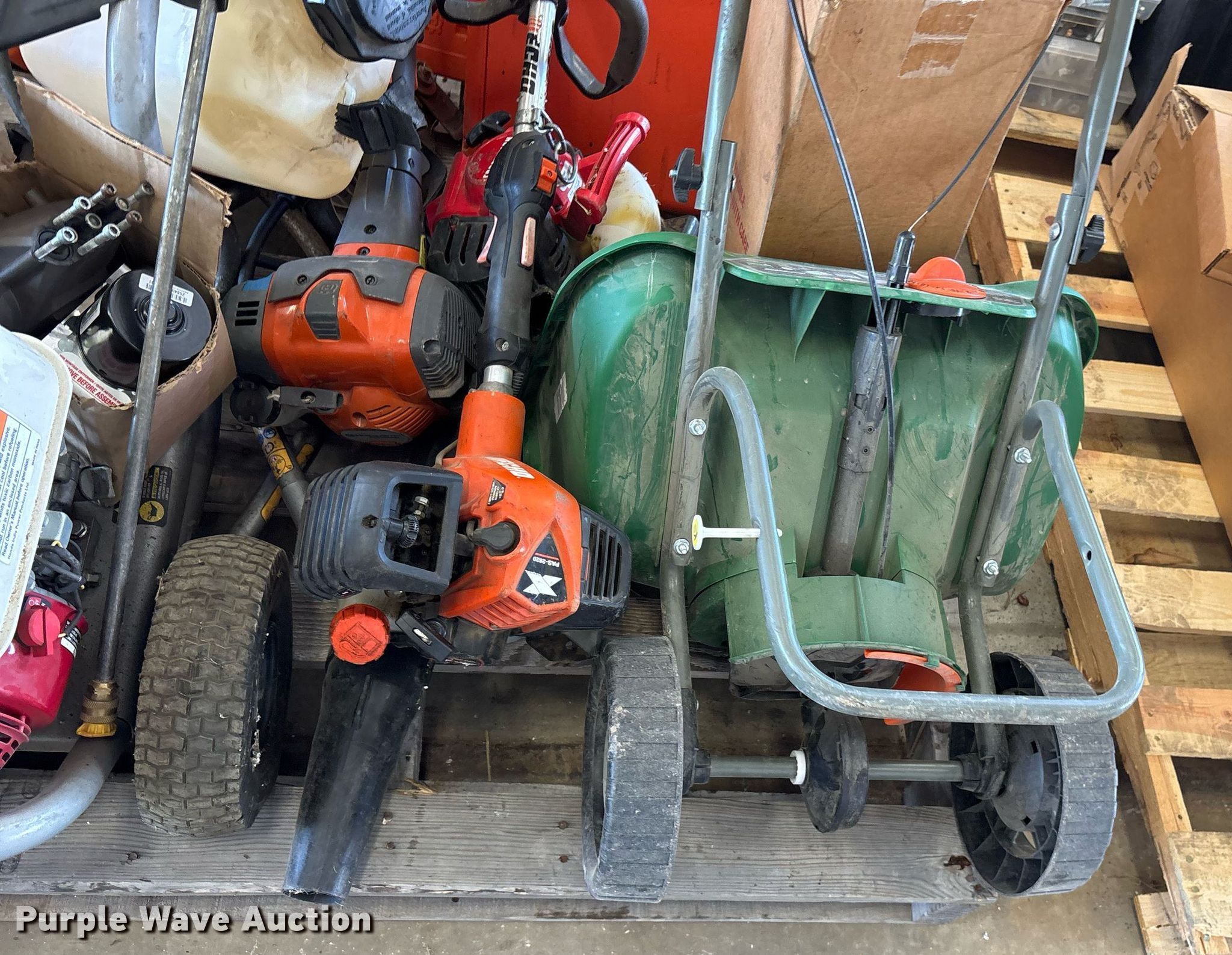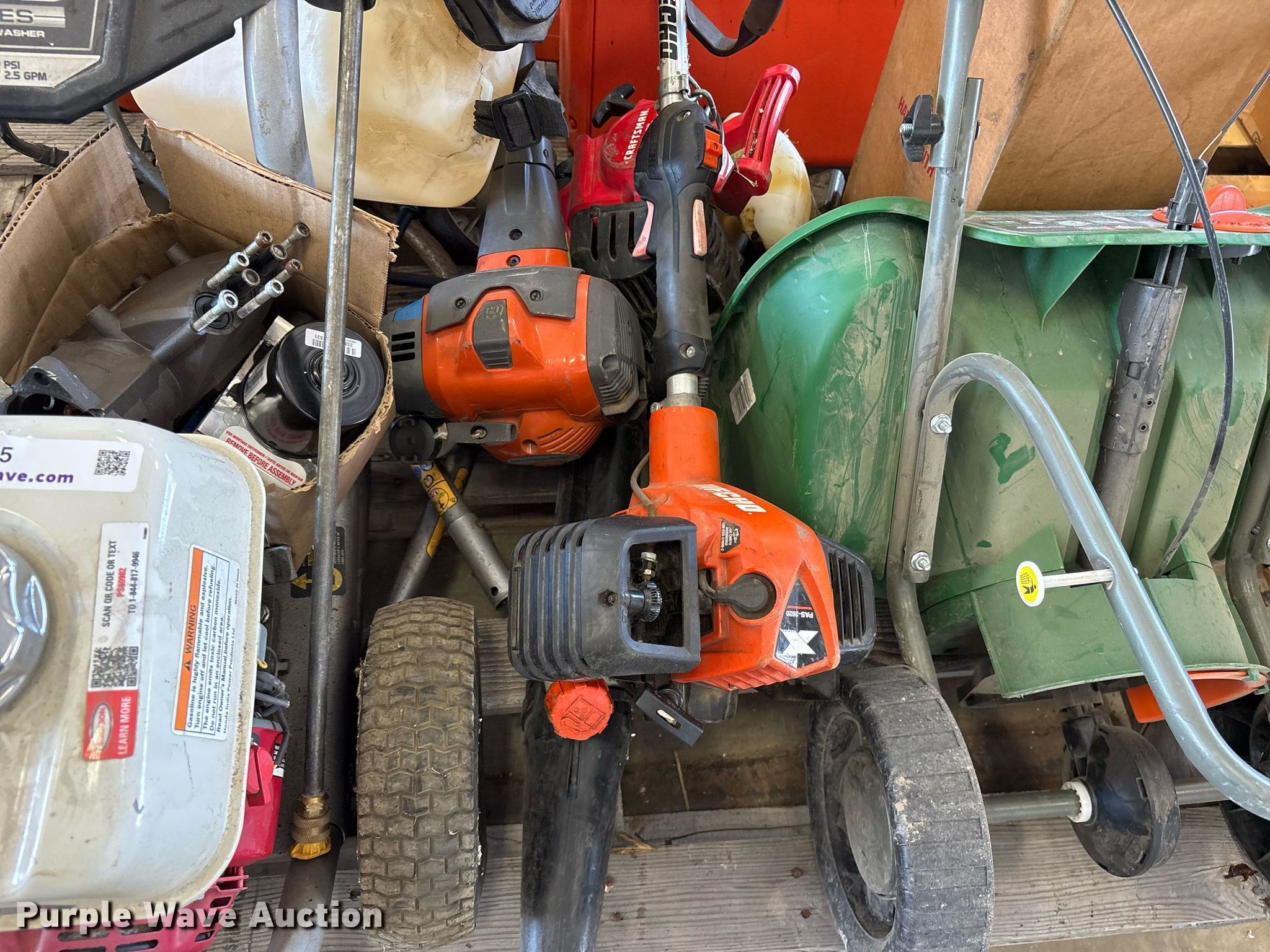 Lawn and garden equipment. Honda pressure washer, String trimmers, Chain saw, Fertilizer spreader, Blower, (2) lawn mowers. Valfair Construction - Open Inspection June 9, 10 and 11. 501 East US Highway 80. Forney, TX 75126