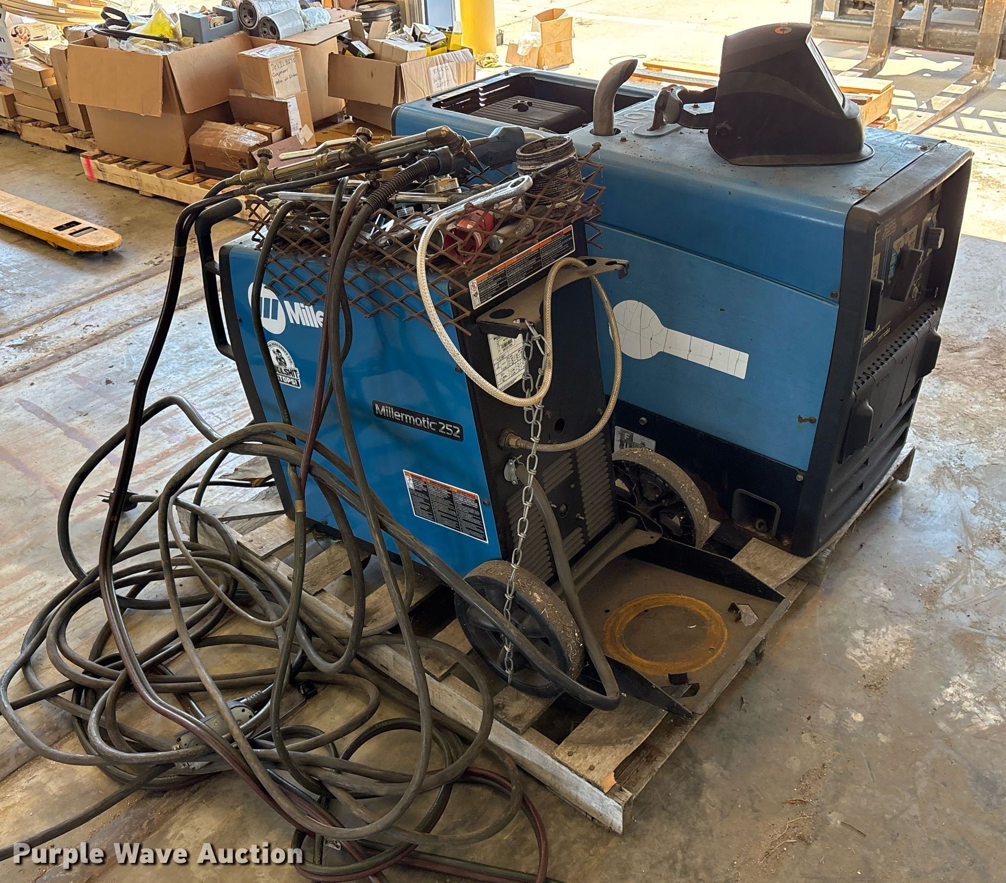 (2) Miller welders. Miller Bobcat 250 welder/generator. Hours: 714 on meter. Engine Cylinders: 2, Fuel type: Gas, Welder Capabilities: CC, CV, AC, DC, Stick, TIG, Wire, Generator Watts: 10,500, Phase: Single, 240V outlets: 1, 120V outlets: 4. Miller Millermatic 252 welder Welder Capabilities: Wire, MIG, Leads. Valfair Construction - Open Inspection June 9, 10 and 11. 501 East US Highway 80. Forney, TX 75126
