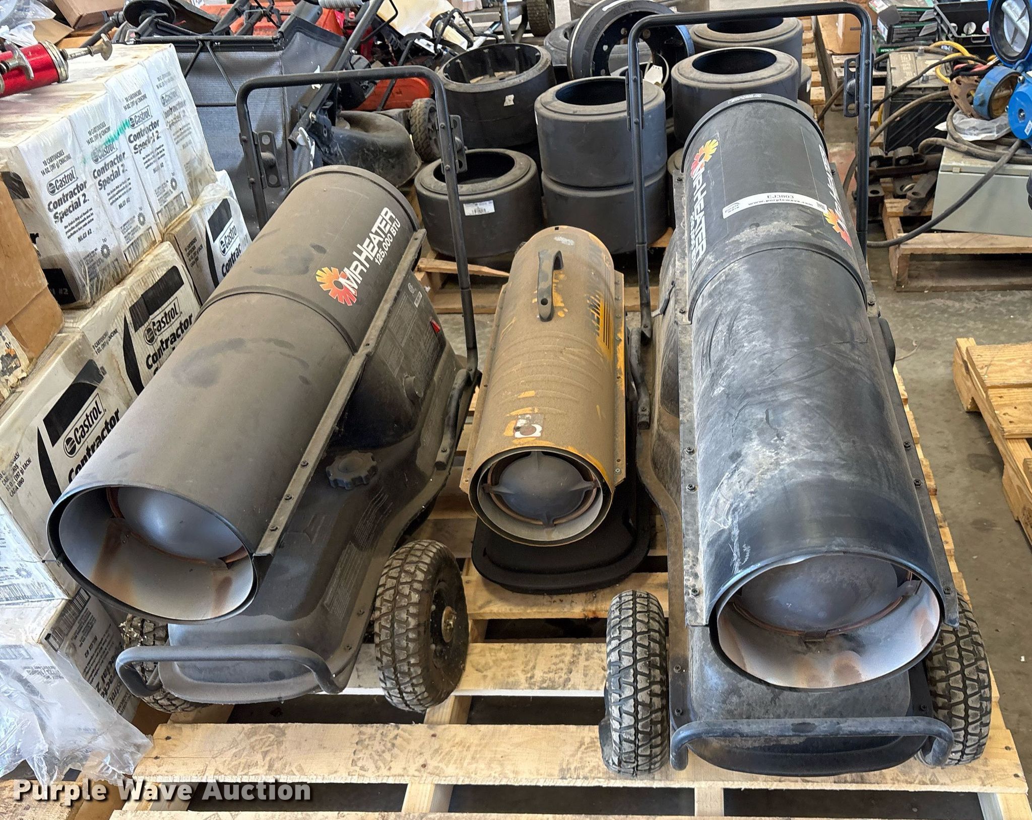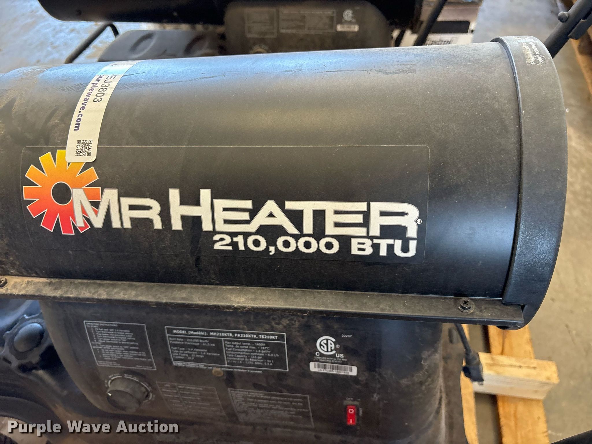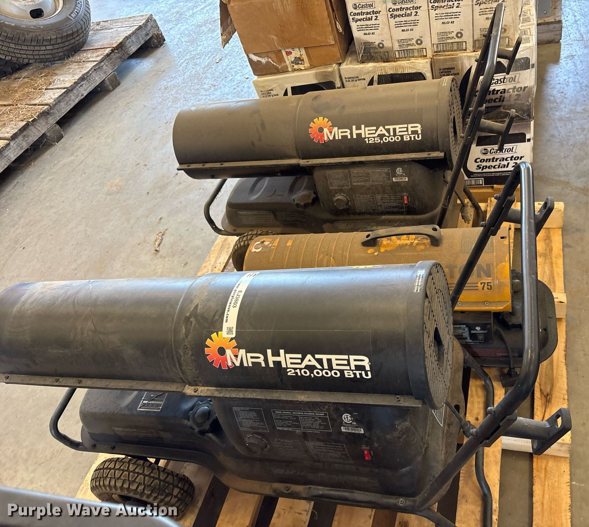 Purple Wave is selling a used Portable Heater or Fan in Texas. This item is a Heaters with the following: Mr. Heater, BTU: 210,000, Fuel type: Diesel, Kerosene, Non-operational, Mr. Heater, BTU: 125,000, Fuel type: Diesel, Kerosene, Non-operational, Remington, BTU: 75,000, Fuel type: Diesel, Kerosene