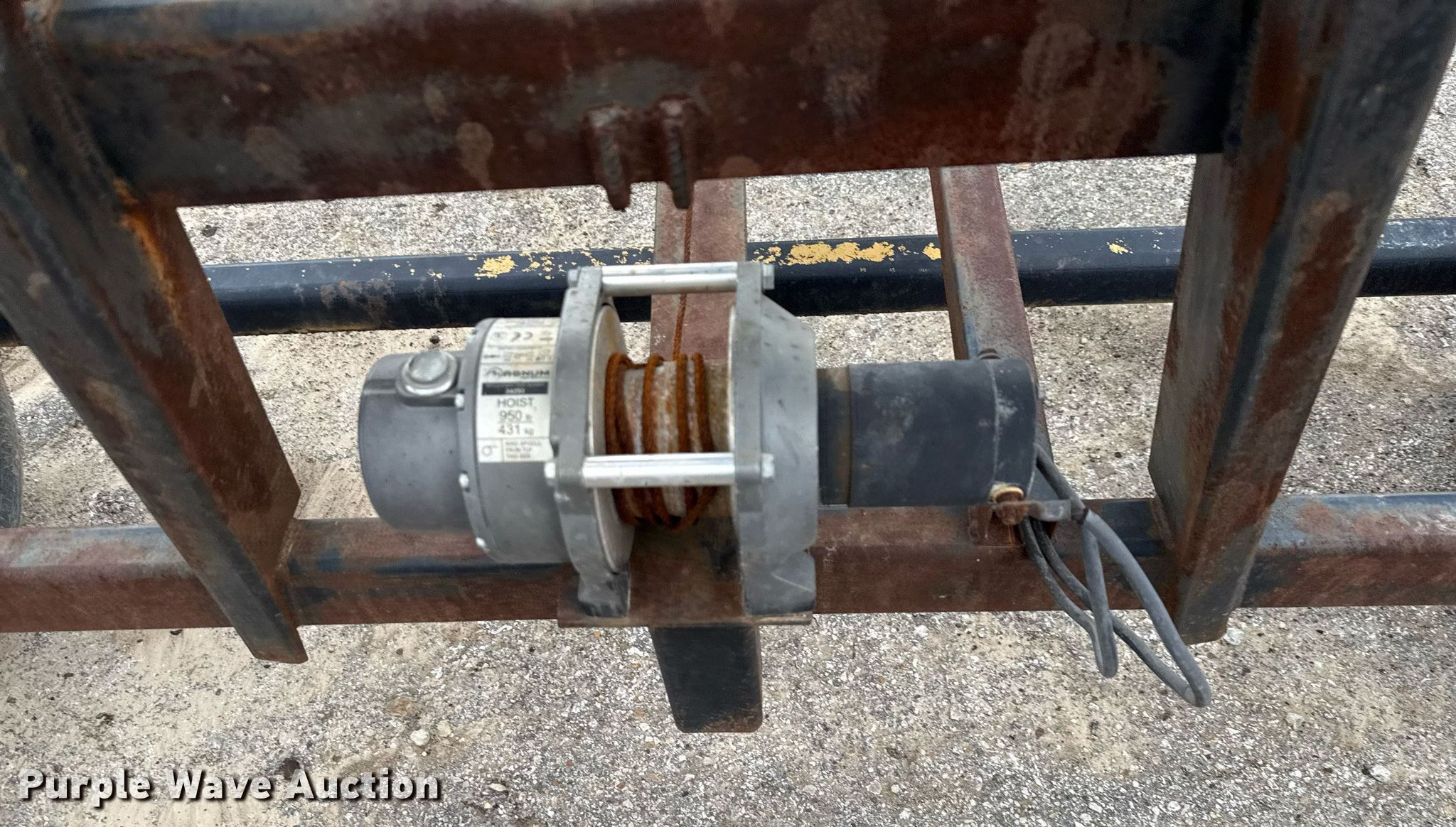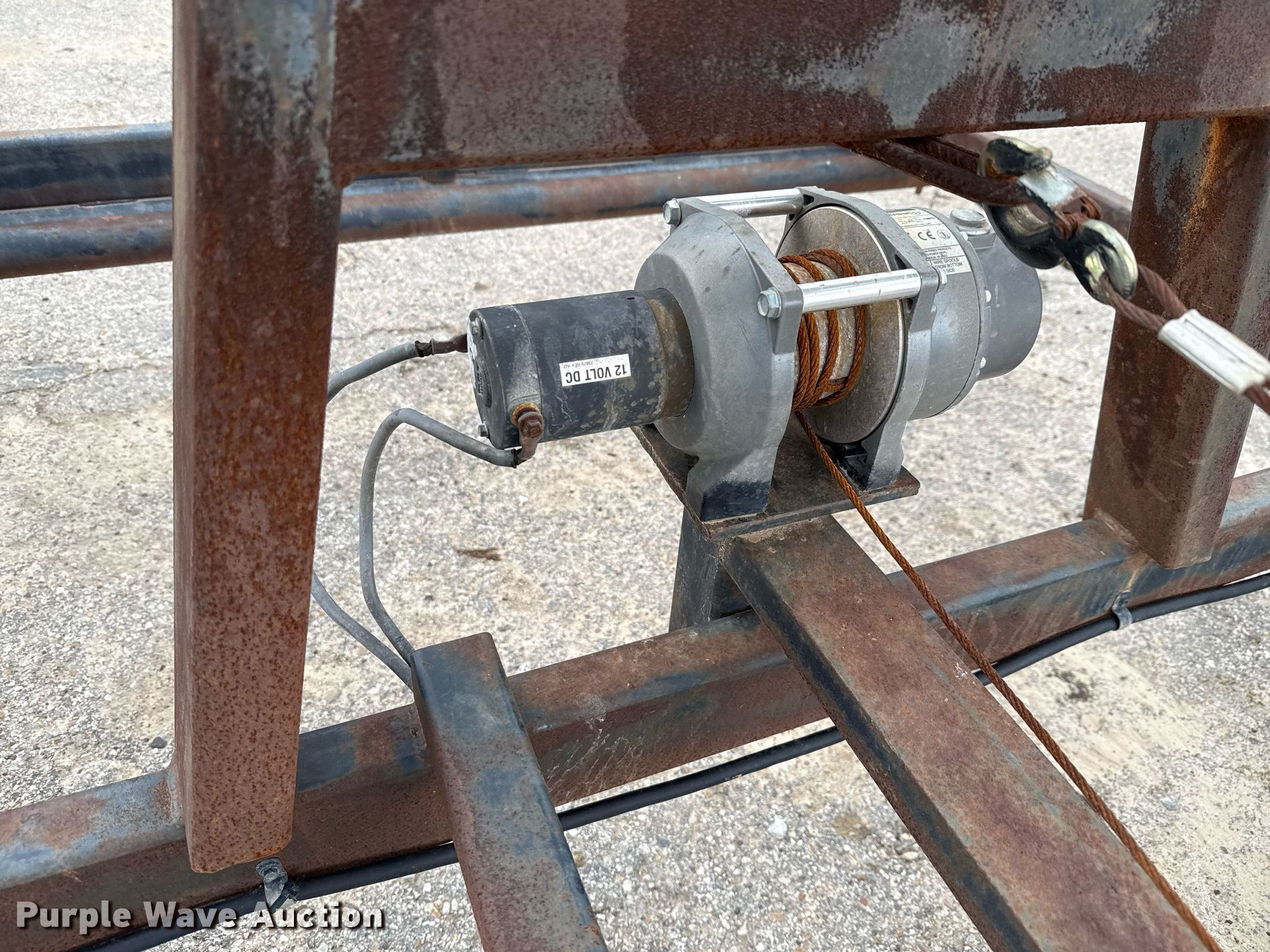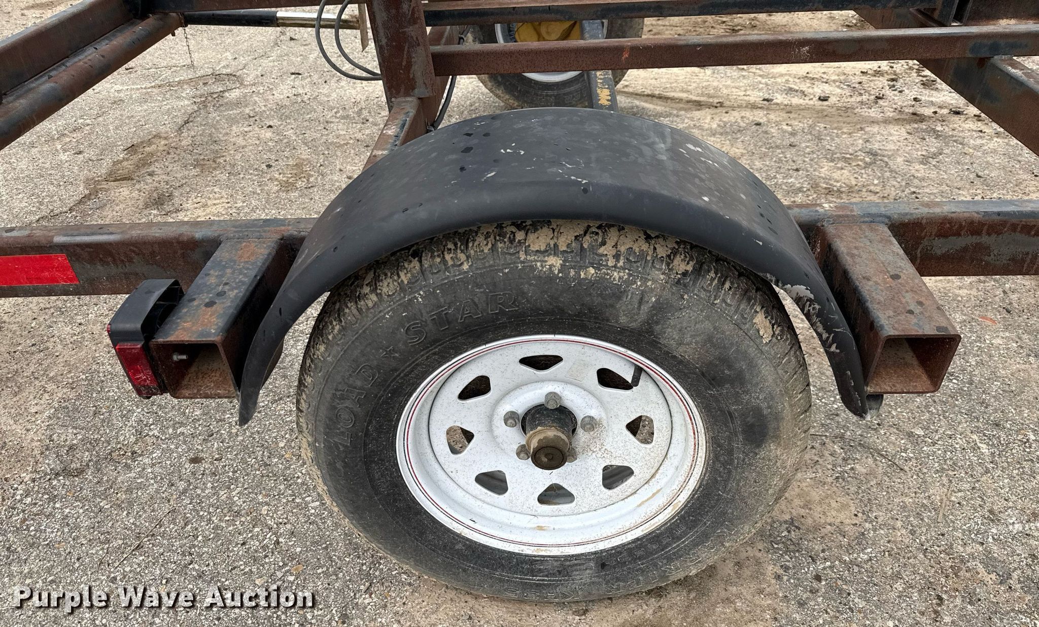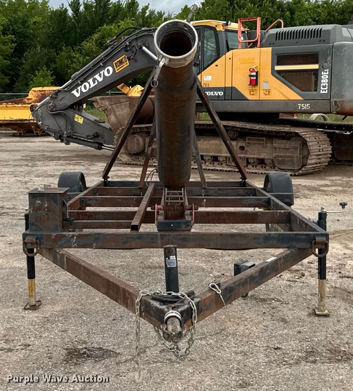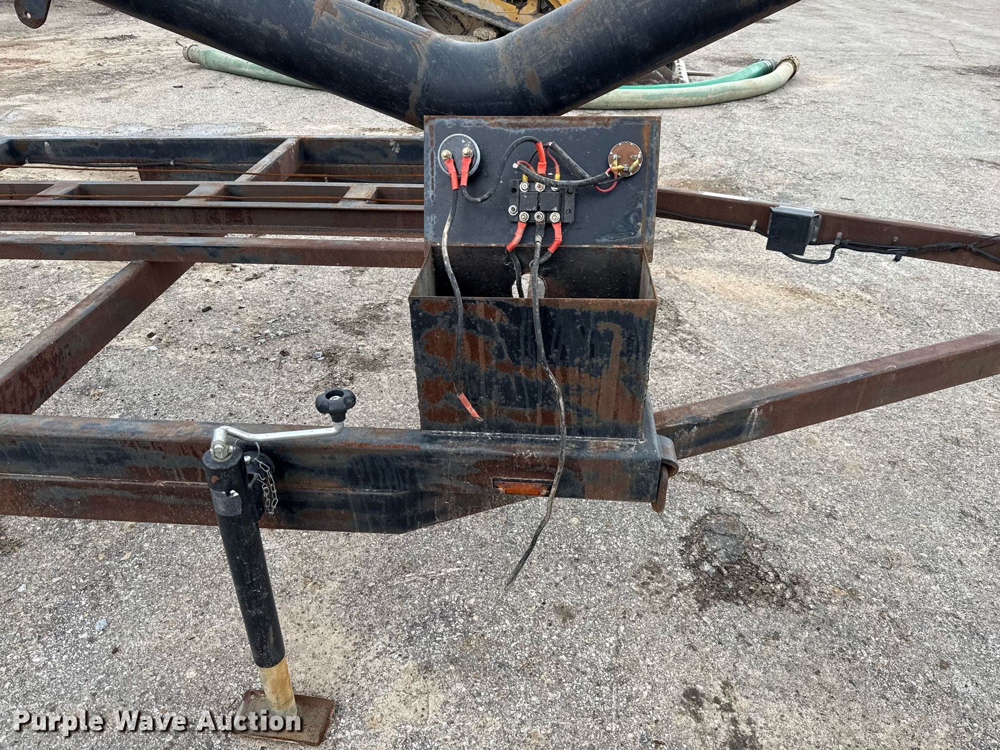 Shop built J stand trailer. Unit #: 5024. Dimensions Overall: 22' x 96" W, Deck: 16' x 76" W. Features Magnum 34293 winch, Water leg Length: Approx. 23', Inlet/outlet: 8", (4) stabilizers. Chassis Ball hitch: 2", Suspension: Torsion, Brakes: Electric. Tires Steel wheels, Size: 205/75R15. Notes Battery missing, Unknown operating condition of winch. Transfer of ownership documentation will be a bill of sale. Valfair Construction - Open Inspection June 9, 10 and 11. 501 East US Highway 80. Forney, TX 75126