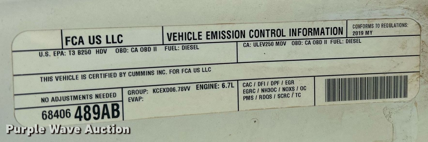 Purple Wave is selling a used 3/4 or 1 Ton Pickup or Van in Texas. This item is a 2019 Dodge Ram 2500 Crew Cab pickup truck with the following: Miles: 197,733 on odometer, Engine hours: 11,895 on meter, VIN: 3C6UR5JLXKG584197
