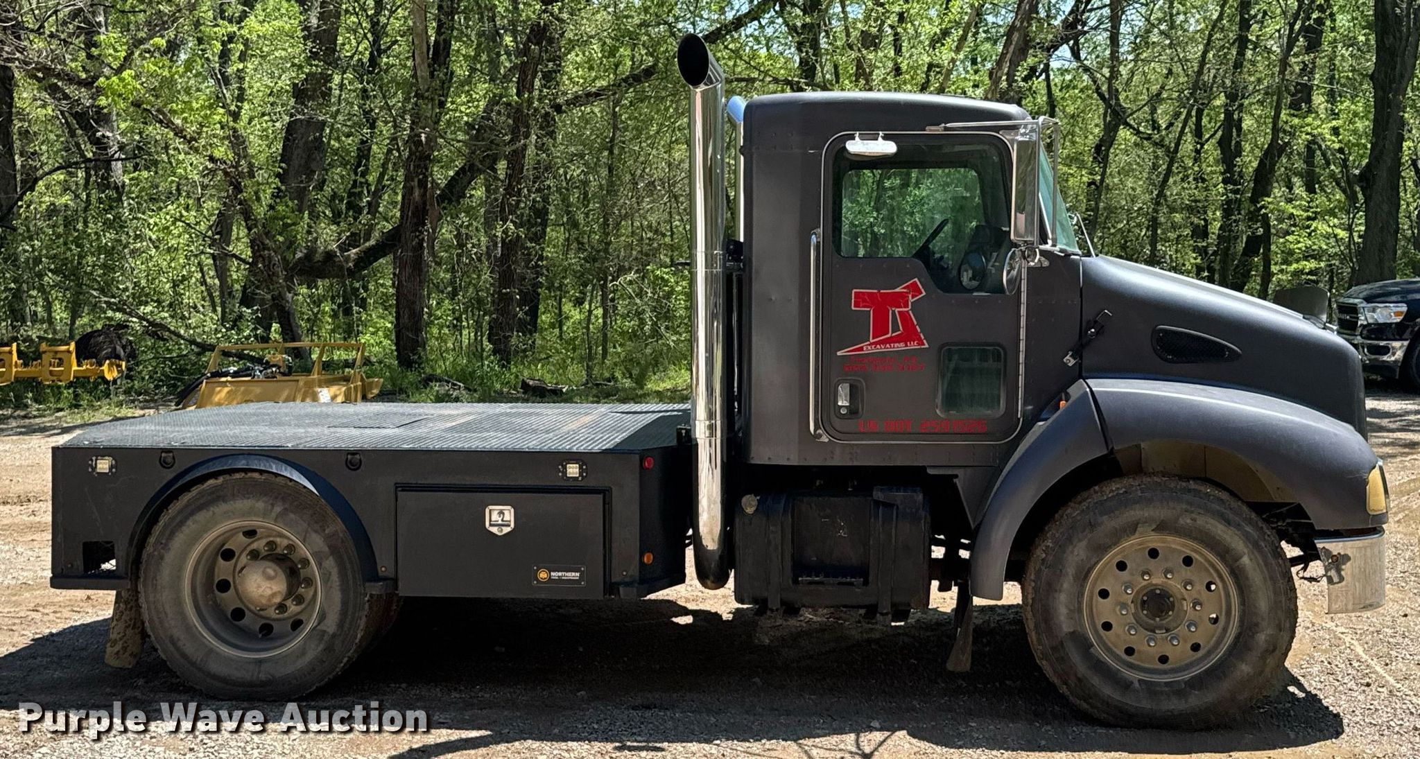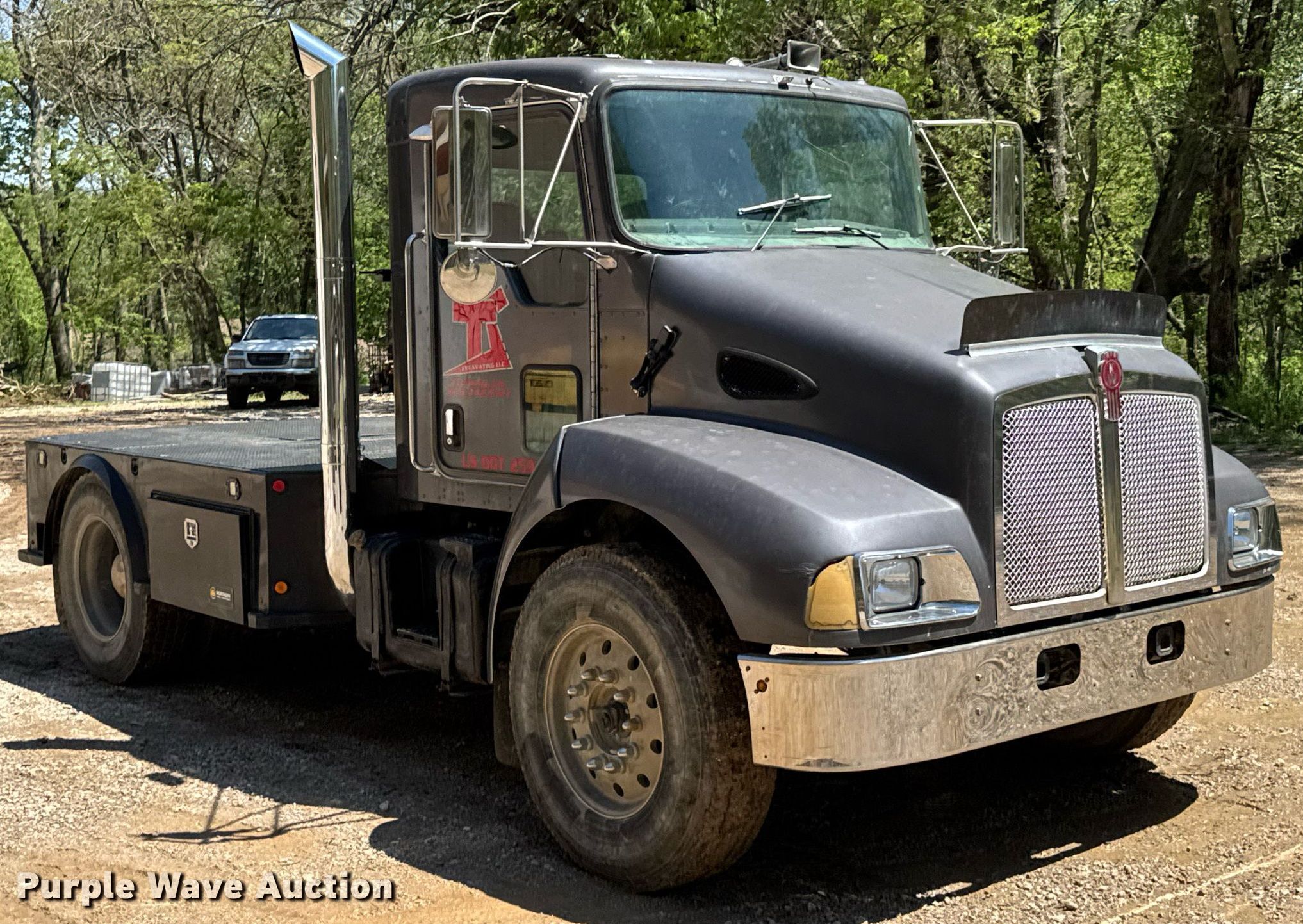This 2005 Kenworth T300 flatbed truck will sell to the highest bidder regardless of price.