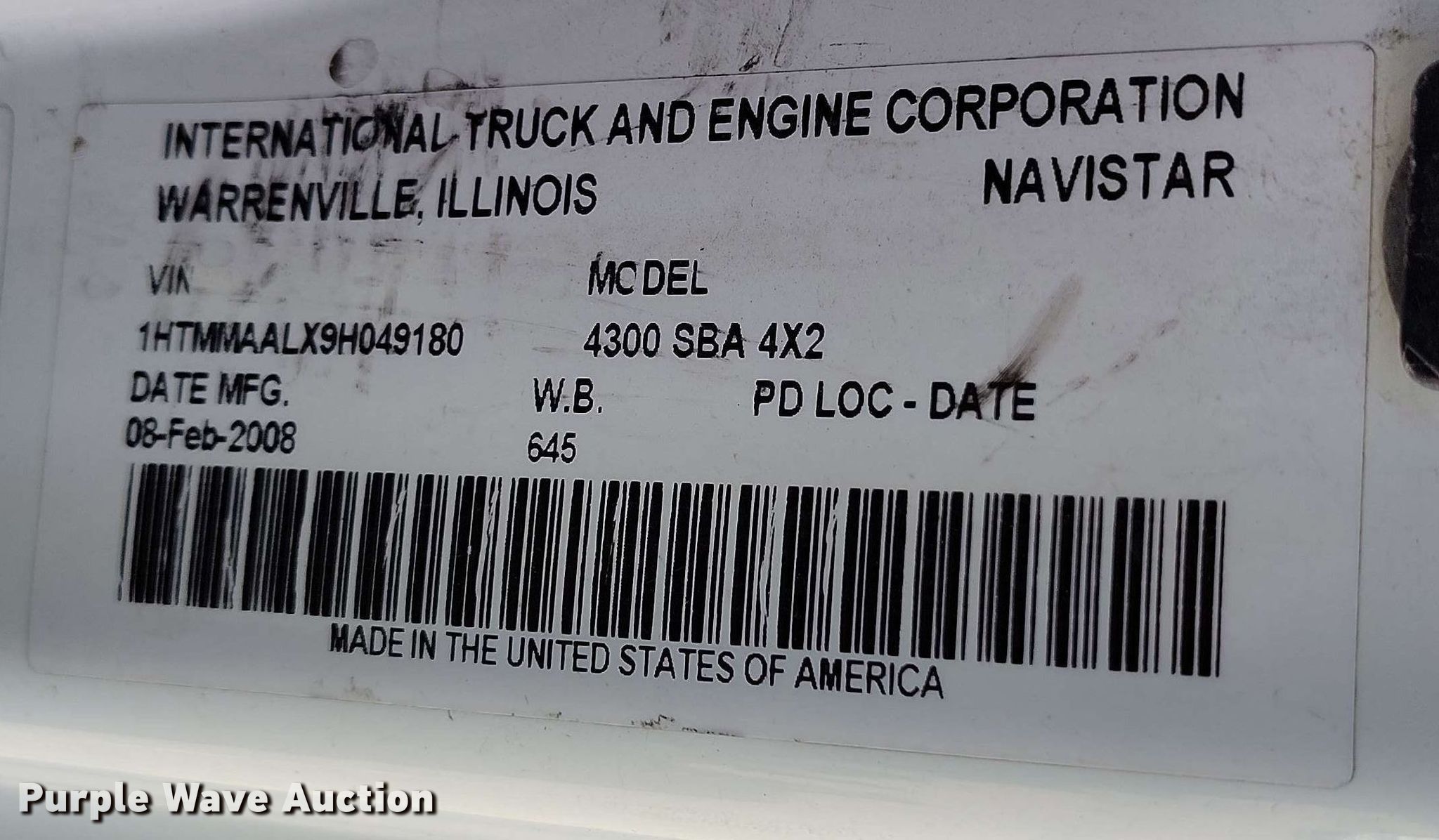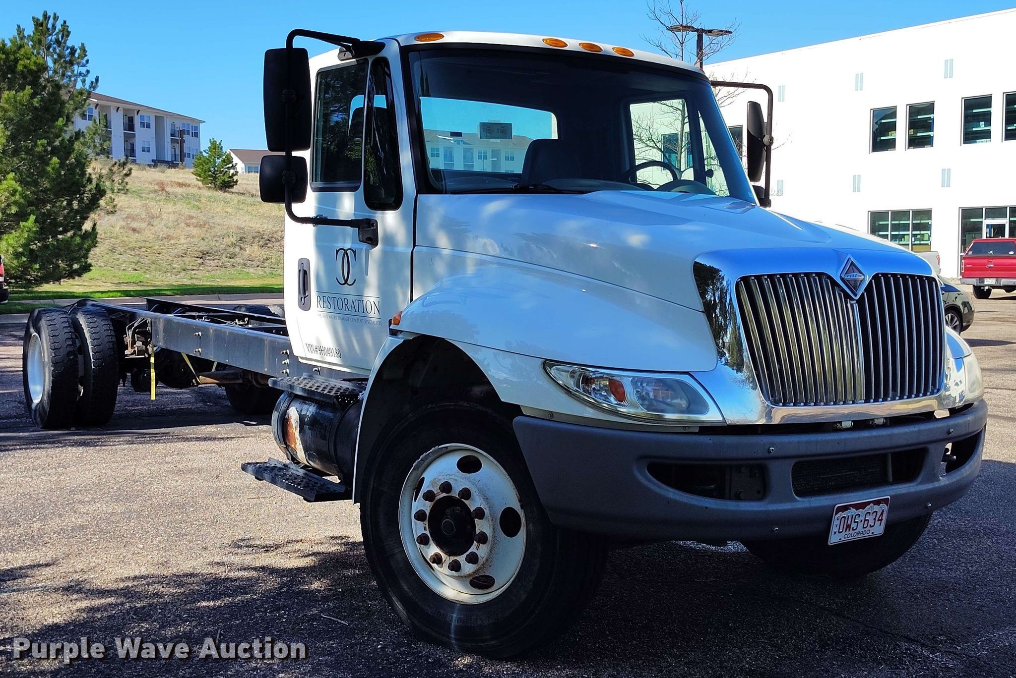 Purple Wave is selling a used Truck Chassis in Colorado. This item is a 2009 International DuraStar 4300 truck cab and chassis with the following: Miles: 172,511 on odometer, Hours: 5,647 on meter, VIN: 1HTMMAALX9H049180