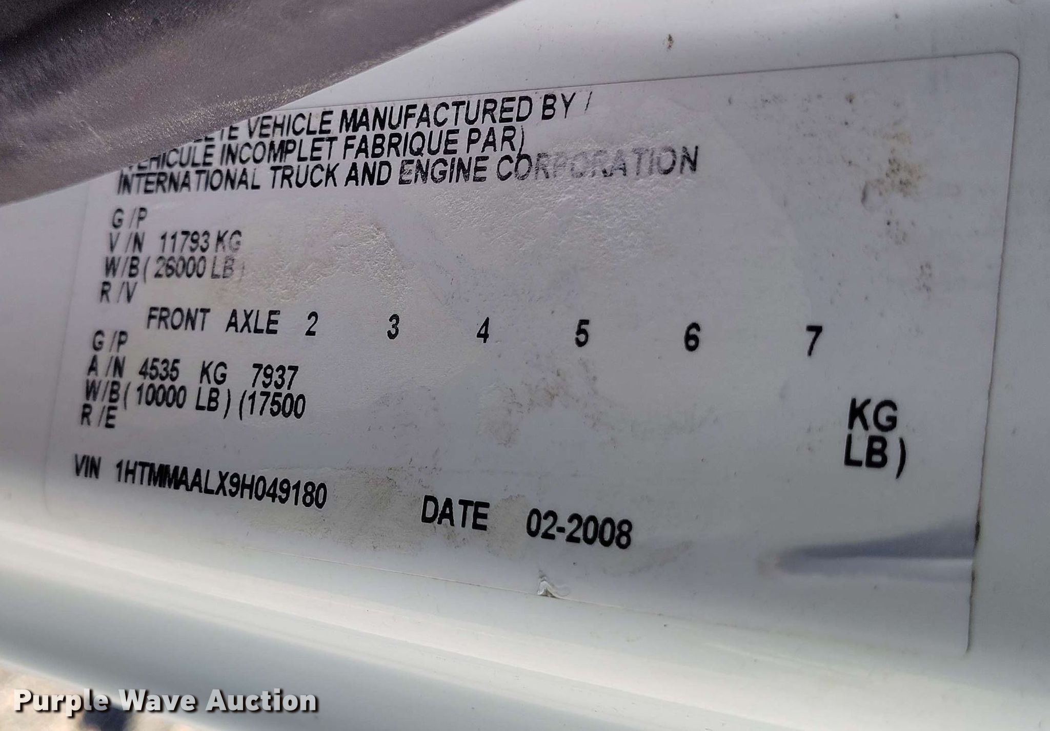 - VIN: 1HTMMAALX9H049180
