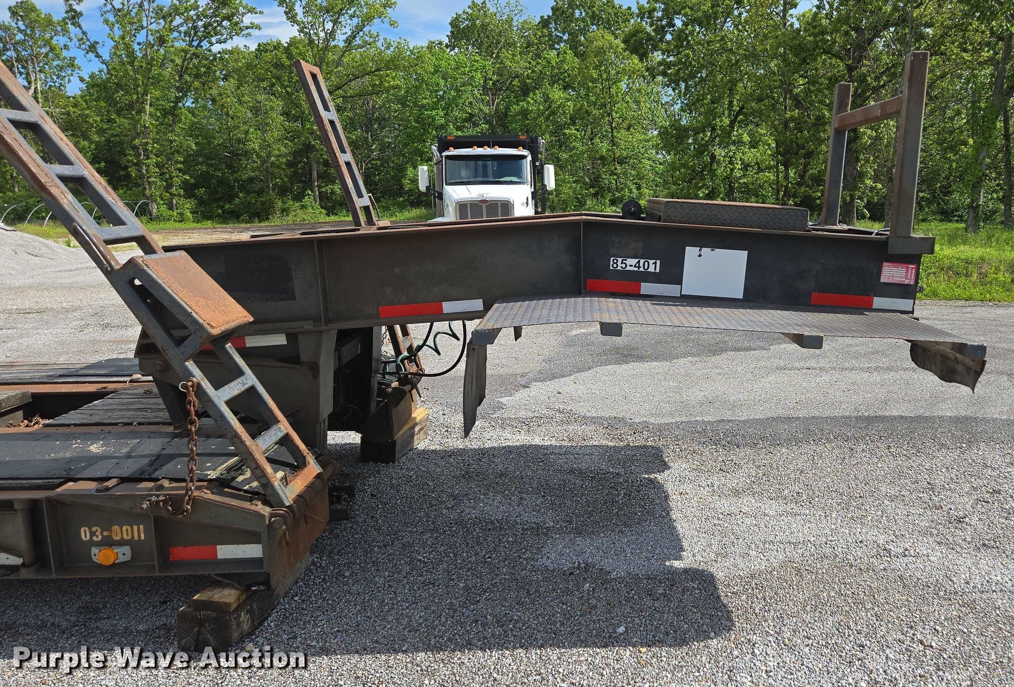Purple Wave is selling a used Equip. Trailer in Missouri. This item is a 1993 Witzco Trailers Inc. RG-35 lowboy equipment trailer with the following: VIN: 1W9A11D25PS061056, Unit #: 03-0011/85-401