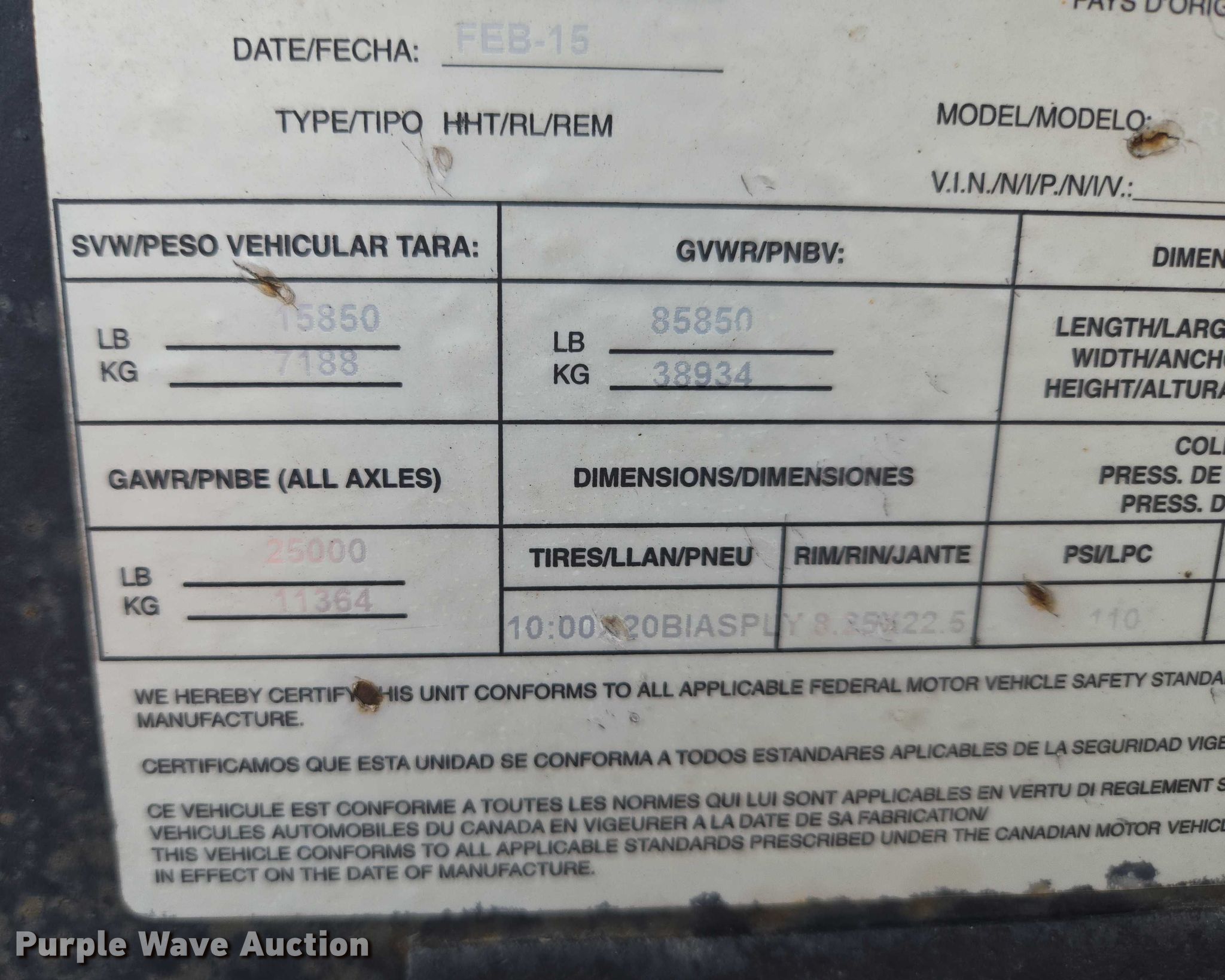 - GVWR: 85,850 lbs