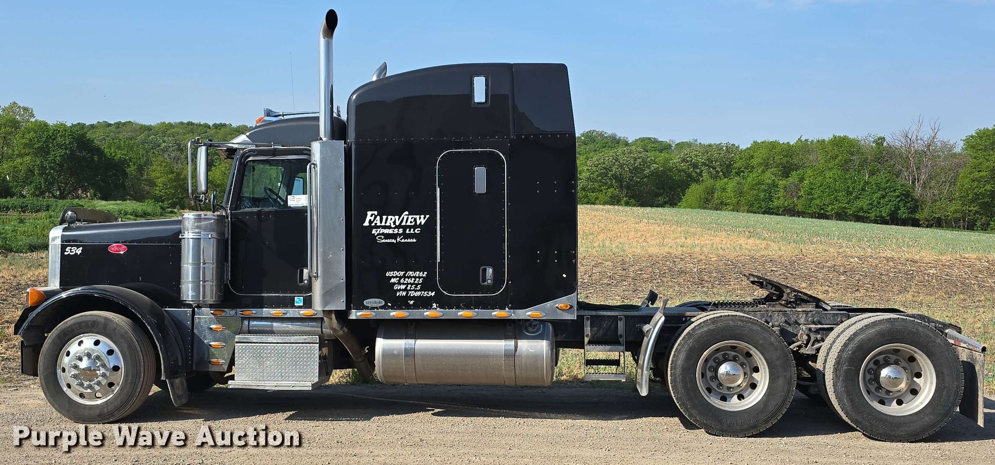 Purple Wave is selling a used Truck Tractor in Kansas. This item is a 2007 Peterbilt 379 semi truck with the following: Miles: 1,493,717 on odometer, Hours: 11,460 on meter, VIN: 1XP5DB9X27D697534, Unit #: 534