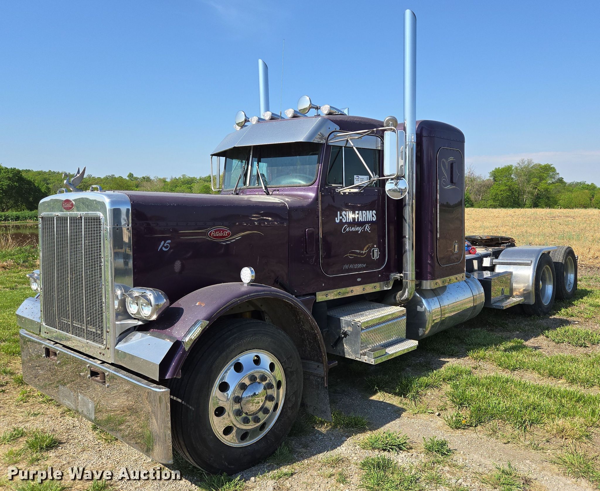 Purple Wave is selling a used Truck Tractor in Kansas. This item is a 1985 Peterbilt 359 semi truck with the following: Miles: 780,463 on odometer, Miles: Unknown, VIN: 1XP9DB9X4FN189804, Unit #: 15