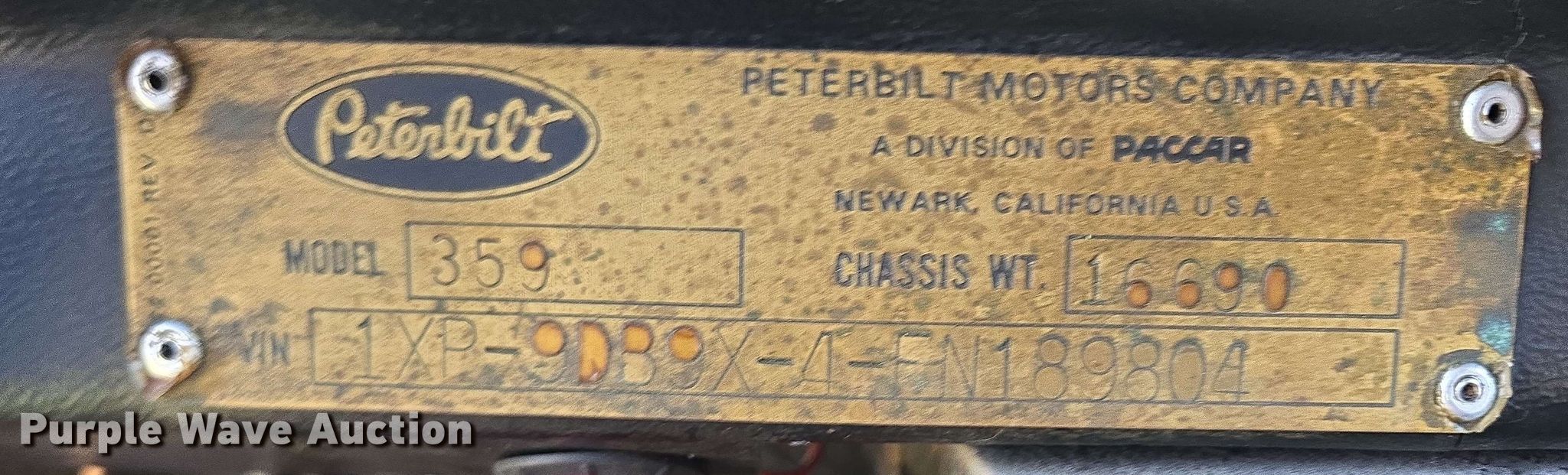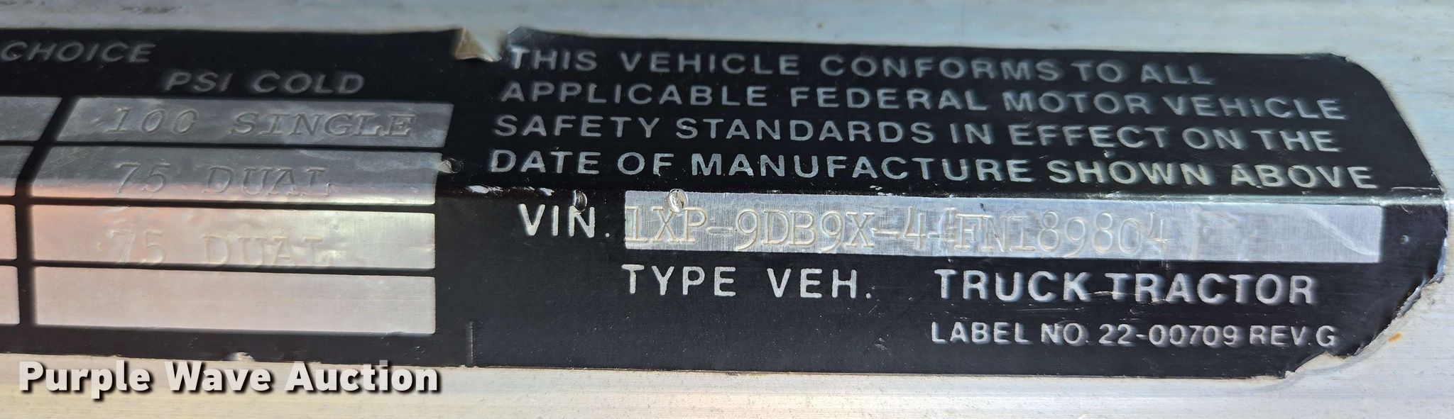- VIN: 1XP9DB9X4FN189804