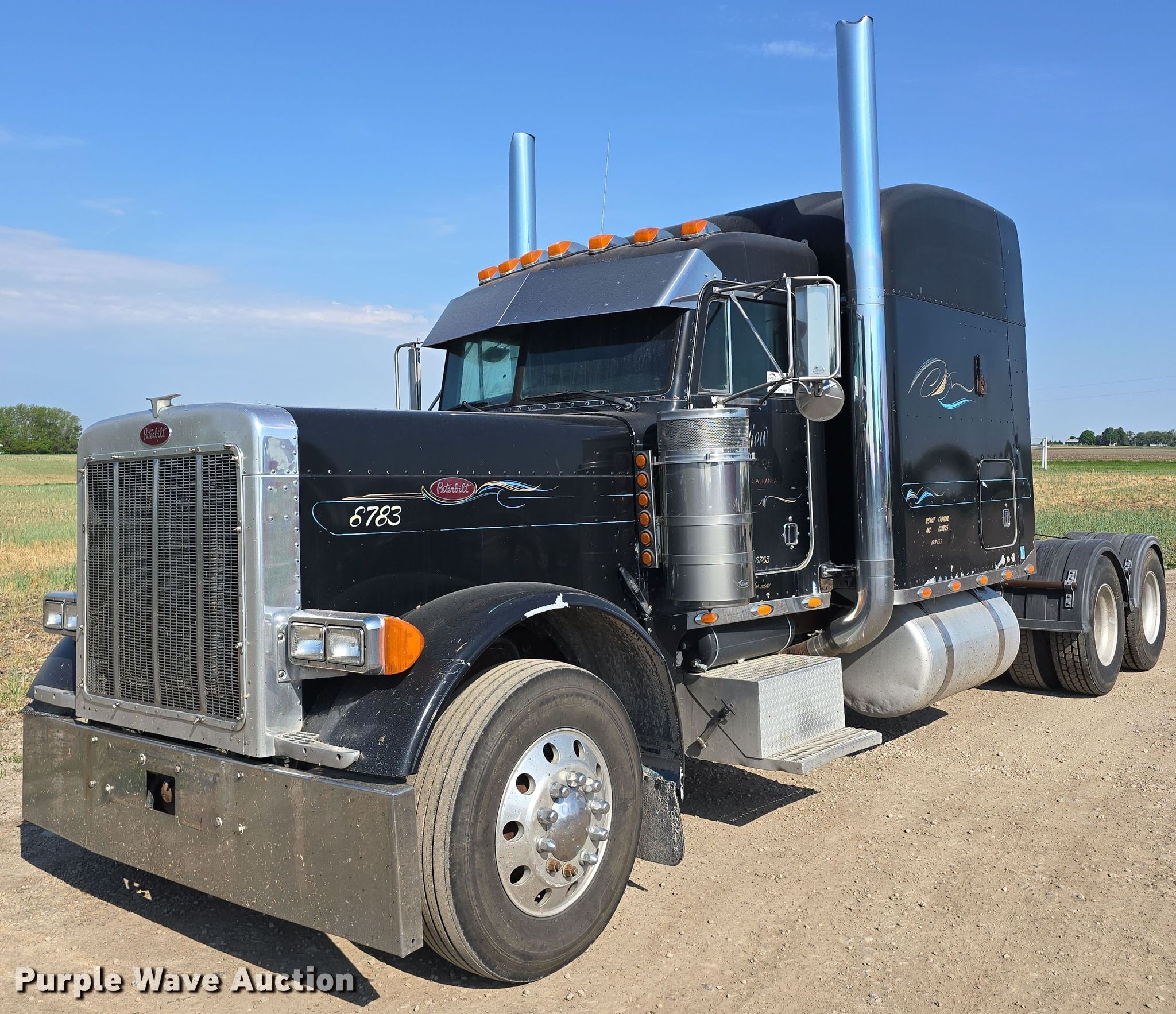 Purple Wave is selling a used Truck Tractor in Kansas. This item is a 2001 Peterbilt 379 semi truck with the following: Miles: 407,693 on odometer, Actual milage unknown, VIN: 1XP5DB9X21D528783, Unit #: 8783