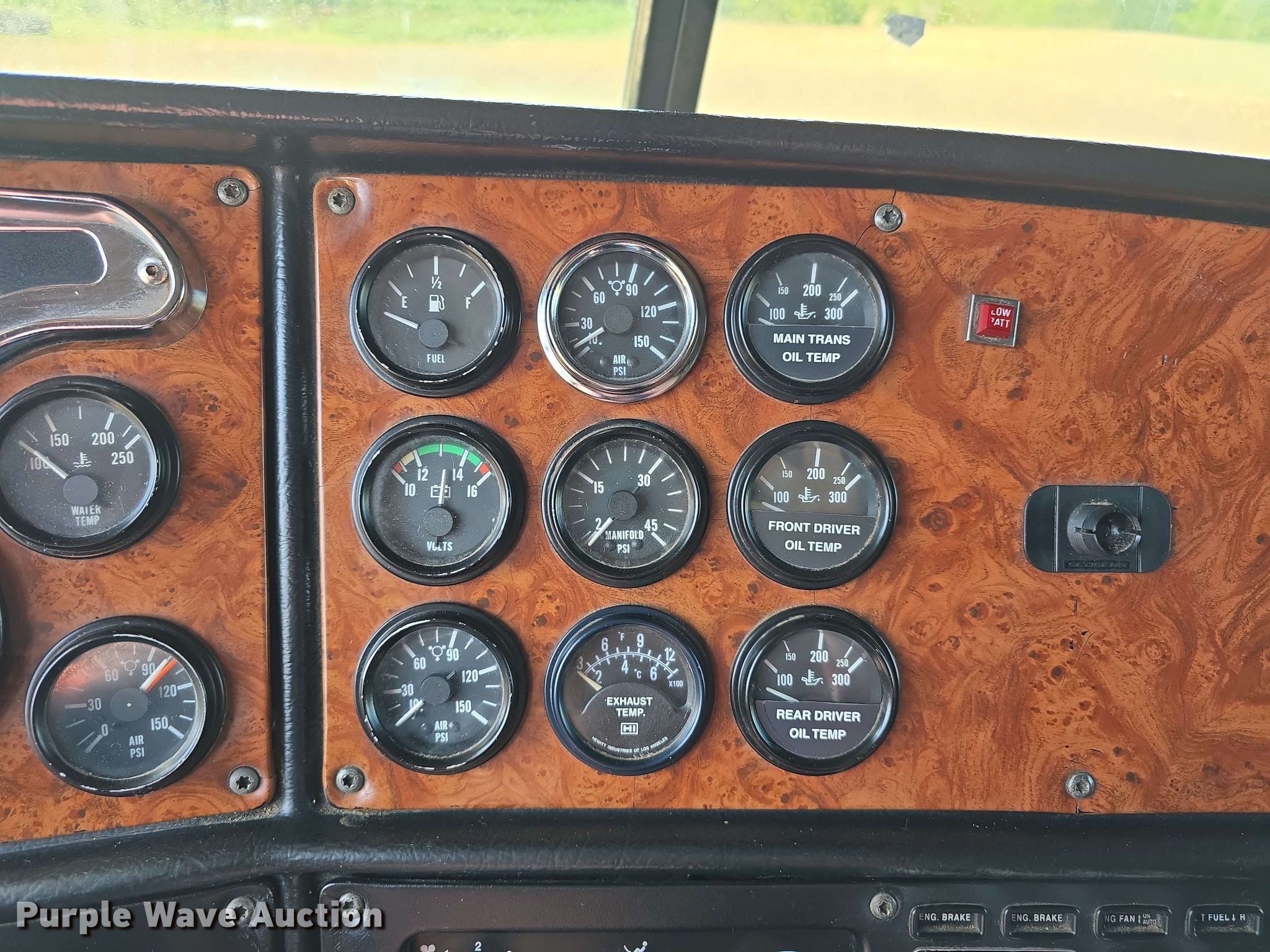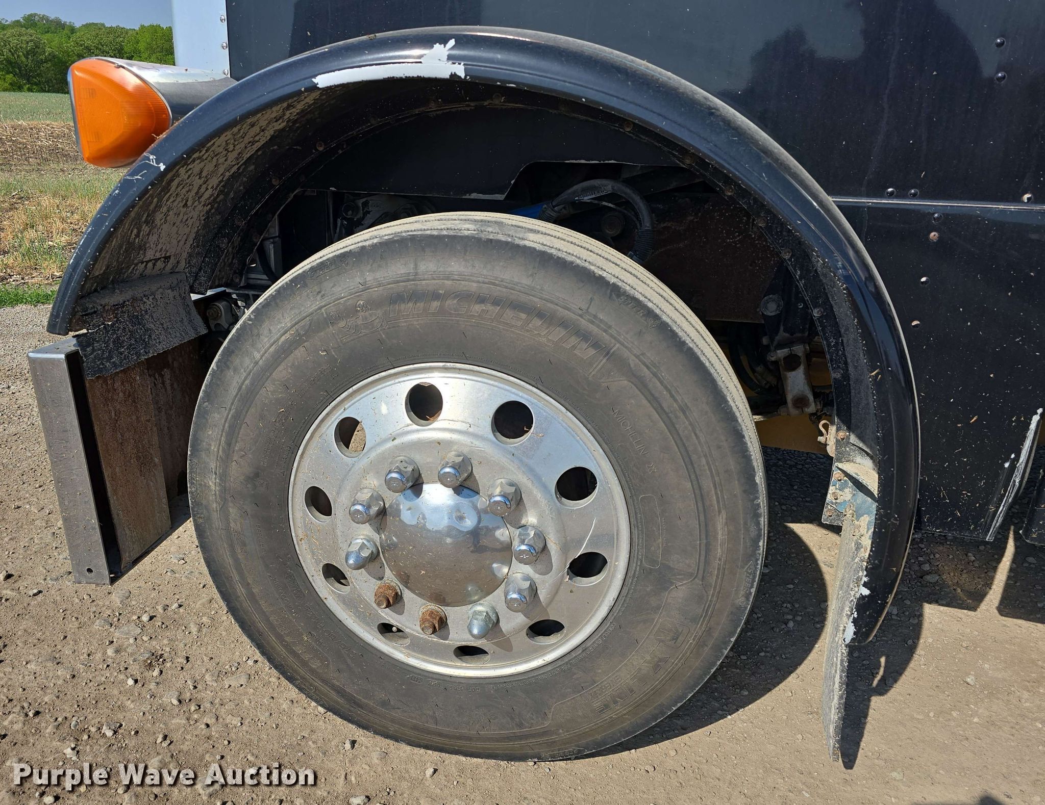 2001 Peterbilt 379 semi truck. Miles: 407,693 on odometer Actual milage unknown, VIN: 1XP5DB9X21D528783, Unit #: 8783. Engine Caterpillar, Displacement: 14.6L, Cylinders: 6, Fuel type: Diesel, Engine brake. Transmission Eaton Fuller RTLO-16913A, Manual, Speed: 13. Chassis Axles: Tandem, Differential lock: Inter-axle, Suspension: Air Dump valves, Brakes: Air, GVWR: 48,000 lbs FAWR: 12,000 lbs, IAWR: 18,000 lbs, RAWR: 18,000 lbs, Wheelbase: 262". Interior AC, Heat, Heated mirrors, Cruise control, Air ride cab, Sleeper Sleeper length: 72", Beds: Double bunk, Rear climate control. Features Deck plate: Aluminum, Fifth wheel type: Air operated, Sliding, Fuel tank: Dual. Tires Front: 275/80R22.5, Rear: 295/75R22.5. Notes Odometer has rolled over, Windshield chipped or cracked. Texas title. Mileage has not been verified. Exempt will be written in the odometer disclosure on the title. Title distribution may be delayed up to 14 days from verification of funds. J-Six Enterprises. Hiawatha, KS 66434