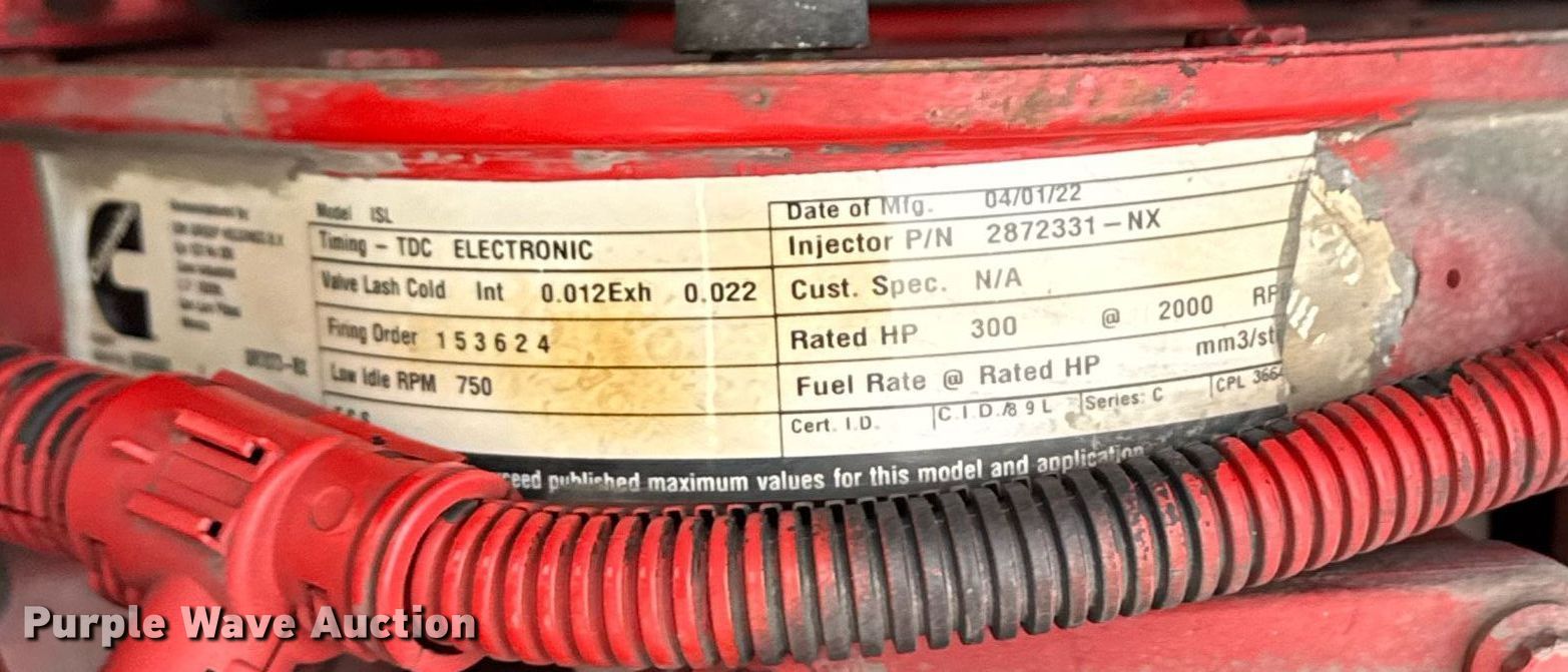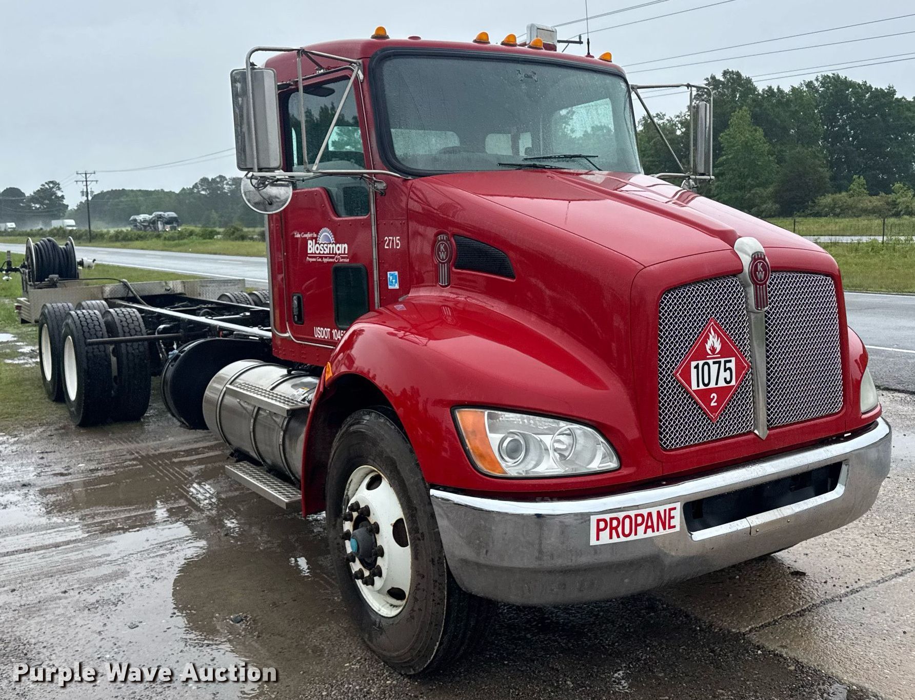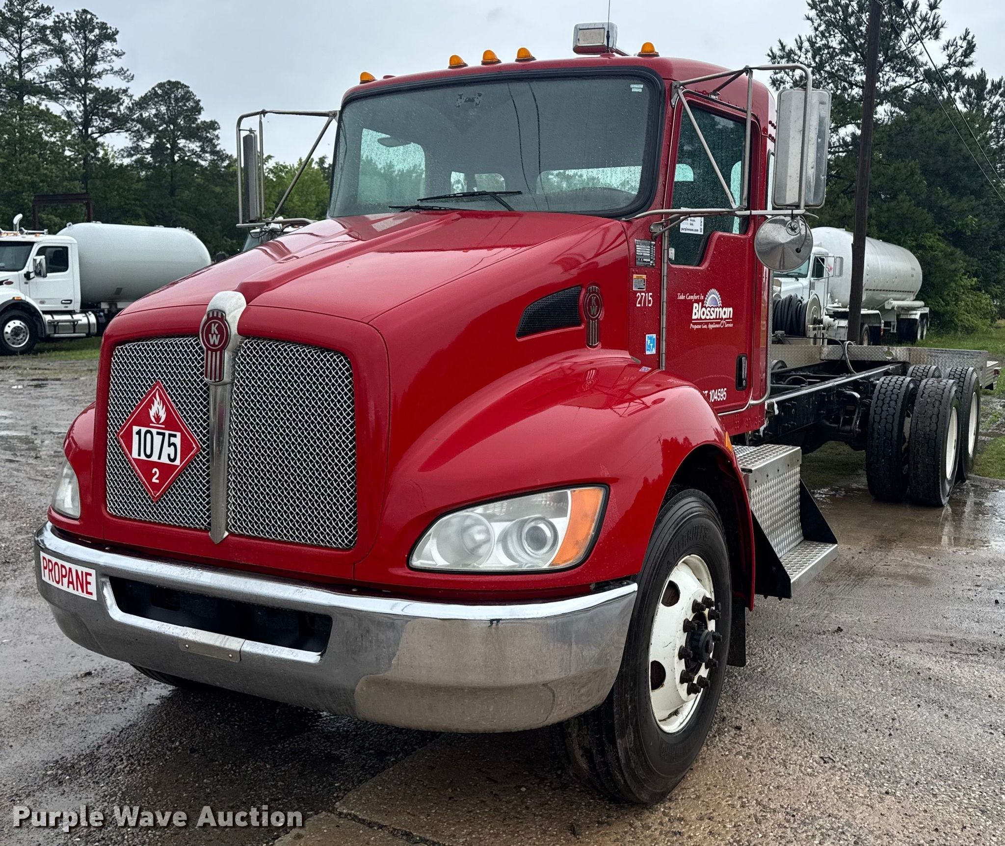 2015 Kenworth T370 truck cab and chassis. Miles: 301,396 on odometer, Hours: 13,766 on meter, VIN: 2NKHLJ9X1FM441680. Engine Cummins, Displacement: 8.9L, Cylinders: 6, Fuel type: Diesel, Engine brake. Transmission Automatic. Chassis Axles: Tandem, Differential lock: Inter-axle, Suspension: Spring, Brakes: Air, PTO, Truck chassis: 22', GVWR: 56,000 lbs. Interior AC, Heat, Heated mirrors, Power windows, Power locks, Cruise control. Features Fuel tank: Single. Tires Front: 315/80R22.5, Rear: 11R22.5. Notes Dash warning indicator: Check engine, Hose reel not included. Mississippi title. Title distribution may be delayed up to 14 days from verification of funds. Blossman Gas Inc. Stony Creek, VA 23882