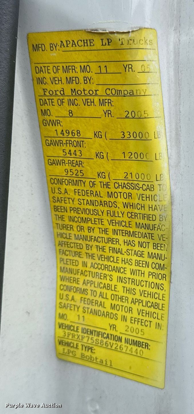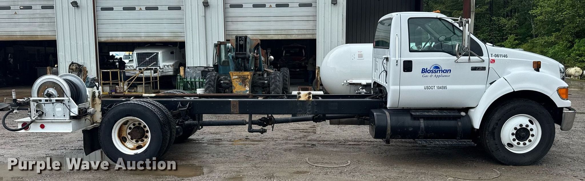 2006 Ford F750 Super Duty truck cab and chassis. Miles: 209,010 on odometer, VIN: 3FRXF75S86V267440. Engine Caterpillar C7, Displacement: 7.2L, Cylinders: 6, Fuel type: Diesel. Transmission Manual, Speed: 6. Chassis Axles: Single, Suspension: Spring, Brakes: Air, PTO, Truck chassis: 19' 4", GVWR: 33,000 lbs. Interior AC, Heat, Cruise control. Features Fuel tank: Single. Tires Size: 11R22.5. Notes Dash warning indicator: Service Engine Soon, Meter and hose reel not included. Mississippi title. Title distribution may be delayed up to 14 days from verification of funds. Blossman Gas Inc. Stony Creek, VA 23882