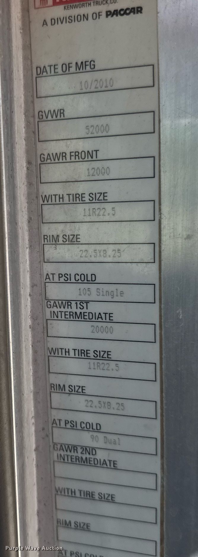 Purple Wave is selling a used Truck Tractor in Kansas. This item is a 2011 Kenworth T800 semi truck with the following: Miles: 668,555 on odometer, Hours: 29,042 on meter, VIN: 1XKDD49X2BJ292765