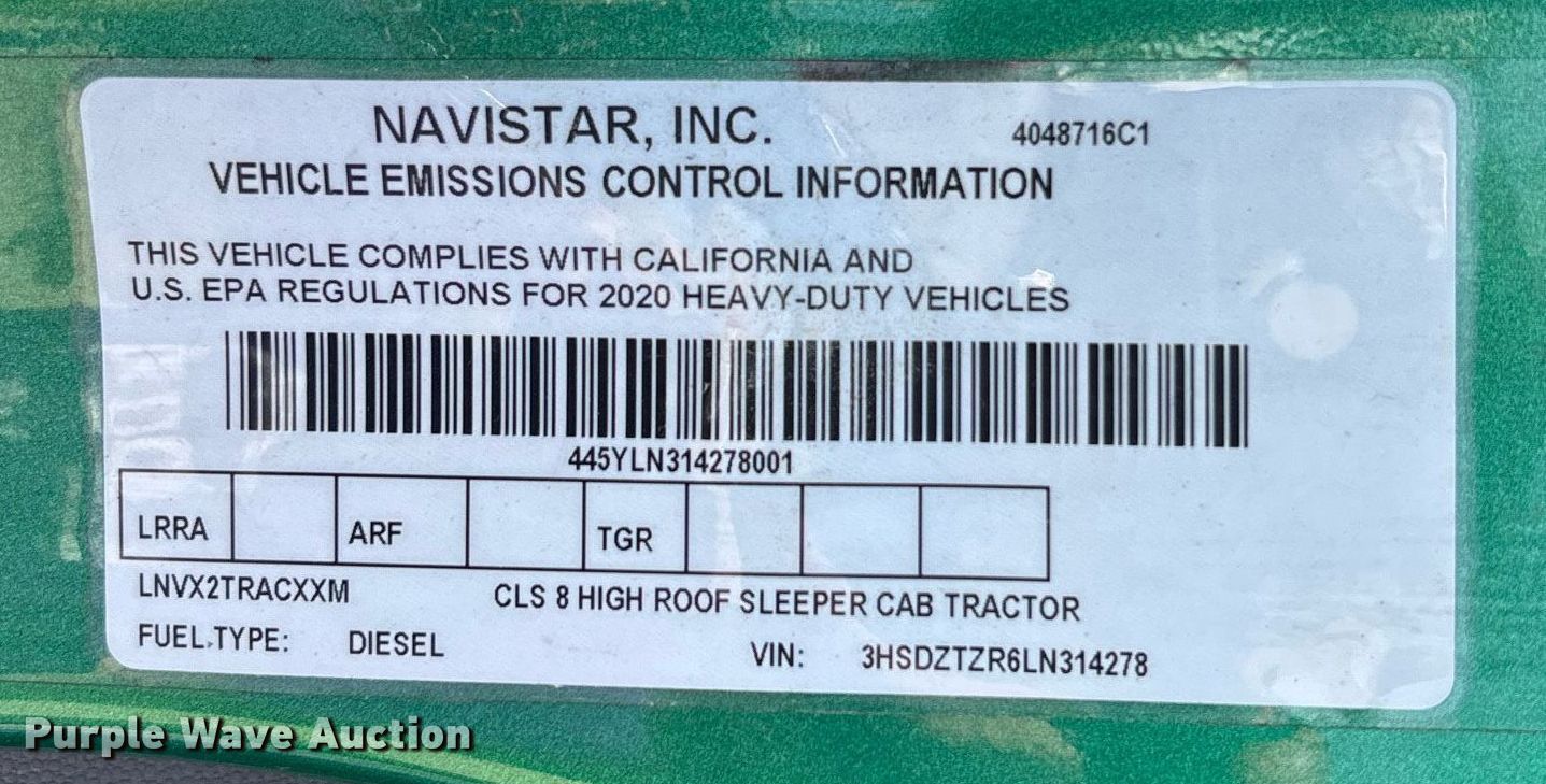 Purple Wave is selling a used Truck Tractor in South Carolina. This item is a 2020 International LT625 semi truck with the following: Miles: 446,516 on odometer, Hours: 12,643 on meter, VIN: 3HSDZTZR6LN314278