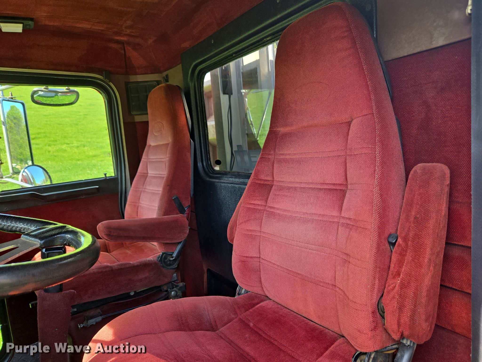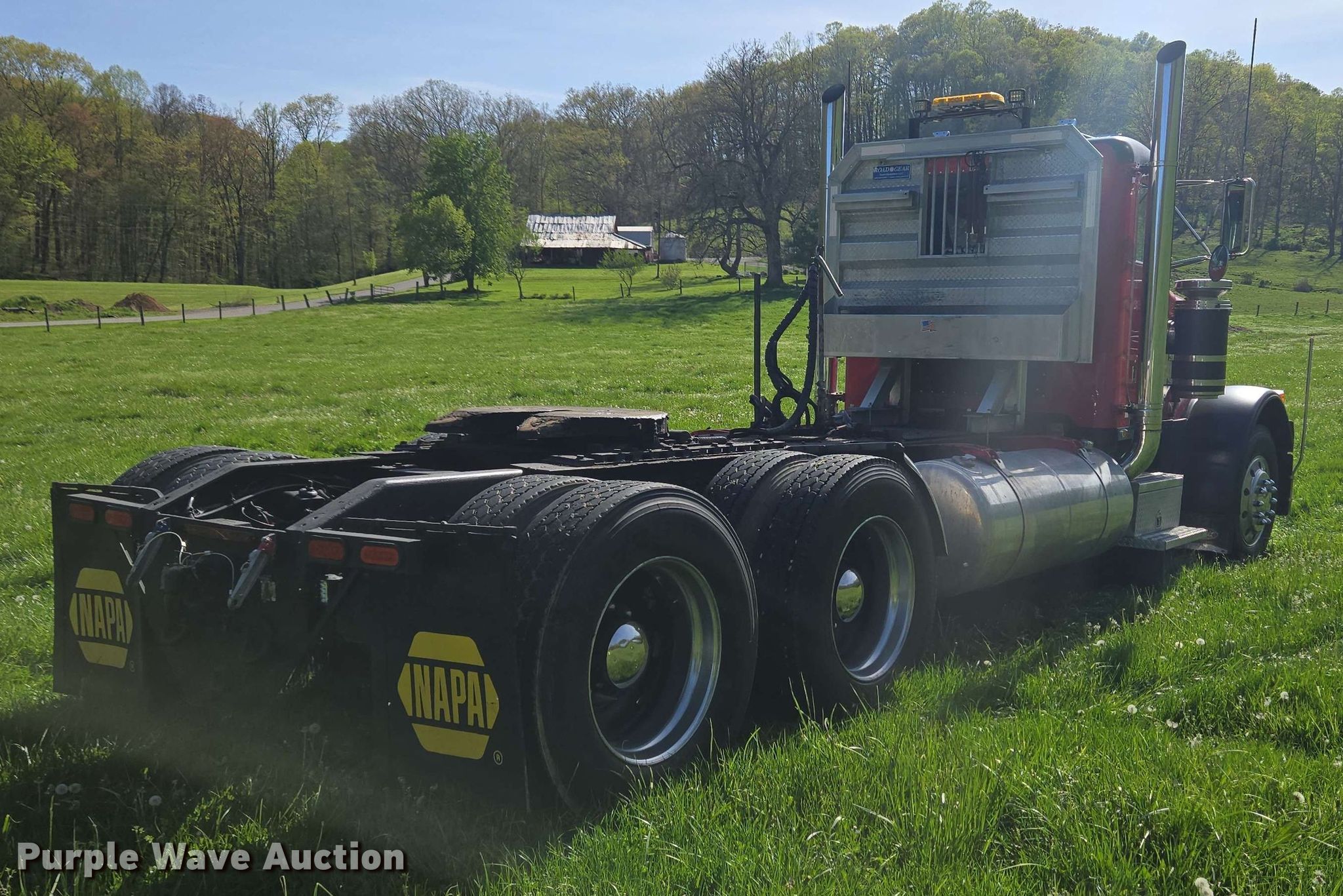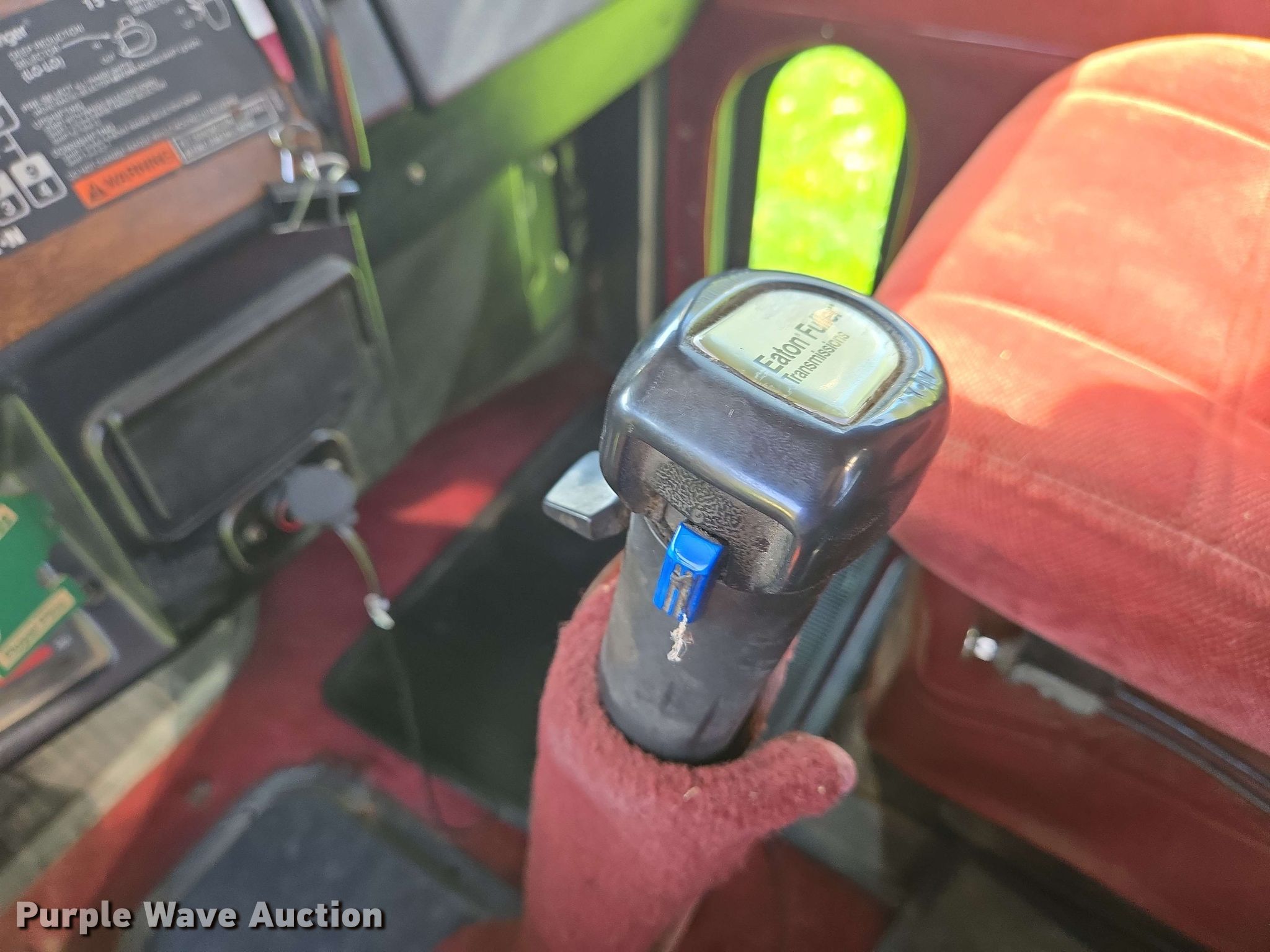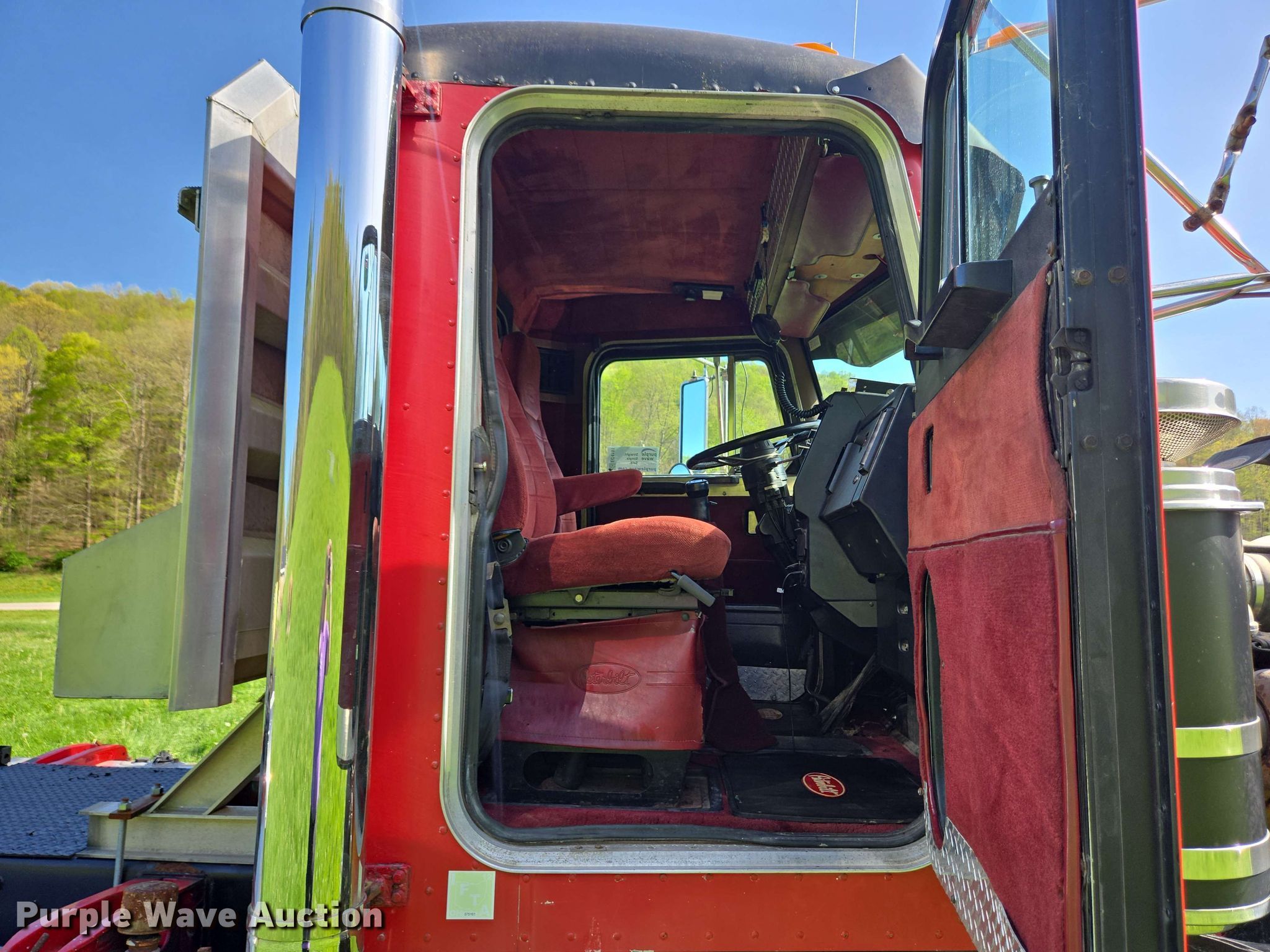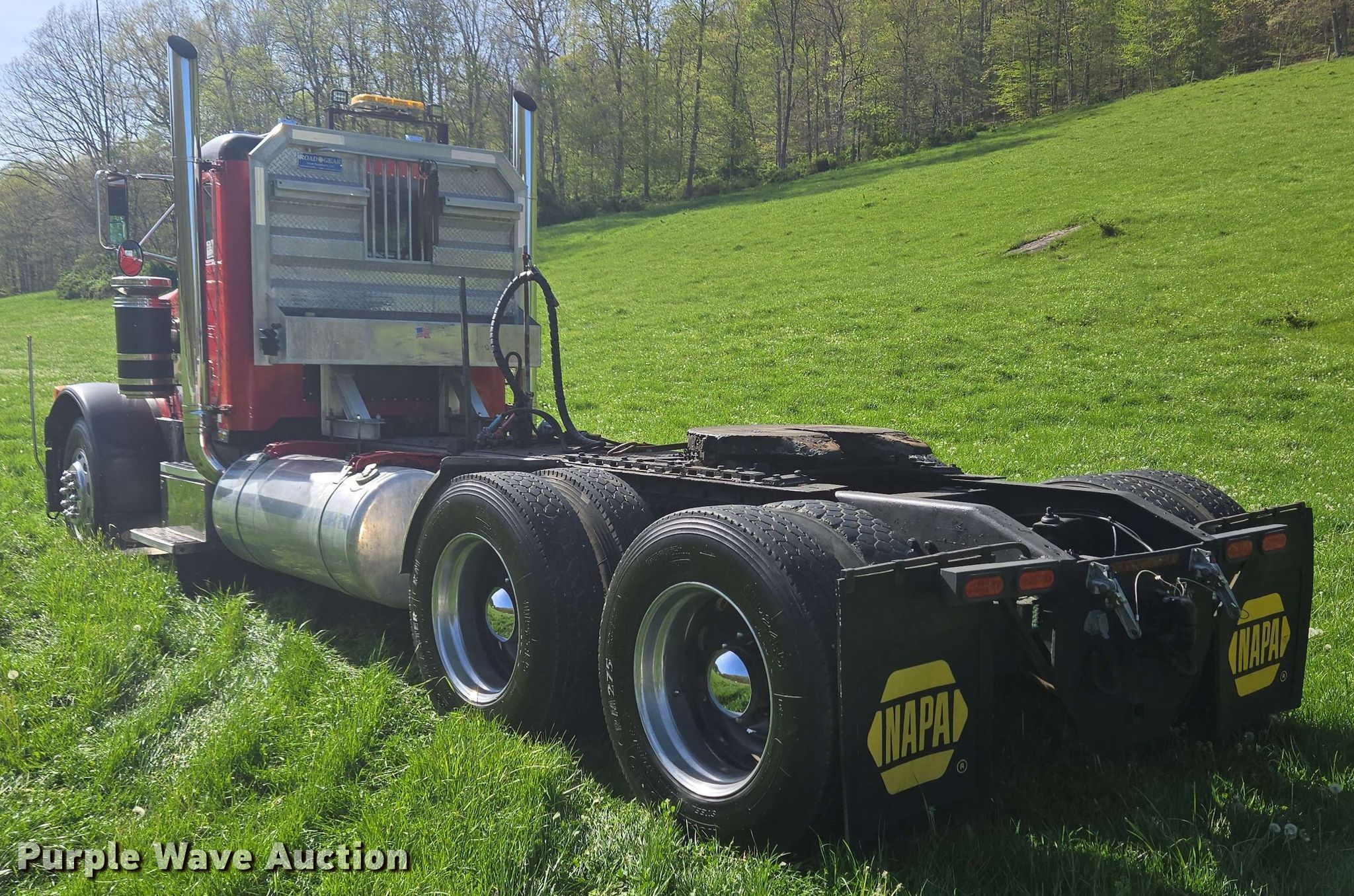 1990 Peterbilt semi truck. VIN: 1XP5DB9X8LN293982. Engine Caterpillar, Displacement: 14.6L, Cylinders: 6, Fuel type: Diesel. Transmission Eaton Fuller, Manual, Speed: 15. Chassis Axles: Tandem, Suspension: Air, Brakes: Air, GVWR: 50,000 lbs FAWR: 12,000 lbs, IAWR: 19,000 lbs, RAWR: 19,000 lbs. Interior AC, Heat, Power windows. Features Deck plate: Aluminum, Fifth wheel type: Sliding, Fuel tank: Dual. Tires Size: 11R24.5. Ohio title. Title has a lien that will be released following the close of the auction. Title distribution may be delayed up to 30 days from verification of funds. Shull Farms. Sugar Grove, OH 43155