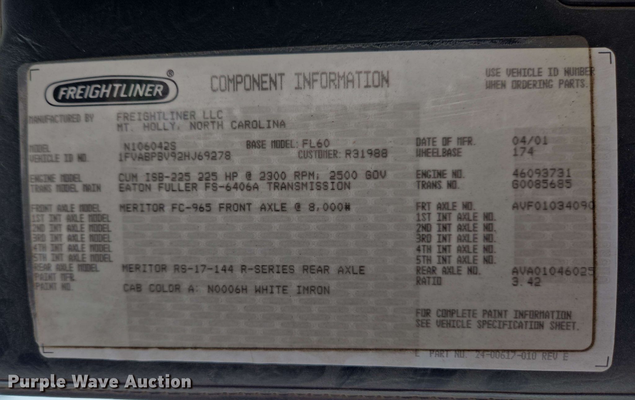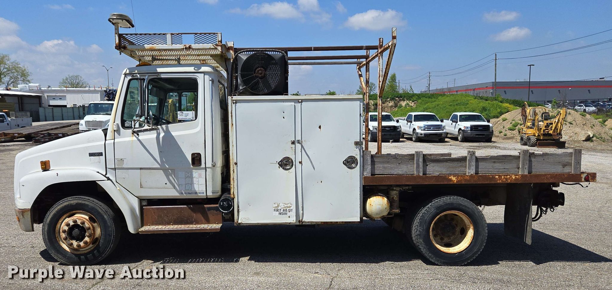 Purple Wave is selling a used Flat Bed Truck in Indiana. This item is a 2002 Freightliner FL60 flatbed truck with the following: Miles: 253,175 on odometer, Hours: 16,430 on meter, VIN: 1FVABPBV92HJ69278