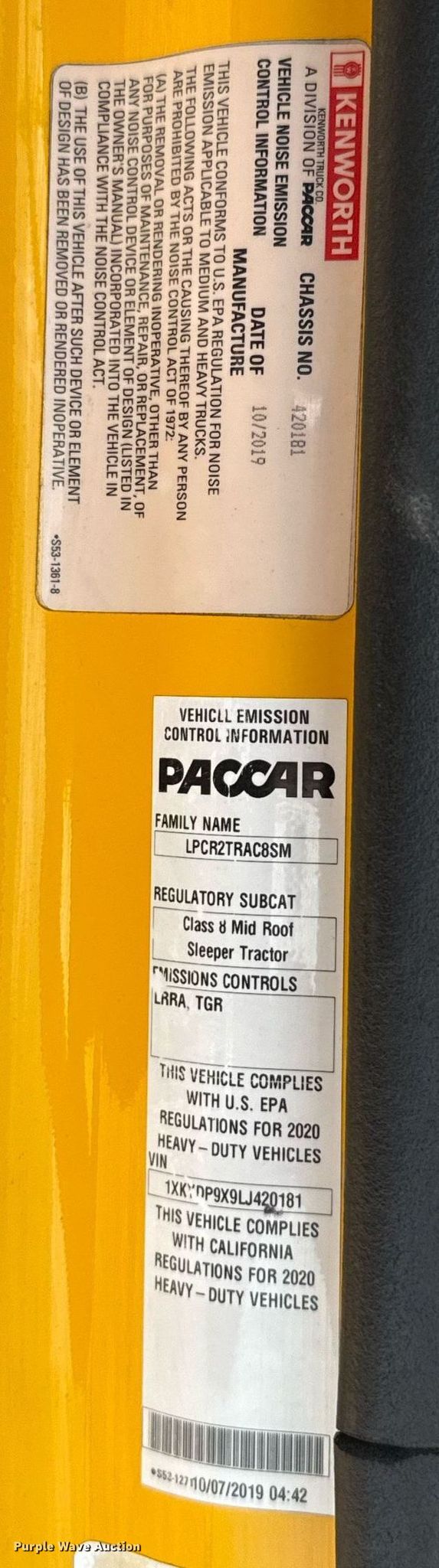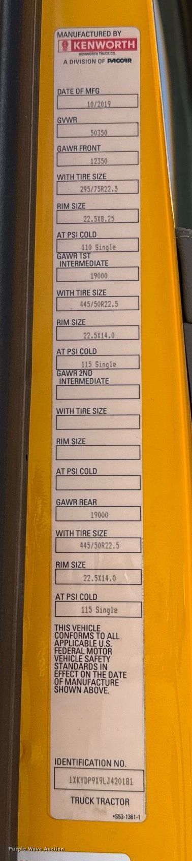 Purple Wave is selling a used Truck Tractor in Oklahoma. This item is a 2020 Kenworth T680 semi truck with the following: Miles: 474,557 on odometer, Engine hours: 12,846 on meter, VIN: 1XKYDP9X9LJ420181, Unit #: 2743