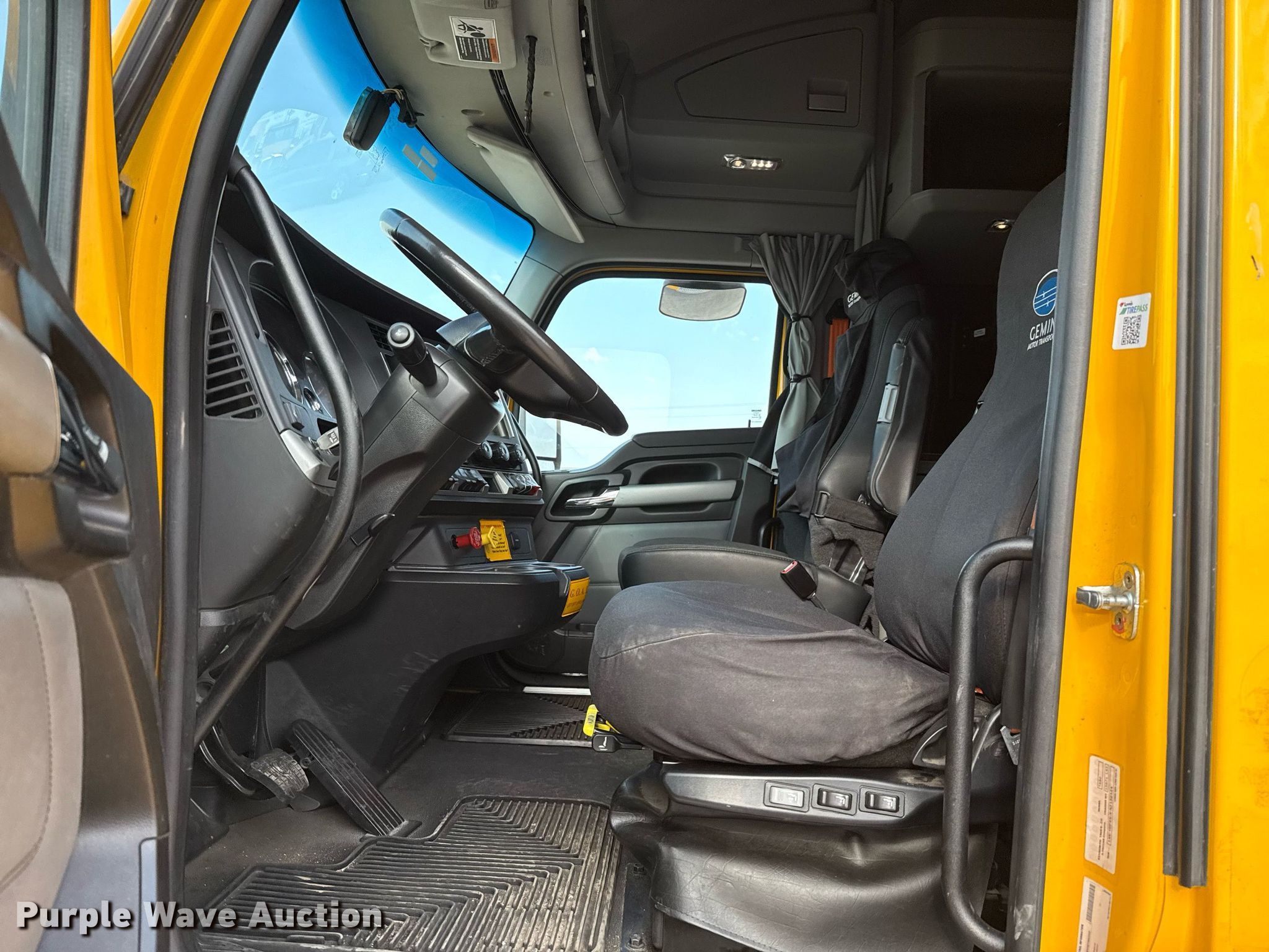 2022 Kenworth T680 semi truck. Miles: 362,790 on odometer, Engine hours: 5,482 on meter, VIN: 1XKYDP9XXNJ130454, Unit #: 22565. Engine Paccar MX-13, Serial: Y258486, Displacement: 12.9L, Cylinders: 6, Fuel type: Diesel, HP: 455, kW: 340, Engine brake. Transmission Automated manual. Chassis Axles: Tandem, Differential lock: Inter-axle, Suspension: Air Dump valves, Brakes: Air, GVWR: 50,500 lbs FAWR: 12,500 lbs, IAWR: 19,000 lbs, RAWR: 19,000 lbs. Interior AC, Heat, Heated mirrors, Power windows, Power locks, Cruise control, Air ride cab, Sleeper Sleeper length: 63", Beds: Single, Refrigerator, Microwave, Rear climate control. Features Deck plate: Aluminum, Fifth wheel type: Fixed, Fuel tank: Dual. Tires Front: 295/75R22.5, Rear: 445/50R22.5. Notes Dash warning indicator: Check engine, Windshield chipped or cracked, Dead battery. Oklahoma title. Title distribution may be delayed up to 30 days from verification of funds. Gemini Motor Transport. Oklahoma City, OK 73127