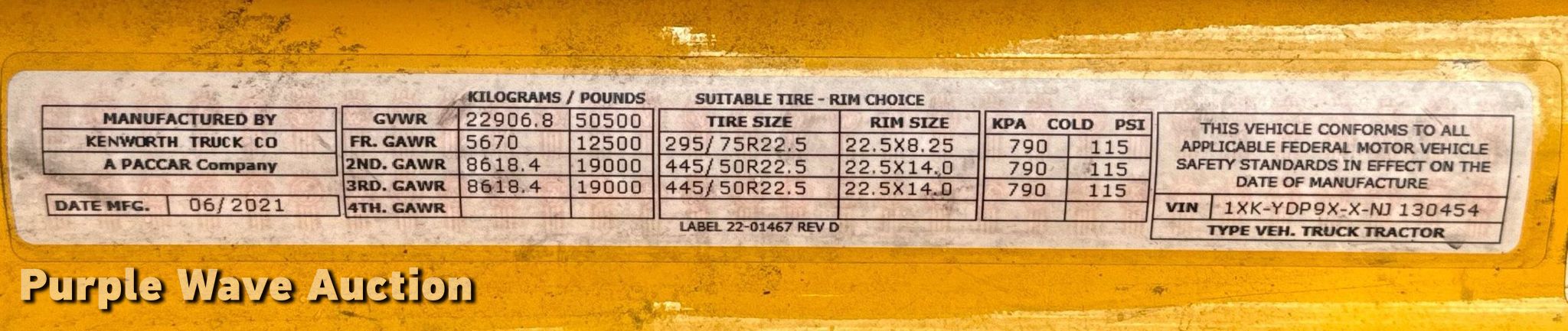 - VIN: 1XKYDP9XXNJ130454