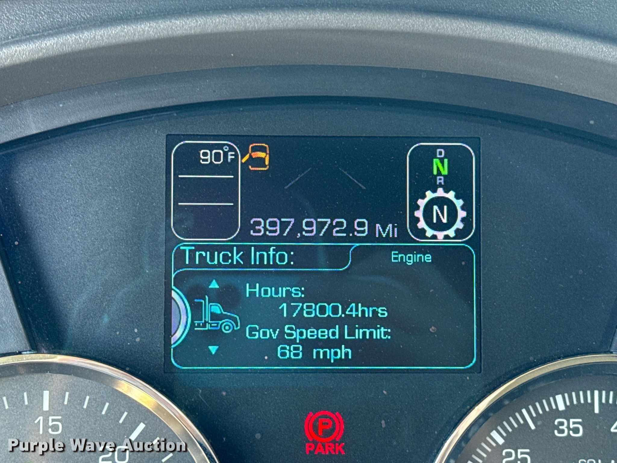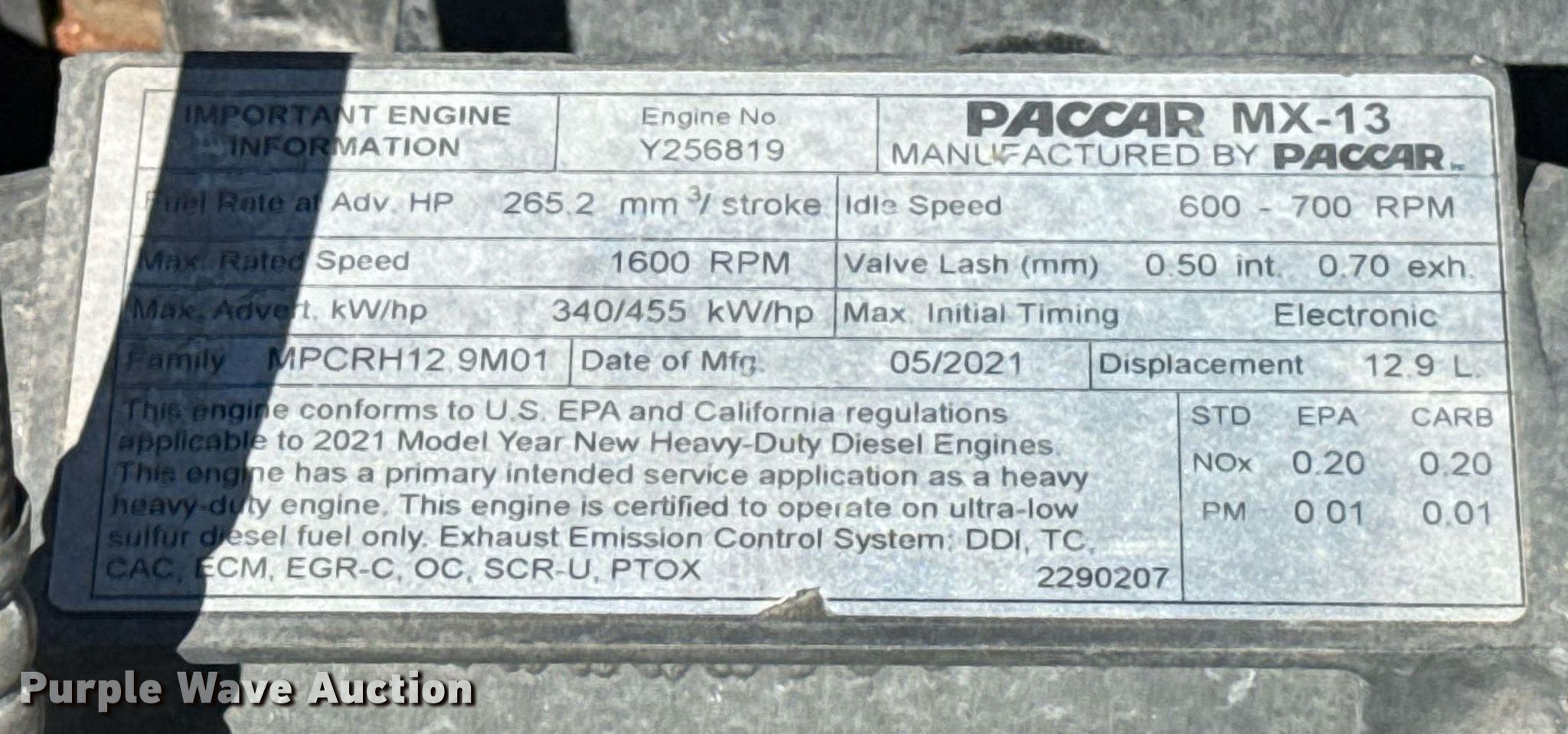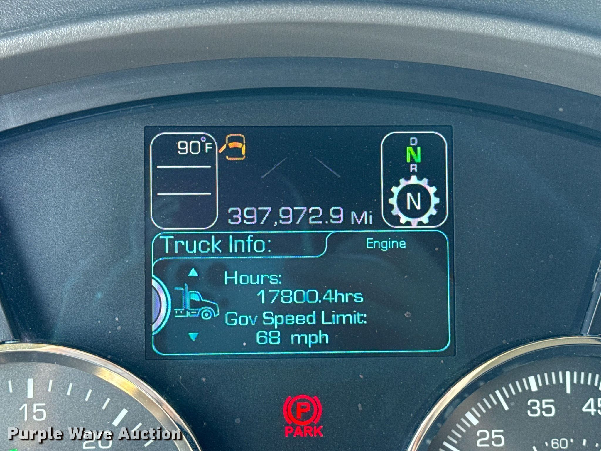 2022 Kenworth T680 semi truck. Miles: 397,973 on odometer, Engine hours: 17,800 hours, VIN: 1XKYDP9X9NJ130462, Unit #: 22573. Engine Paccar MX13, Serial: Y256819, Displacement: 12.9L, Cylinders: 6, Fuel type: Diesel, HP: 455, kW: 340, Engine brake. Transmission Automated manual. Chassis Axles: Tandem, Differential lock: Inter-axle, Suspension: Air Dump valves, Brakes: Air, PTO, GVWR: 50,500 lbs FAWR: 12,500 lbs, IAWR: 19,000 lbs, RAWR: 19,000 lbs. Interior AC, Heat, Heated mirrors, Power windows, Power locks, Cruise control, Air ride cab, Sleeper Sleeper length: 63", Beds: Single, Refrigerator, Microwave, Rear climate control. Features Deck plate: Aluminum, Fifth wheel type: Fixed, Fuel tank: Dual. Tires Front: 295/75R22.5, Rear: 445/50R 22.5. Notes Dash warning indicator: Check engine. Oklahoma title. Title distribution may be delayed up to 30 days from verification of funds. Gemini Motor Transport. Oklahoma City, OK 73127