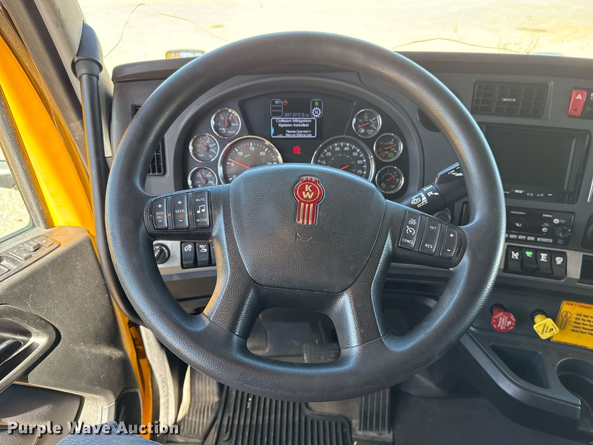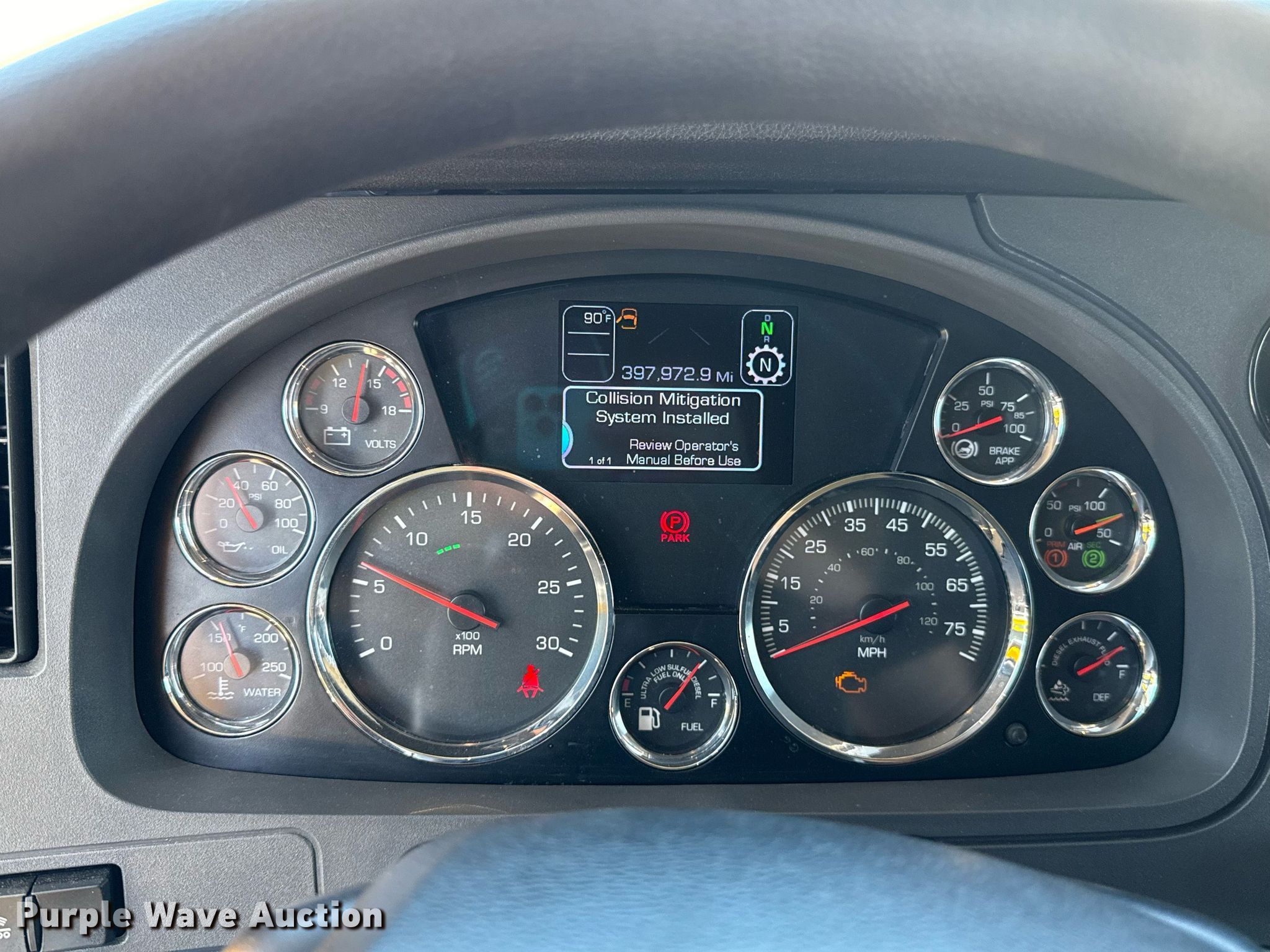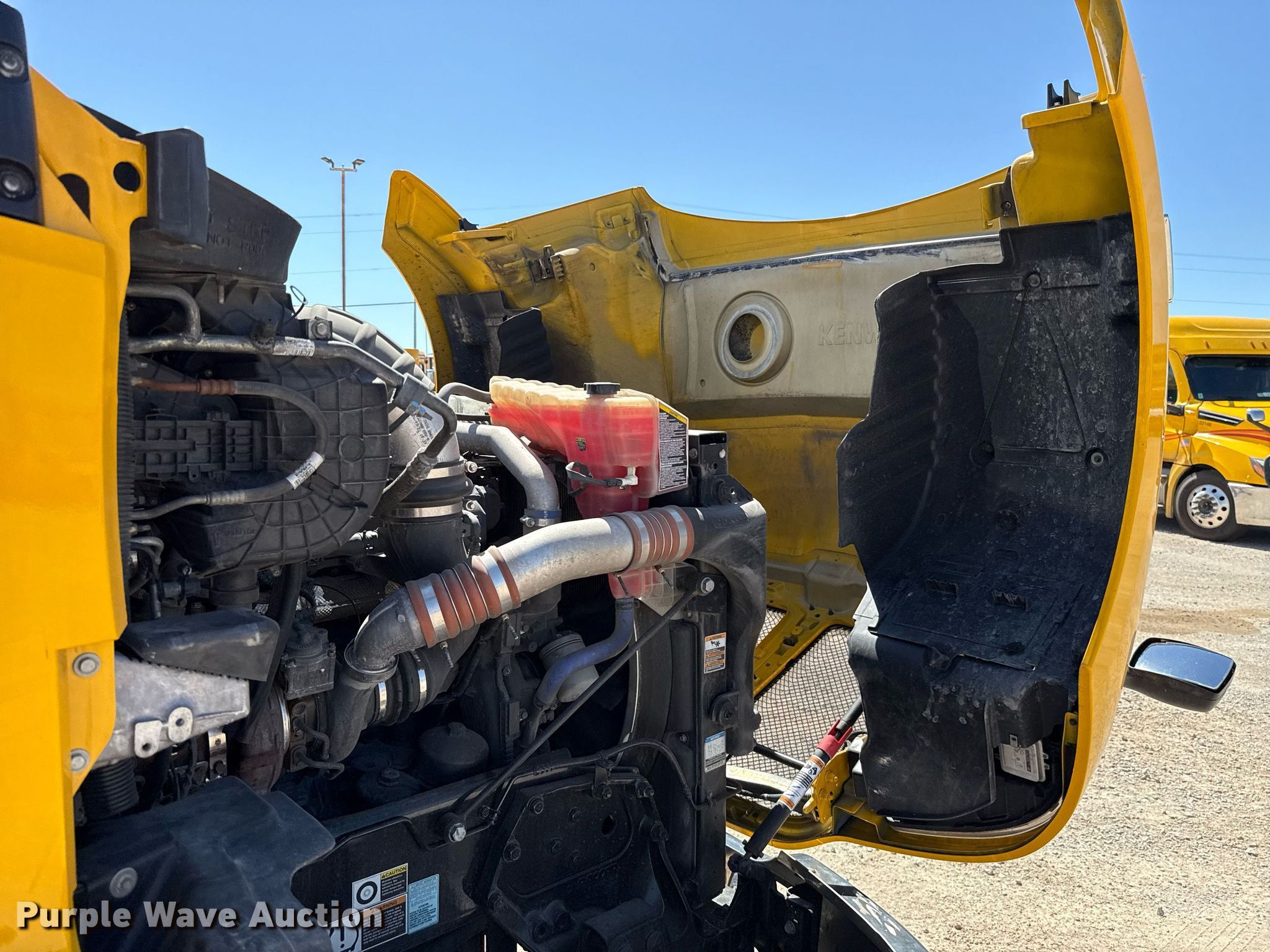2022 Kenworth T680 semi truck. Miles: 397,973 on odometer, Engine hours: 17,800 hours, VIN: 1XKYDP9X9NJ130462, Unit #: 22573. Engine Paccar MX13, Serial: Y256819, Displacement: 12.9L, Cylinders: 6, Fuel type: Diesel, HP: 455, kW: 340, Engine brake. Transmission Automated manual. Chassis Axles: Tandem, Differential lock: Inter-axle, Suspension: Air Dump valves, Brakes: Air, PTO, GVWR: 50,500 lbs FAWR: 12,500 lbs, IAWR: 19,000 lbs, RAWR: 19,000 lbs. Interior AC, Heat, Heated mirrors, Power windows, Power locks, Cruise control, Air ride cab, Sleeper Sleeper length: 63", Beds: Single, Refrigerator, Microwave, Rear climate control. Features Deck plate: Aluminum, Fifth wheel type: Fixed, Fuel tank: Dual. Tires Front: 295/75R22.5, Rear: 445/50R 22.5. Notes Dash warning indicator: Check engine. Oklahoma title. Title distribution may be delayed up to 30 days from verification of funds. Gemini Motor Transport. Oklahoma City, OK 73127