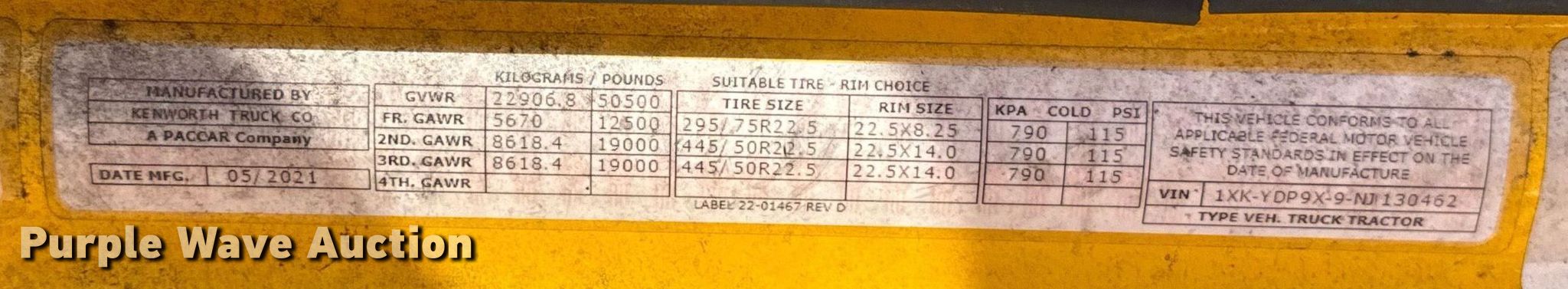 Purple Wave is selling a used Truck Tractor in Oklahoma. This item is a 2022 Kenworth T680 semi truck with the following: Miles: 397,973 on odometer, Engine hours: 17,800 hours, VIN: 1XKYDP9X9NJ130462, Unit #: 22573