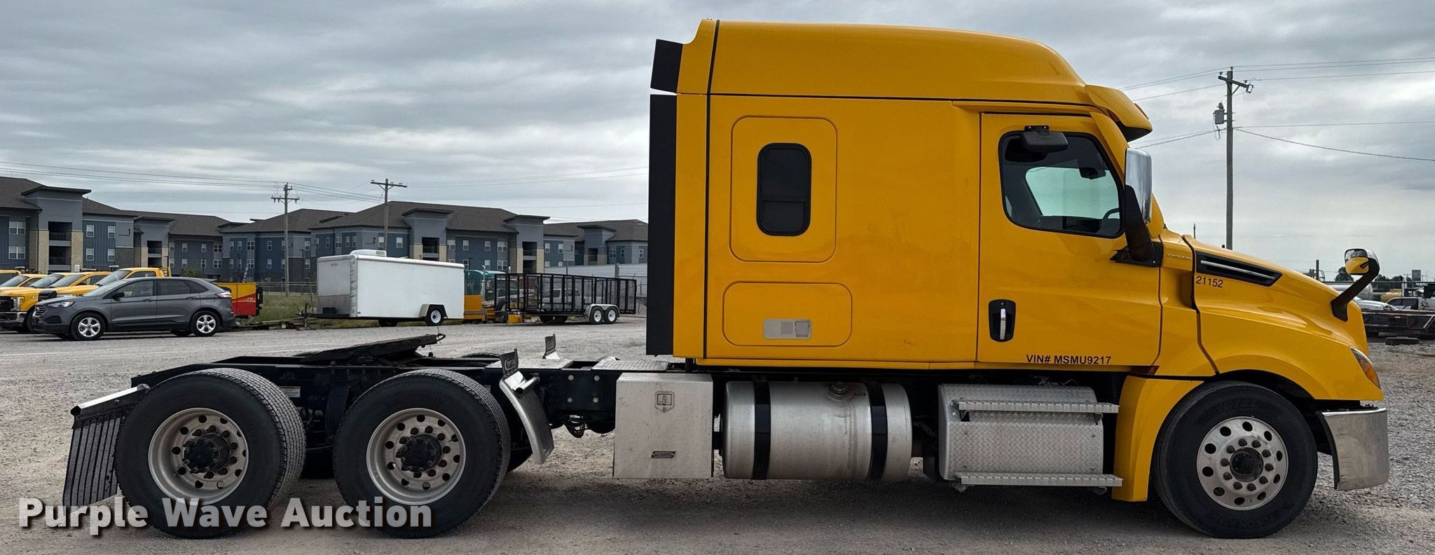Purple Wave is selling a used Truck Tractor in Oklahoma. This item is a 2021 Freightliner Cascadia 126 semi truck with the following: Miles: 503,772 on odometer, Engine hours: 13,012 on meter, VIN: 3AKJHHDV6MSMU9217, Unit #: 21152