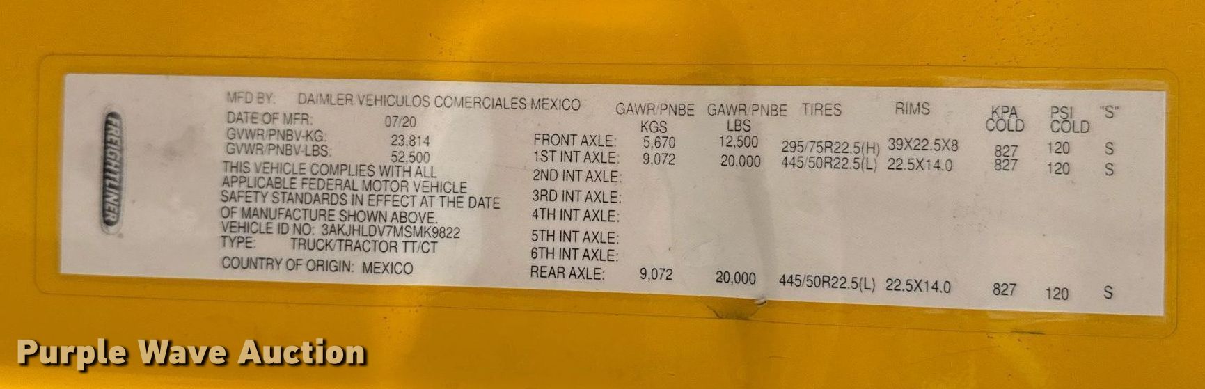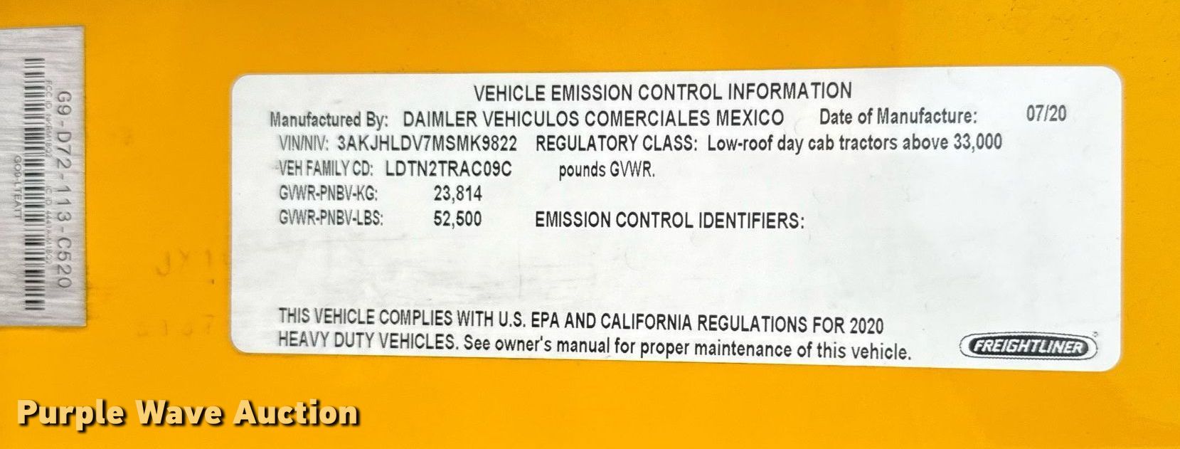 Purple Wave is selling a used Truck Tractor in Oklahoma. This item is a 2021 Freightliner Cascadia 126 semi truck with the following: Miles: 537,936 on odometer, Engine hours: 13,681 on meter, VIN: 3AKJHLDV7MSMK9822, Unit #: 21083