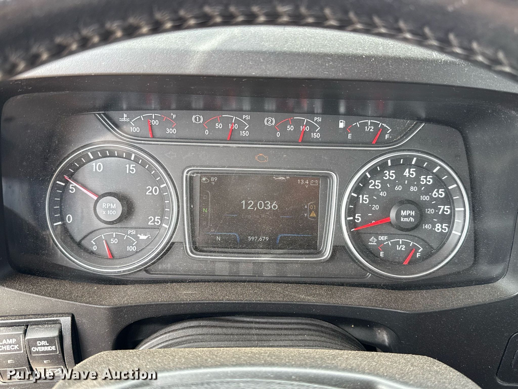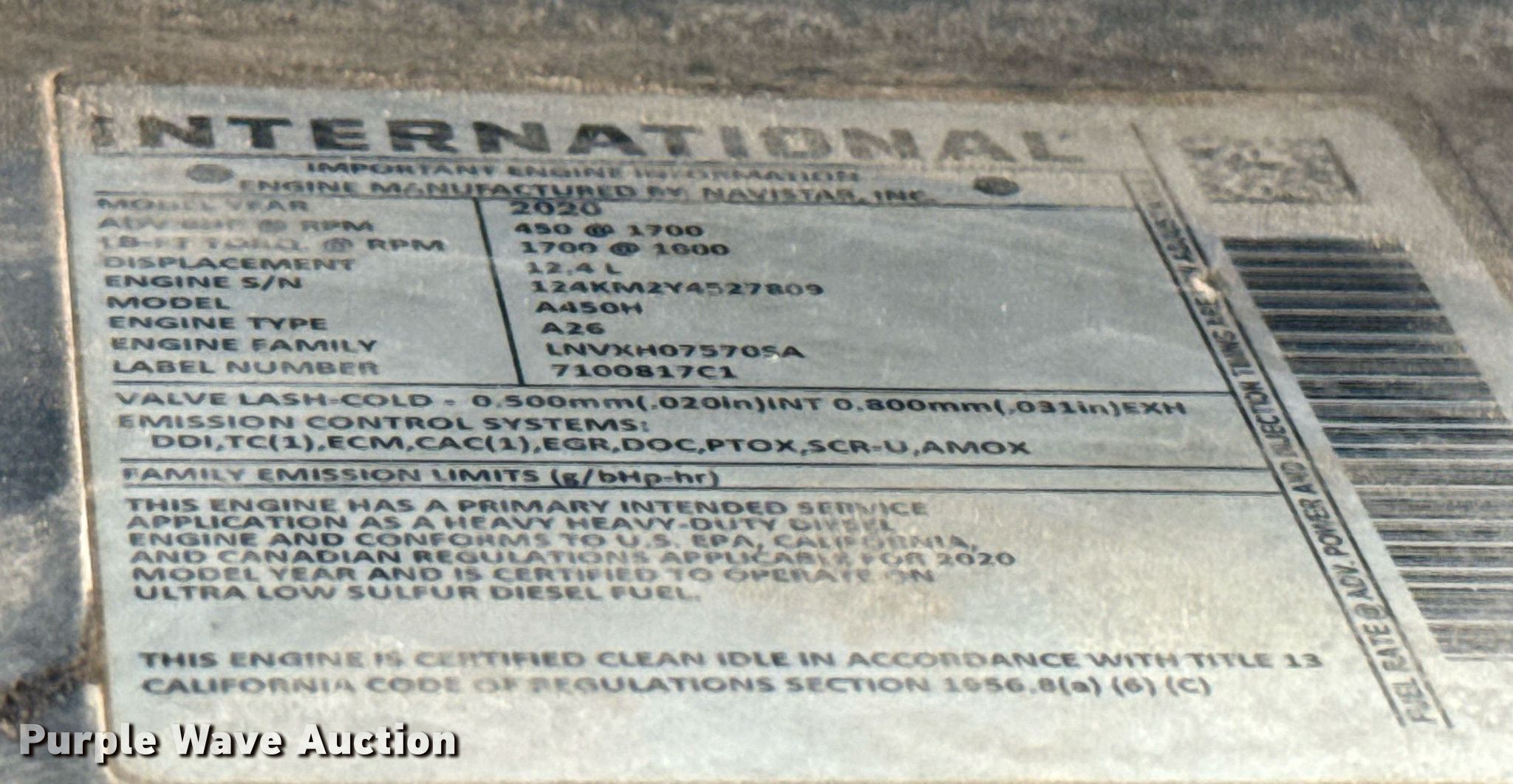 2021 International LT625 semi truck. Miles: 597,679 on odometer, Engine hours: 12,036 on meter, VIN: 3HSDZTZR9MN231476, Unit #: 21902. Engine International A450GH A26, Serial: 124KM2Y4527809, Displacement: 12.4L, Cylinders: 6, Fuel type: Diesel, Engine brake. Transmission Automated manual. Chassis Axles: Tandem, Differential lock: Inter-axle, Suspension: Air Dump valves, Brakes: Air, GVWR: 52,350 lbs FAWR: 12,350 lbs, IAWR: 20,000 lbs, RAWR: 20,000 lbs. Interior AC, Heat, Heated mirrors, Power windows, Power locks, Cruise control, Air ride cab. Features Deck plate: Aluminum, Fifth wheel type: Fixed, Fuel tank: Single. Tires Front: 295/75R22.5, Rear: 445/50R22.5. Notes Windshield chipped or cracked, Air leak, Hood issues, cracked, Engine issues, misfire. Oklahoma title. Title distribution may be delayed up to 30 days from verification of funds. Gemini Motor Transport. Oklahoma City, OK 73127