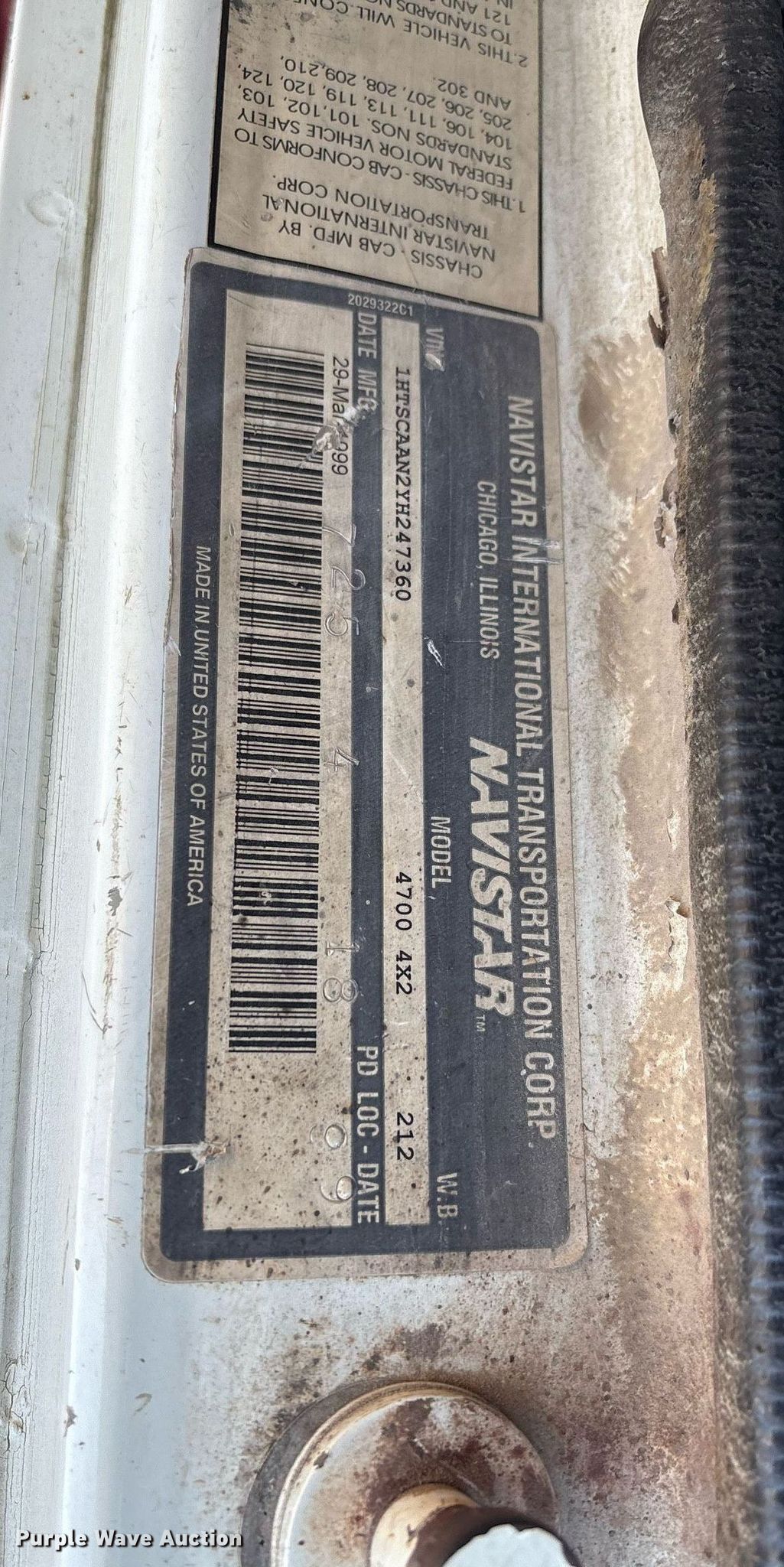 Purple Wave is selling a used Crane Truck in Oklahoma. This item is a 2000 International 4700 crane truck with the following: Miles: 217,720 on odometer, VIN: 1HTSCAAN2YH247360