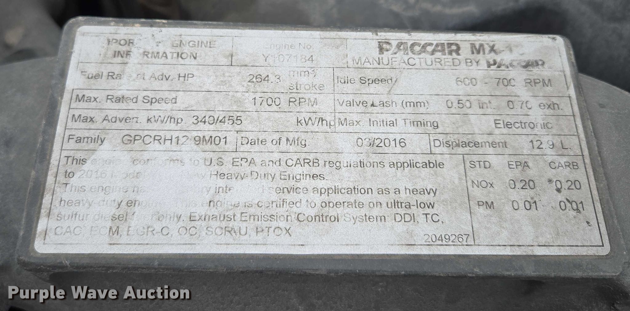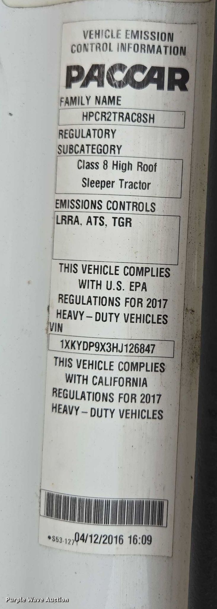 2017 Kenworth T680 semi truck. Miles: 516,278 on odometer, VIN: 1XKYDP9X3HJ126847. Engine Paccar MX-13, Displacement: 12.9L, Cylinders: 6, Fuel type: Diesel, Engine brake. Transmission Eaton Fuller, Manual, Speed: 10. Chassis Axles: Tandem, Differential lock: Inter-axle, Suspension: Air, Brakes: Air, Truck chassis: 150", GVWR: 52,350 lbs. Interior AC, Heat, Power windows, Power locks, Cruise control, Air ride cab, Sleeper Sleeper length: 60", Beds: Double bunk, TV, Refrigerator, Rear climate control. Features Deck plate: Aluminum, Fifth wheel type: Air operated, Sliding, Fuel tank: Dual. Tires Size: 295/75R22.5. Missouri title. Title distribution may be delayed up to 14 days from verification of funds. Carlyle Van Lines. Warrensburg, MO 64093