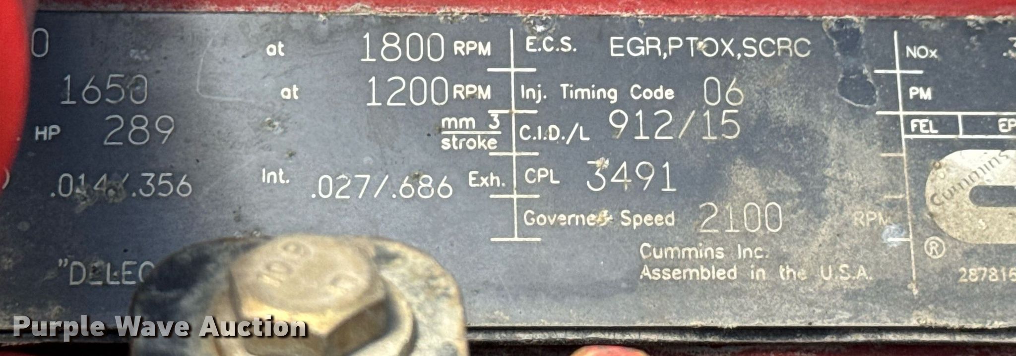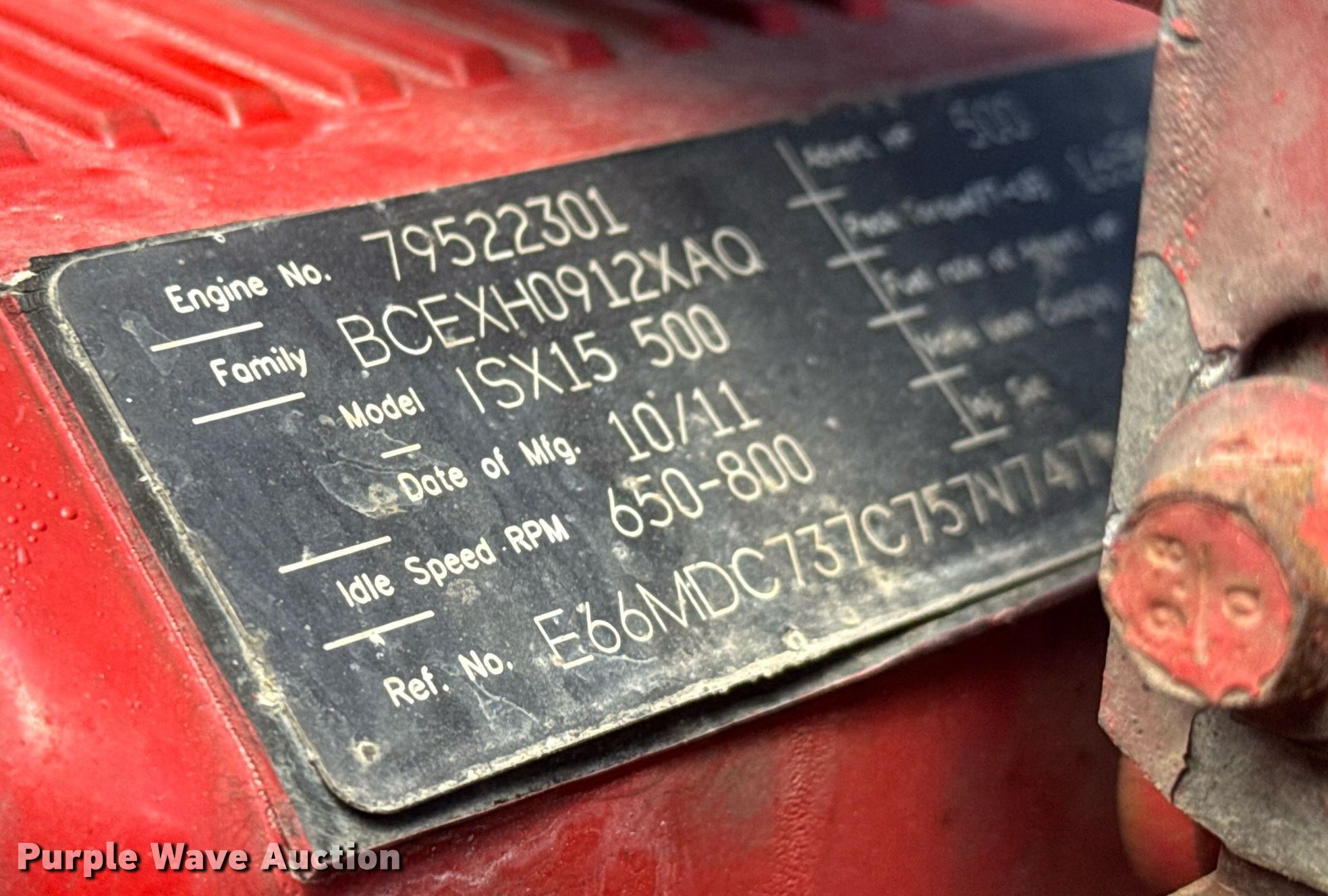 2012 Kenworth T800 semi truck. Miles: 422,128 on odometer, Hours: 15,240 on meter, VIN: 1XKDD40X7CJ330568. Engine Cummins ISX, Displacement: 15.0L, Cylinders: 6, Fuel type: Diesel, Engine brake. Transmission Manual, Speed: 18. Chassis Axles: Tandem, Differential lock: Full, Suspension: Air Dump valves, Brakes: Air, PTO, Wet kit, GVWR: 60,600 lbs. Interior AC, Heat, Heated mirrors, Power locks, Cruise control, Air ride cab. Features Deck plate: Aluminum, Fifth wheel type: Air operated, Sliding, Fuel tank: Single. Tires Front: 315/80R22.5, Rear: 11R22.5. Notes Windshield chipped or cracked. Oklahoma title. Seller is an Oklahoma licensed motor vehicle dealer. Title will be assigned and distributed by the dealer. Please contact the seller for distribution questions. Title distribution may be delayed up to 30 days from verification of funds. Collinsville, OK 74021