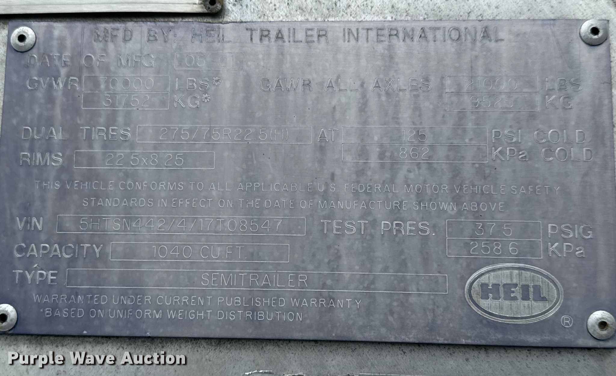 Purple Wave is selling a used Tank Trailer in Oklahoma. This item is a 2001 Heil pneumatic dry bulk trailer with the following: VIN: 5HTSN442417T08547