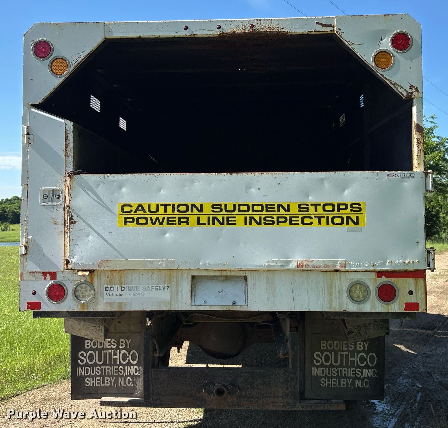 2009 GMC C6500 chipper truck. Miles: 76,040 on odometer, VIN: 1GDJ6C1B09F408248. Engine Isuzu LF8, Displacement: 7.8L, Cylinders: 6, Fuel type: Diesel. Transmission Automatic. Chassis Axles: Single, Suspension: Spring, Brakes: Hydraulic, PTO, GVWR: 19,000 lbs. Interior AC, Heat, Cruise control. Features Dump bed South, 11' L x 8' W, Side height: 70", Bed type: Steel, Ram: Single. Tires Size: 11R22.5. Notes Climate control issues, will not blow, Storage door issues, does not open, Rear passenger door handle missing, Dash warning indicator: ABS, Windshield chipped or cracked. Texas title. Title distribution may be delayed up to 14 days from verification of funds. Ennis, TX 75119